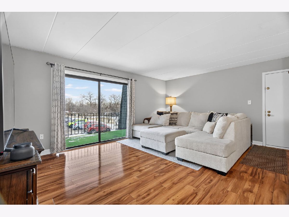 Welcome to this bright and inviting second-floor condo in a peaceful Orland Park setting. This well cared for 2-bedroom, 1-bath unit features tasteful neutral finishes, hardwood flooring throughout, and an open layout that feels spacious and comfortable. The bedrooms are generously sized with ample closet space, and the oversized balcony offers serene views of mature trees along with additional storage. Enjoy abundant natural light, clean and wide common hallways, and convenient laundry and storage located on the main floor of the building. The location is hard to beat, just half a block from the park with open green space behind the building, excellent schools, plenty of parking, and close proximity to shopping, dining, and the Metra station. Assessments cover most utilities and the taxes are low, making this a strong value!