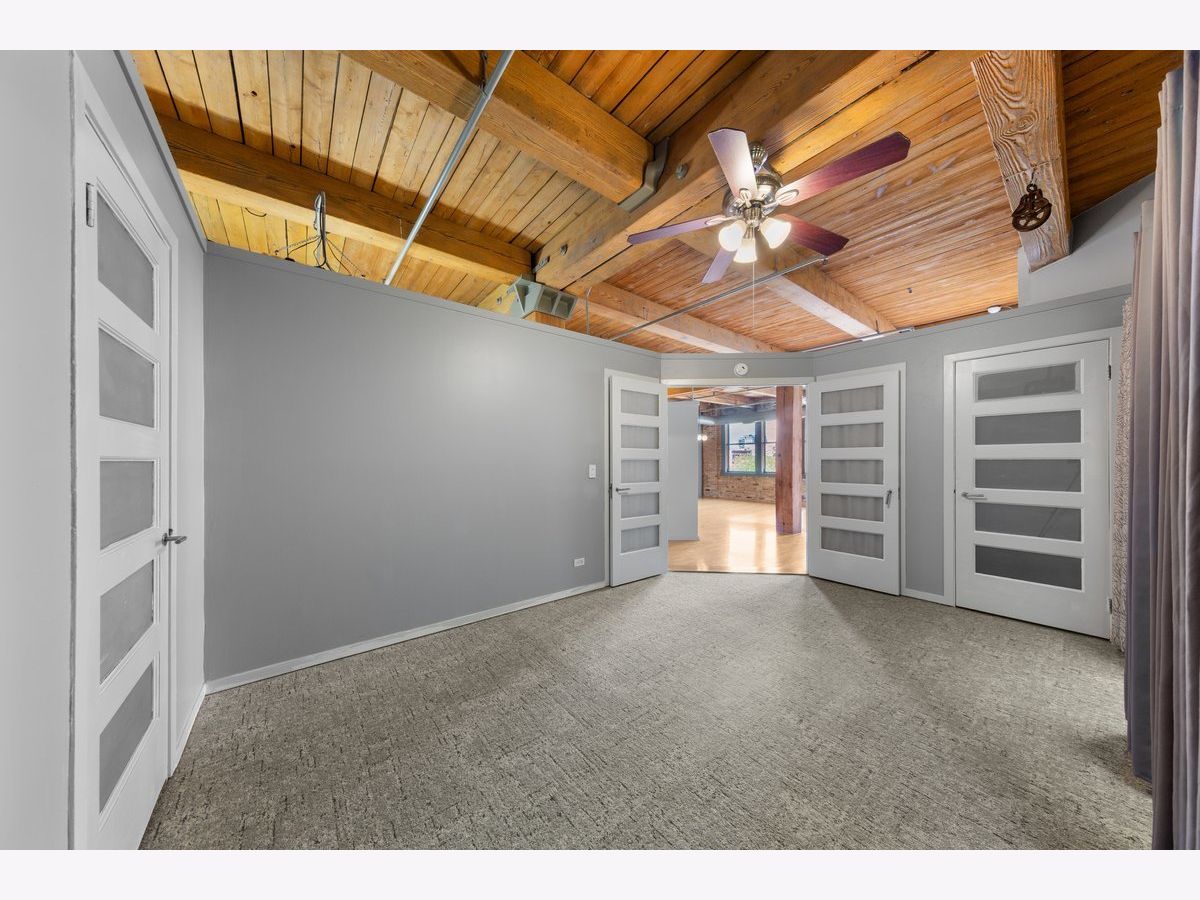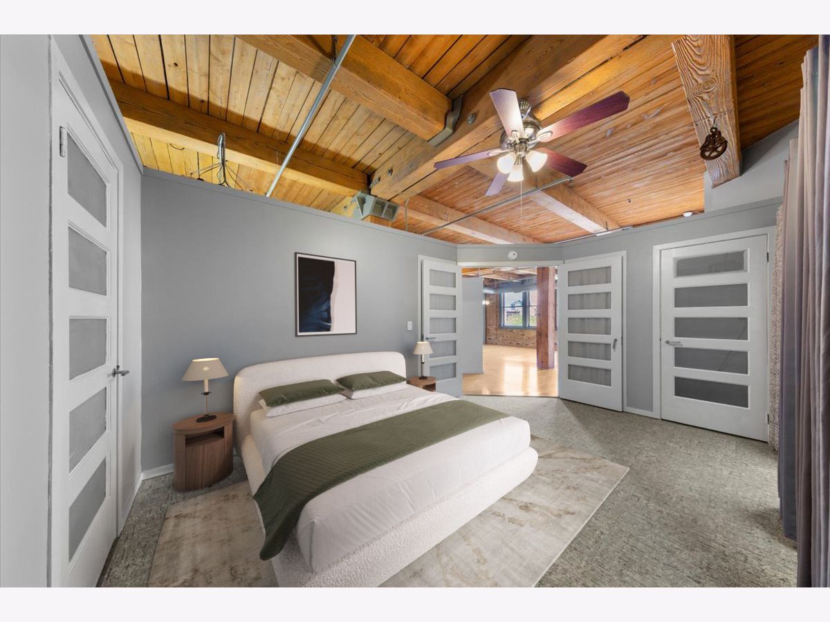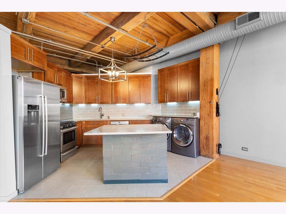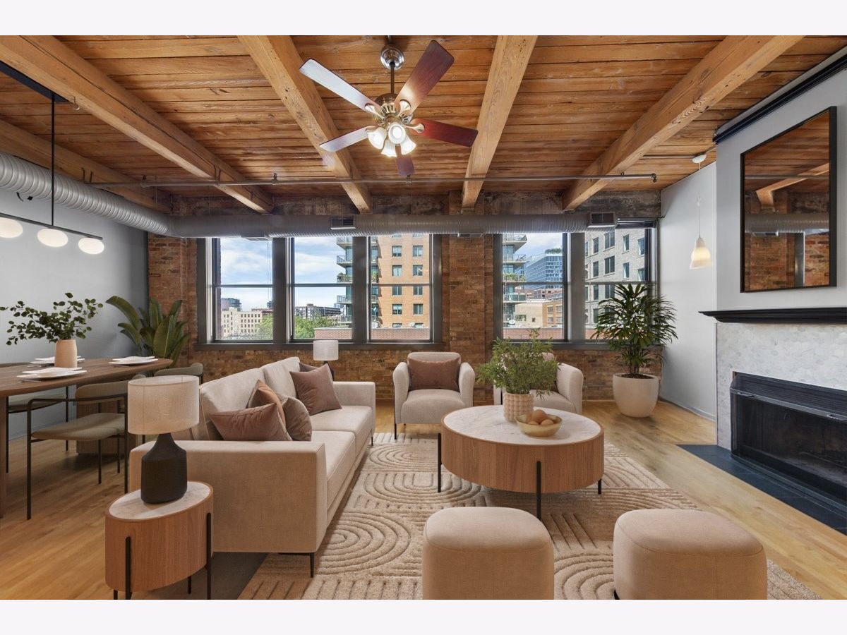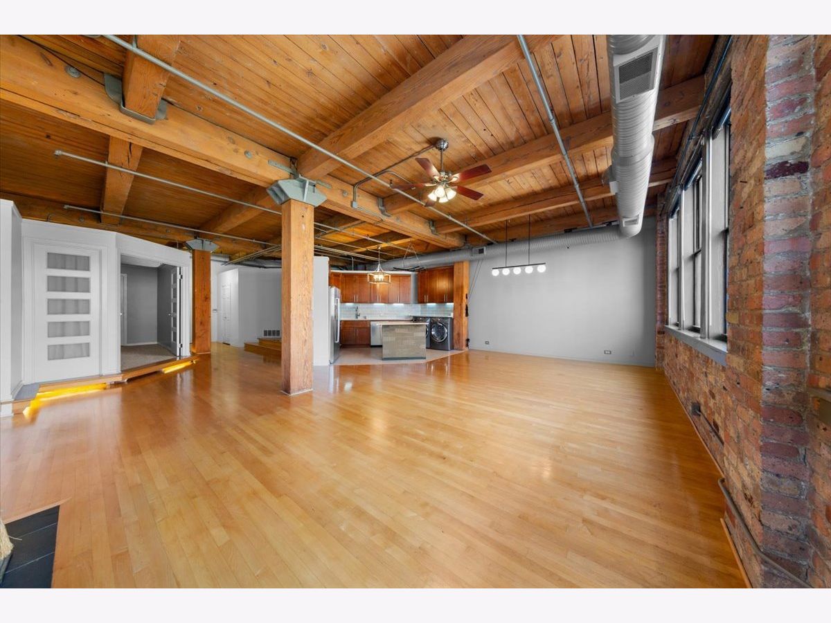 Welcome to this striking timber loft in the sought-after West Loop. Soaring 12-foot ceilings and five expansive north-facing windows fill the home with natural light, creating an airy, open feel throughout. The generous living area easily accommodates both a lounge space and a home office-perfect for today's lifestyle. A spacious dining area flows seamlessly from the living room and easily fits an 8-person table, making it ideal for gatherings and dinner parties. The chef's kitchen, fully renovated in 2018, is thoughtfully designed with sleek countertops, stainless steel appliances, modern lighting and a center island. The oversized primary suite offers room for a king-size bed with nightstands, newer carpet and features extensive closet space. The renovated bath includes a dual vanity and updated fixtures, adding a touch of luxury. Additional features include in-unit laundry, hardwood floors, ample storage throughout, pulley system for bikes and common area storage space. Set on the quieter side of the building, this home offers a peaceful escape while still being just steps from Mary Bartelme Park, UIC, top dining destinations, and convenient access to public transit and expressways-a true West Loop gem.