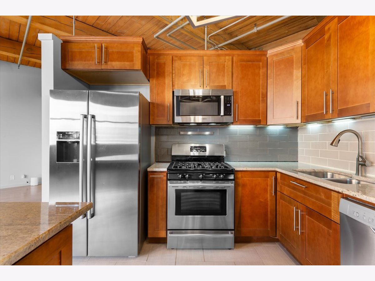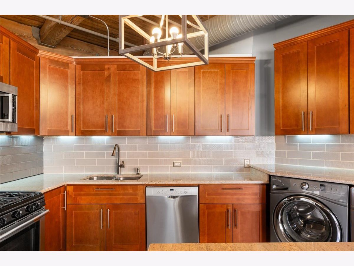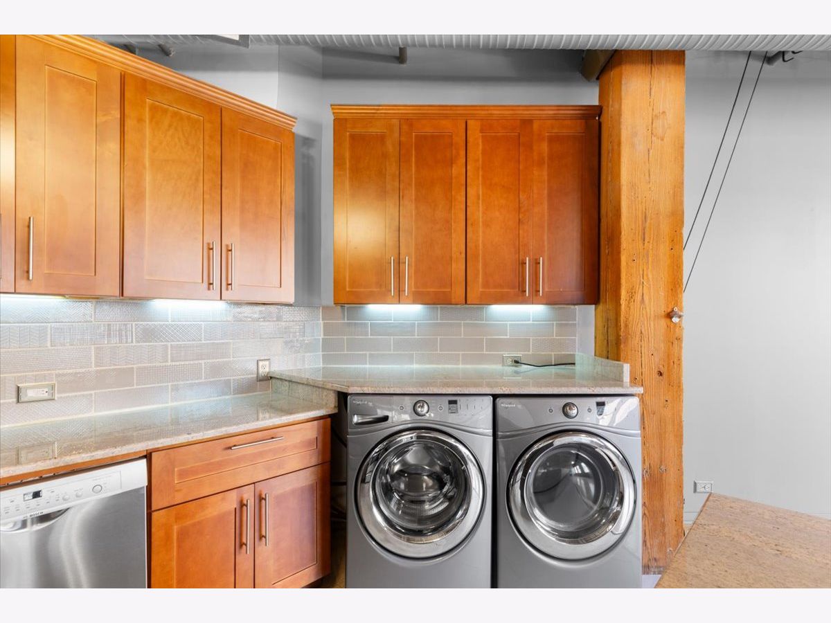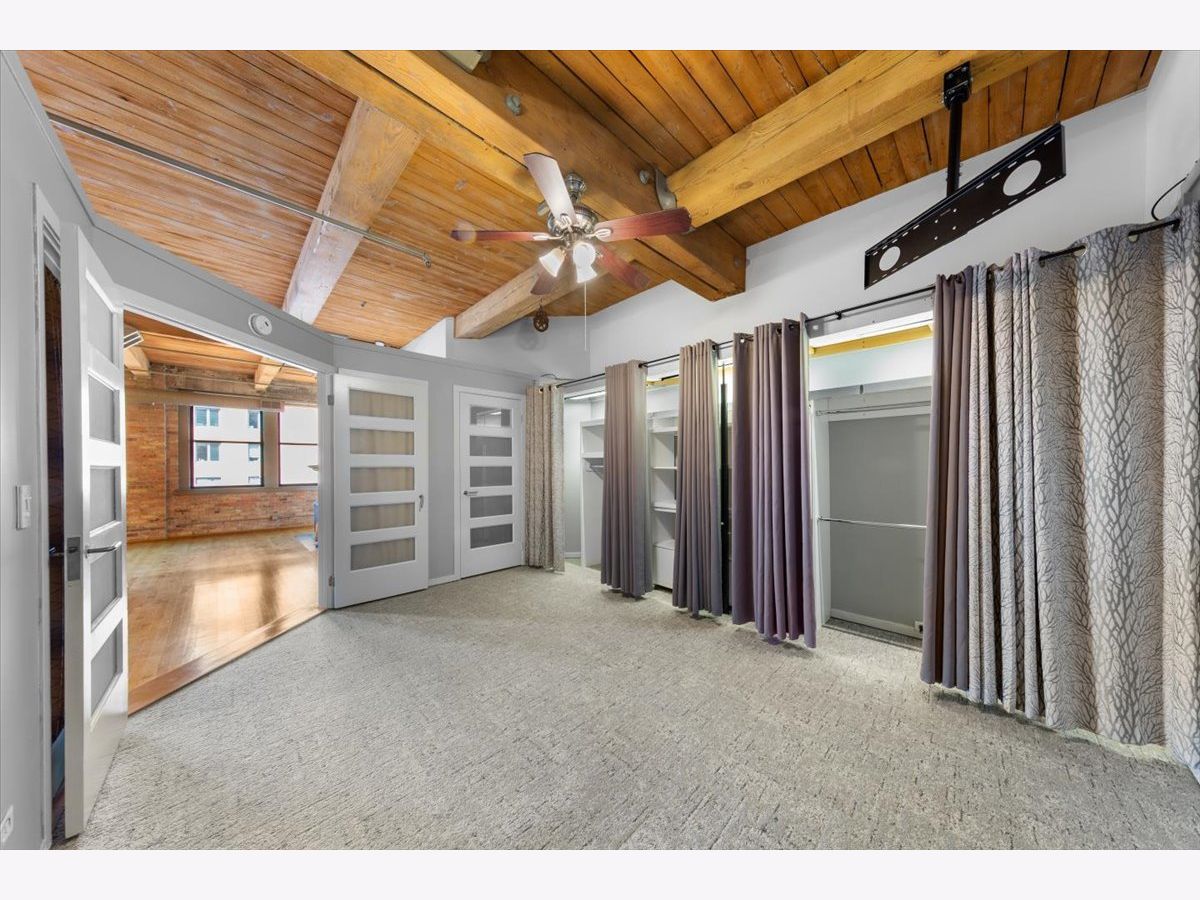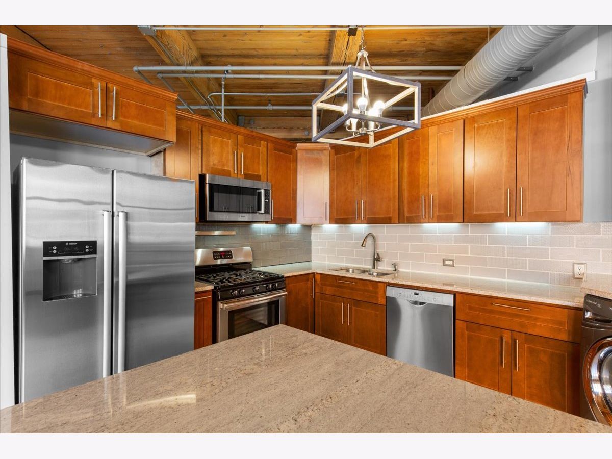 Welcome to this striking timber loft in the sought-after West Loop. Soaring 12-foot ceilings and five expansive north-facing windows fill the home with natural light, creating an airy, open feel throughout. The generous living area easily accommodates both a lounge space and a home office-perfect for today's lifestyle. A spacious dining area flows seamlessly from the living room and easily fits an 8-person table, making it ideal for gatherings and dinner parties. The chef's kitchen, fully renovated in 2018, is thoughtfully designed with sleek countertops, stainless steel appliances, modern lighting and a center island. The oversized primary suite offers room for a king-size bed with nightstands, newer carpet and features extensive closet space. The renovated bath includes a dual vanity and updated fixtures, adding a touch of luxury. Additional features include in-unit laundry, hardwood floors, ample storage throughout, pulley system for bikes and common area storage space. Set on the quieter side of the building, this home offers a peaceful escape while still being just steps from Mary Bartelme Park, UIC, top dining destinations, and convenient access to public transit and expressways-a true West Loop gem.