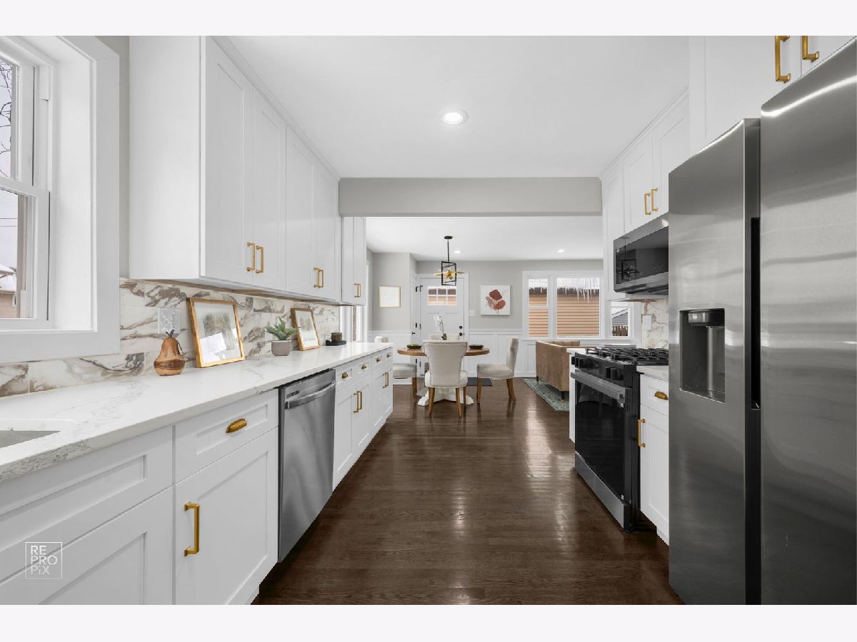 This stunningly renovated, all-brick ranch in desirable Morton Grove, IL, offers an incredible opportunity with a 4-bedroom, 2-bathroom layout. The main level showcases a beautifully updated kitchen featuring sleek white shaker cabinets, quartz countertops, and a full suite of stainless steel appliances. Elegant hardwood floors flow throughout the main living areas, complementing the bright, modern aesthetic. This property is ideally located near sought-after schools, parks, and convenient access to the Expressway.