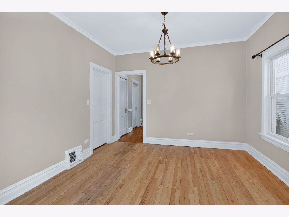 Welcome to 914 Lathrop, a charming Craftsman-style bungalow located in Forest Park. This home features 3 bedrooms, 1 bath, and a 2-car detached garage. The inviting living room offers high ceilings, beautiful hardwood flooring, and crown molding, creating a warm and welcoming space. The formal dining room easily accommodates a large table and is perfect for hosting holidays and gatherings. The kitchen is updated with espresso cabinets, granite countertops, and stainless steel appliances. All three bedrooms are conveniently located on the main floor and feature hardwood flooring (one currently being protected by carpet) and fresh paint. At the back of the home, there is an eat in area that could also be used as a family room with large windows overlooking the patio with firepit and fenced yard, providing great natural light and additional living space. Additional highlights include hardwood floors throughout, neutral paint, white trim and doors, and an unfinished basement offering plenty of storage or the opportunity to create the additional living space you desire. Major updates include a new furnace and A/C (2025), washer (2023), tankless water heater (2022), fridge & dishwasher (2025). Ideally located close to park district facilities & the pool, the public library, schools, and train.