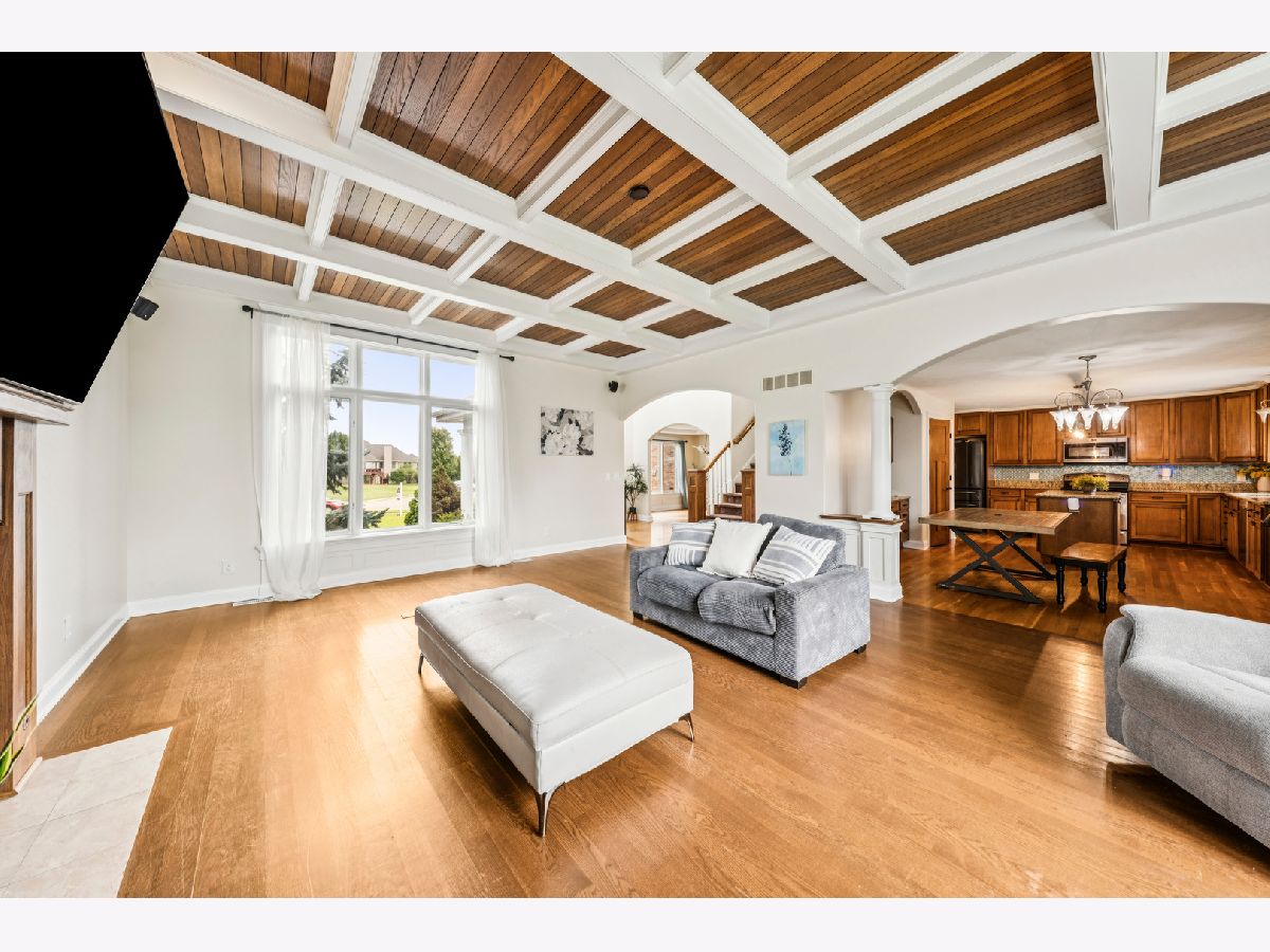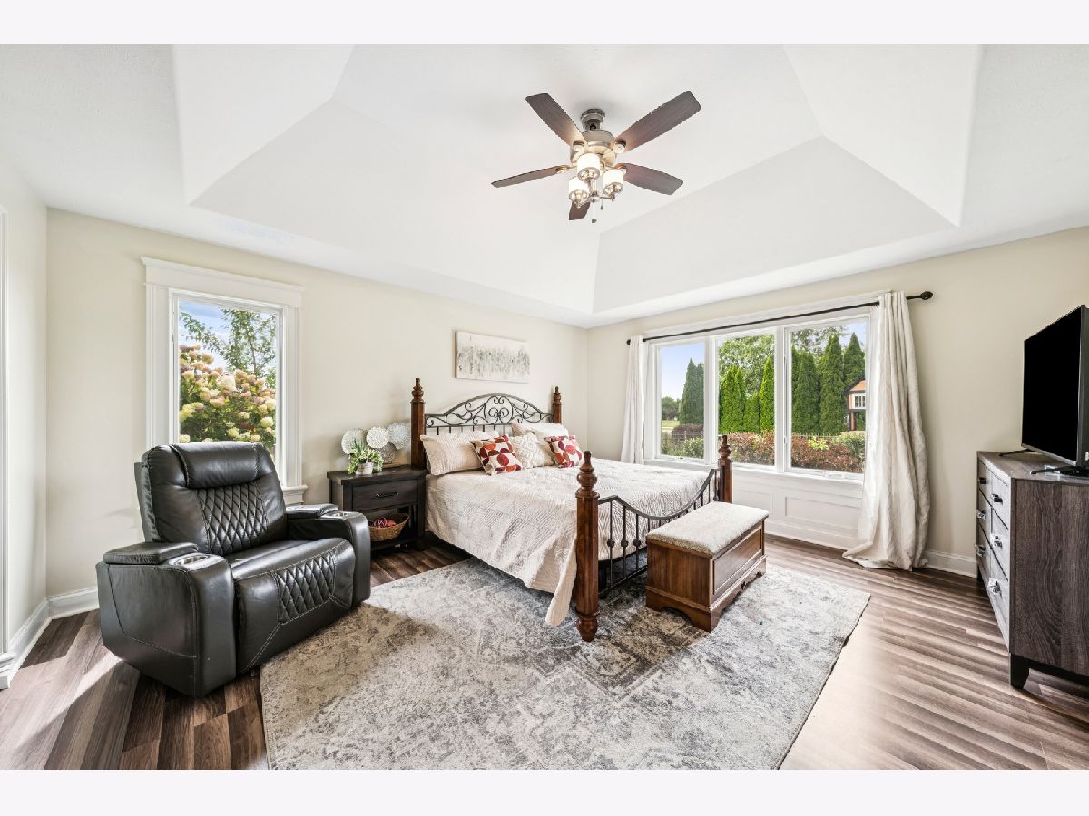 ** NEW PRICE! Incredible opportunity to own in Bella Reserves! ** This beautifully appointed custom home boasts a first-floor master suite and an expansive, flexible floor plan covering 3,884 square feet. Ideal for related or multi generational living, it offers bedrooms and bathrooms on every level! The home is adorned with arched entryways, solid wood recessed panel doors, wide trim and baseboards, 4' hardwood floors, and a leaded glass entry door. Come home to an expansive paver brick driveway complemented by a brick front with stone accents. Notable features include a gourmet kitchen with 42" maple cabinets, granite countertops, a center island, and a pantry cabinets. The spacious master suite offers a tray ceiling, a vaulted spa-like master bath with soaking tub and oversized marble shower with body sprays, and dual walk-in closets. Formal Dining Room with recessed ceiling and leaded glass lighting is perfect for holiday gatherings or everyday meals made special. The family room features an 11-ft coffered ceiling and a wood-burning fireplace, perfect for cozy evenings. The sprawling finished English basement with 5th bedroom and full bath features a private tandem room, rec room, extra room perfect for gym or office, and huge storage room. Enjoy the sunroom overlooking the backyard with French doors and porcelain tile floors. The large laundry room provides ample cabinetry, counter space, and a sink. Step outside and enjoy the back paver patio with a firepit and a wrought iron fenced-in .4 acre yard. The home is equipped with abundant closet and storage space, casement windows, ceiling fans throughout, upgraded hardware and light fixtures, and more. Completing this finely built home is a three-car garage, ensuring plenty of space for your vehicles and storage needs. Conveniently located just minutes to I90, nearby shopping and schools, this beautiful area offers several forest preserves and outdoor activities. A wonderful opportunity!