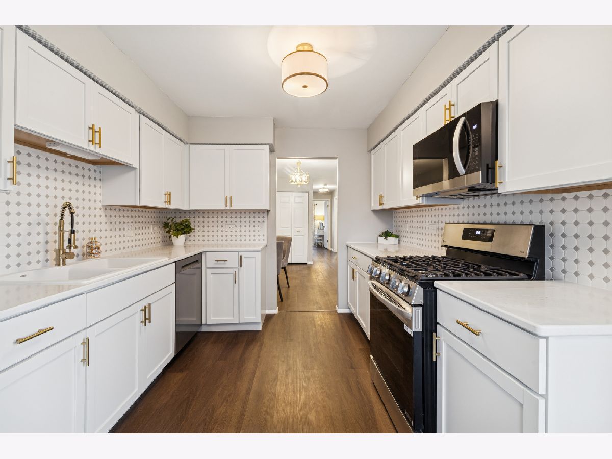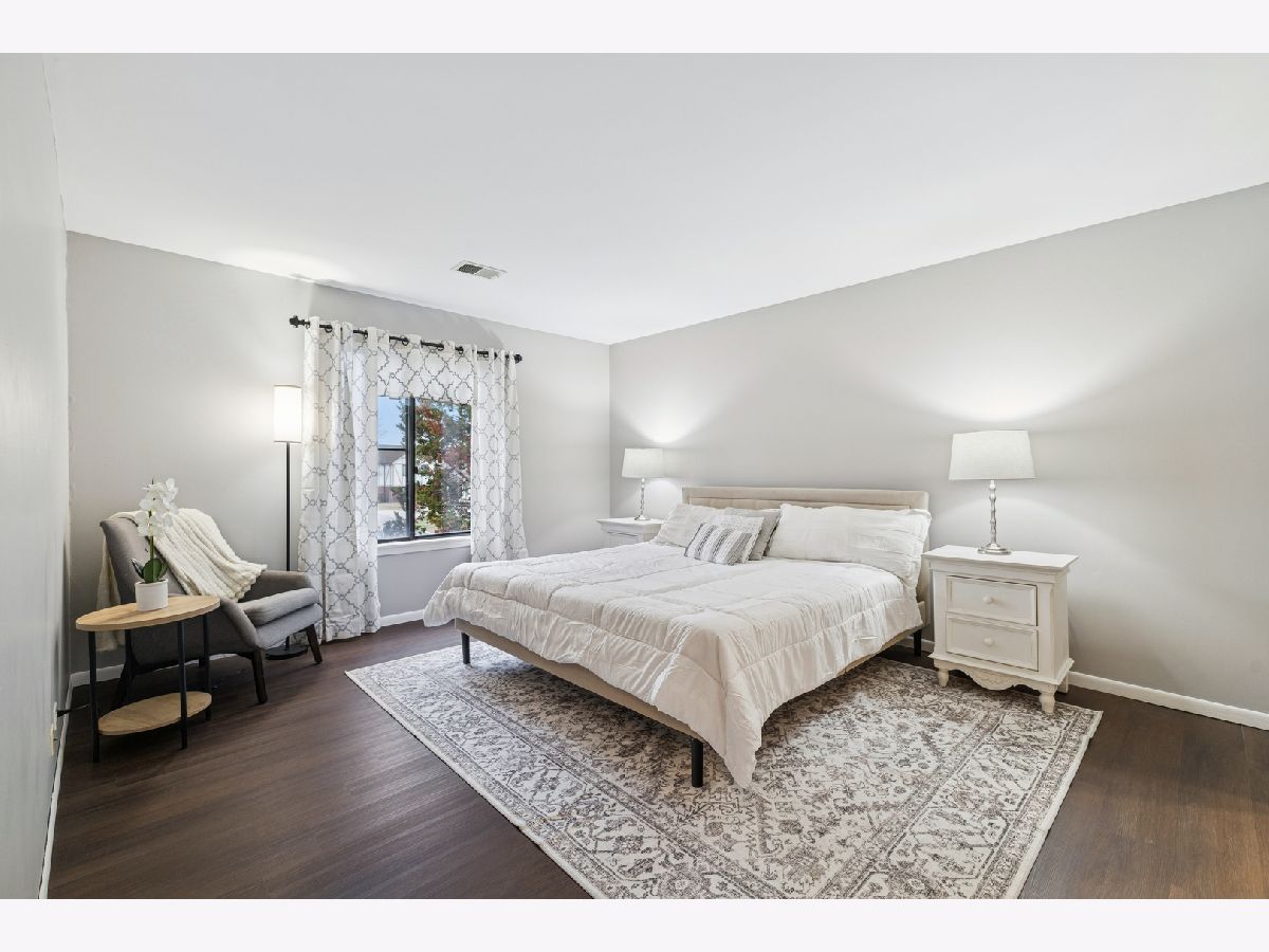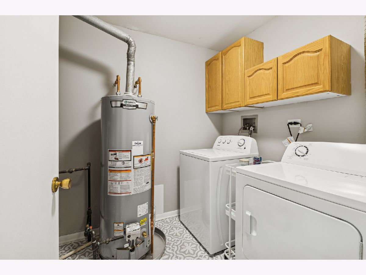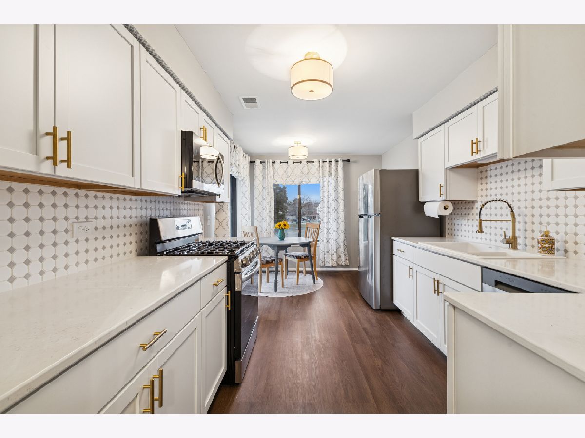 Beautifully renovated second floor condo featuring 2 bedrooms and 1.5 baths. As you open the door, the dining area to your right has new lighting and luxury vinyl plank flooring. When you enter the kitchen, you will see brand new shaker-style cabinets with brushed gold handles, a brand new quartz countertop with a porcelain sink and brushed gold faucet. The brand new backsplash and gold paper towel holder complete the look. All of the appliances are brand new, including refrigerator, dishwasher, microwave and oven/stove with five burners. Brand new lighting too. There is a coffee bar and eat-in area where you can enjoy a cup of coffee and look out your balcony through the sliding glass door. The oversized living room is perfect for entertaining, with a sliding glass door to your balcony where you can enjoy grilling in the summer. The convenient in-unit laundry room has a brand new washer and dryer, along with new lighting and tiling on the floor. The hall bathroom has a brand new granite vanity, faucet and lighting. The second bedroom has plenty of room for either a bedroom or an office. The master bedroom can fit a king-sized bed and sitting area. The attached master bathroom includes a brand new quartz vanity with faucet, brushed gold handles, a new toilet and new rainfall showerhead. And don't miss the walk-in closet in the master bedroom. The entire condo, which includes vinyl wood flooring throughout, has also been freshly painted. The water heater is new in October, 2025. The attached one-car garage is great and convenient. The HOA dues include water, a private pool and tennis/basketball courts. Close to Orland Mall and restaurants. Also, a one year home warranty is included.