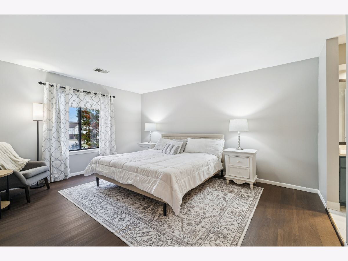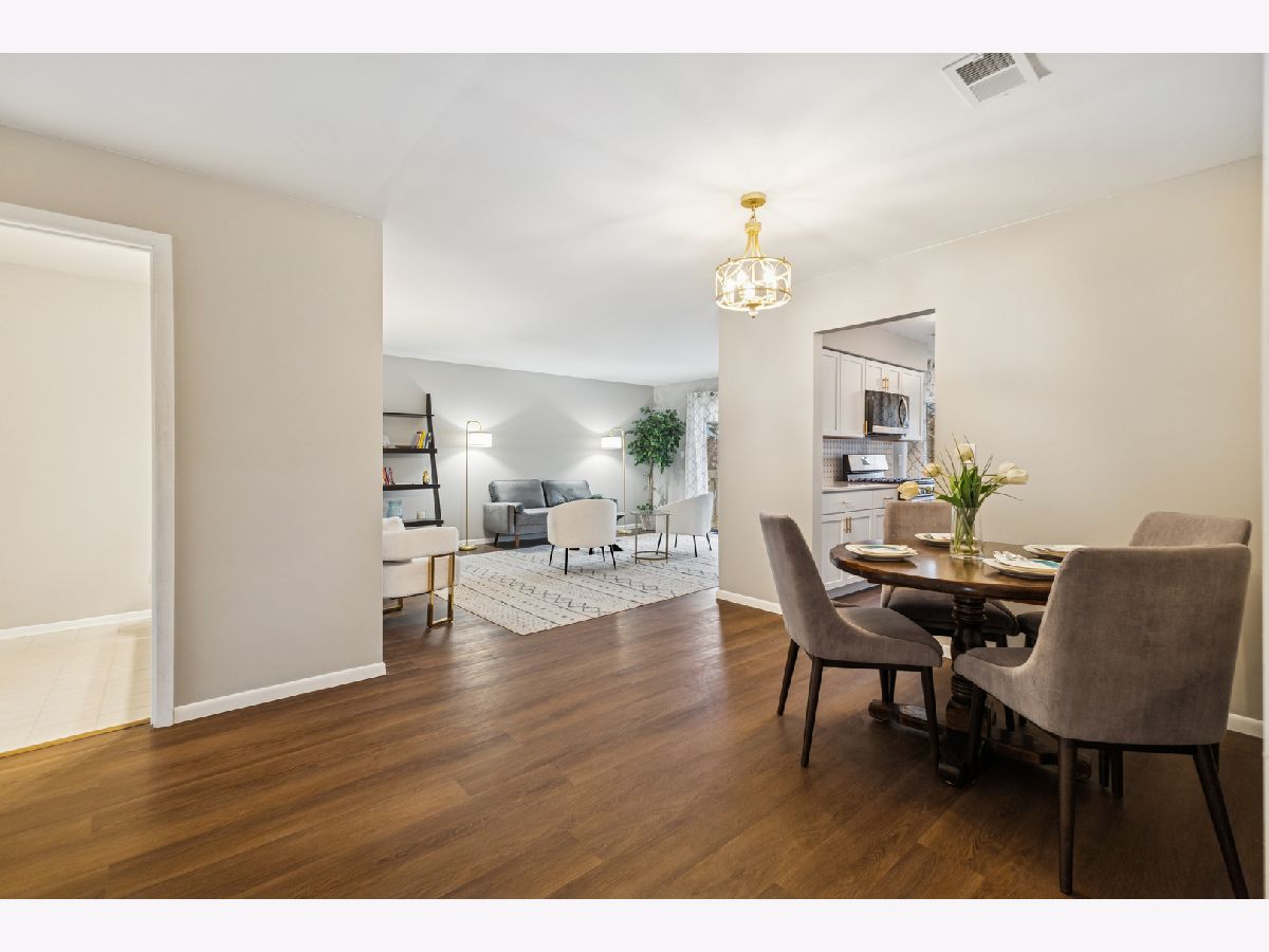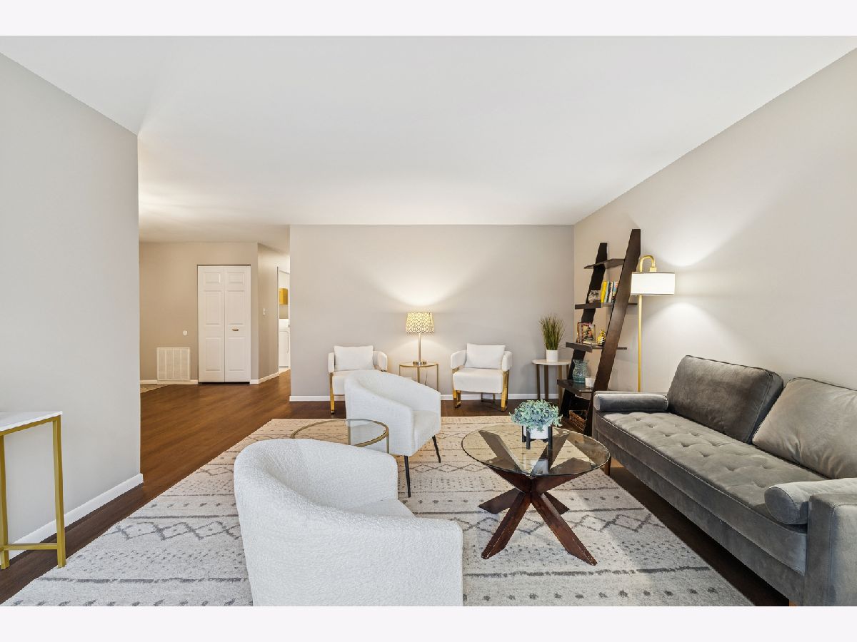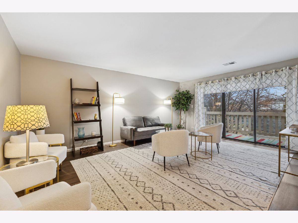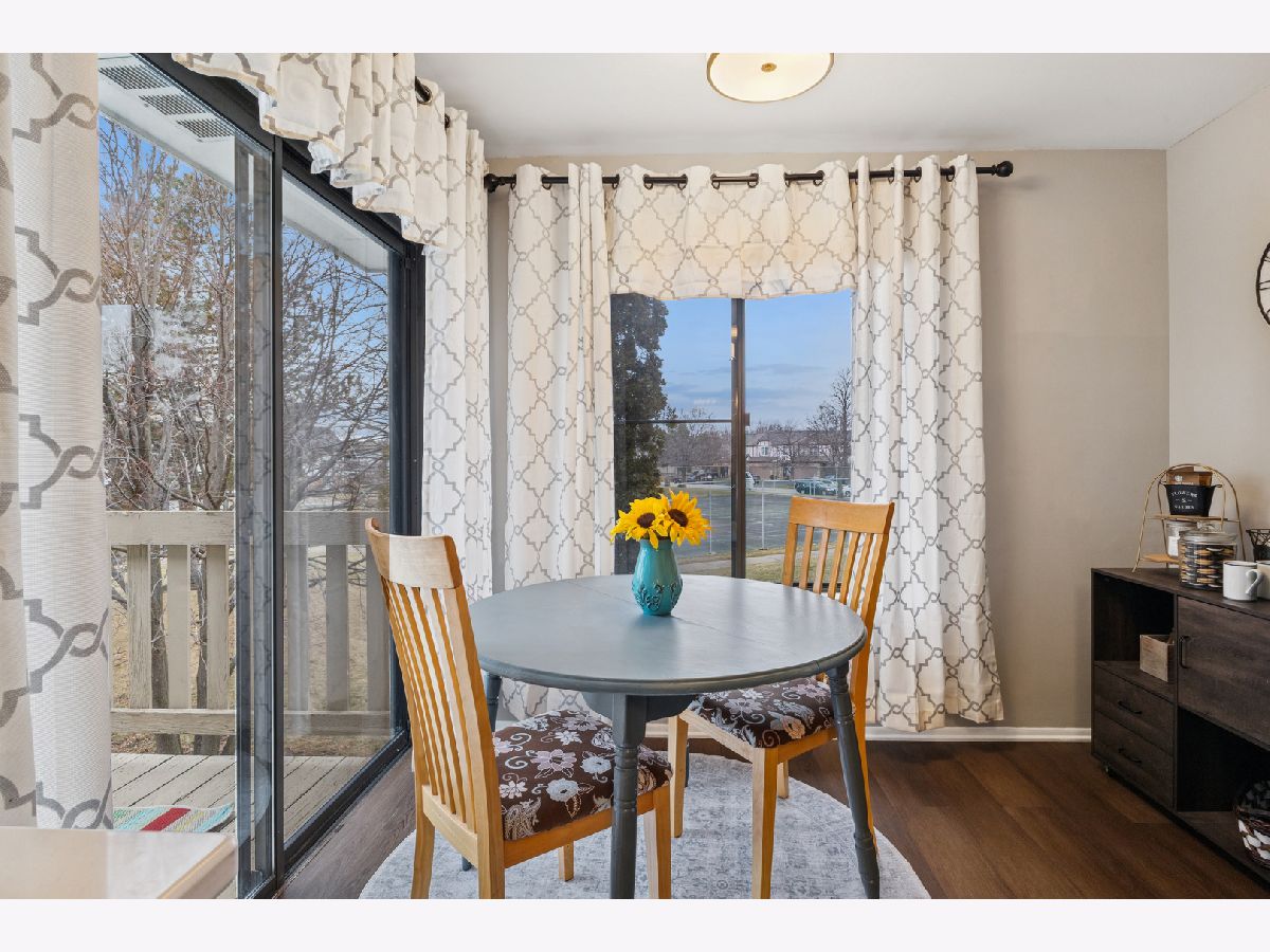 Beautifully renovated second floor condo featuring 2 bedrooms and 1.5 baths. As you open the door, the dining area to your right has new lighting and luxury vinyl plank flooring. When you enter the kitchen, you will see brand new shaker-style cabinets with brushed gold handles, a brand new quartz countertop with a porcelain sink and brushed gold faucet. The brand new backsplash and gold paper towel holder complete the look. All of the appliances are brand new, including refrigerator, dishwasher, microwave and oven/stove with five burners. Brand new lighting too. There is a coffee bar and eat-in area where you can enjoy a cup of coffee and look out your balcony through the sliding glass door. The oversized living room is perfect for entertaining, with a sliding glass door to your balcony where you can enjoy grilling in the summer. The convenient in-unit laundry room has a brand new washer and dryer, along with new lighting and tiling on the floor. The hall bathroom has a brand new granite vanity, faucet and lighting. The second bedroom has plenty of room for either a bedroom or an office. The master bedroom can fit a king-sized bed and sitting area. The attached master bathroom includes a brand new quartz vanity with faucet, brushed gold handles, a new toilet and new rainfall showerhead. And don't miss the walk-in closet in the master bedroom. The entire condo, which includes vinyl wood flooring throughout, has also been freshly painted. The water heater is new in October, 2025. The attached one-car garage is great and convenient. The HOA dues include water, a private pool and tennis/basketball courts. Close to Orland Mall and restaurants. Also, a one year home warranty is included.