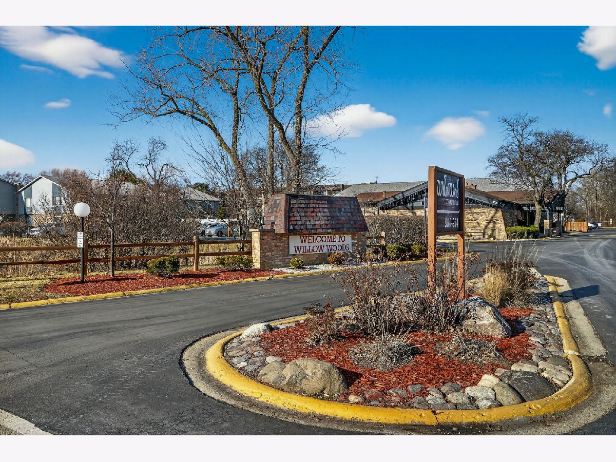 Welcome to Willow Woods !!! Convenient first floor location-no stairs * 2 bed/ 1.5 bath condo with courtyard view.Spacious living room with sliding door to patio. Primary bathroom with walk in closet . Laundry room and the storage space on the second floor .Community amenities include a clubhouse , playground , pool , laundry and storage space .. Two unassigned exterior parking spaces .Close to Bus , Metra Station , Expressway , Willow Trails Park . Well - maintained and for sale as-is.