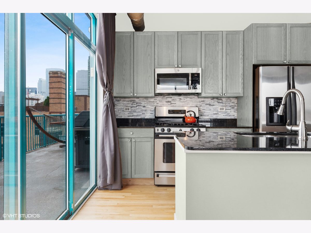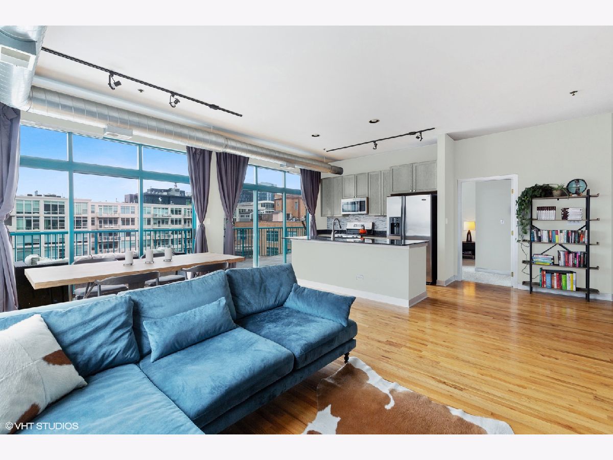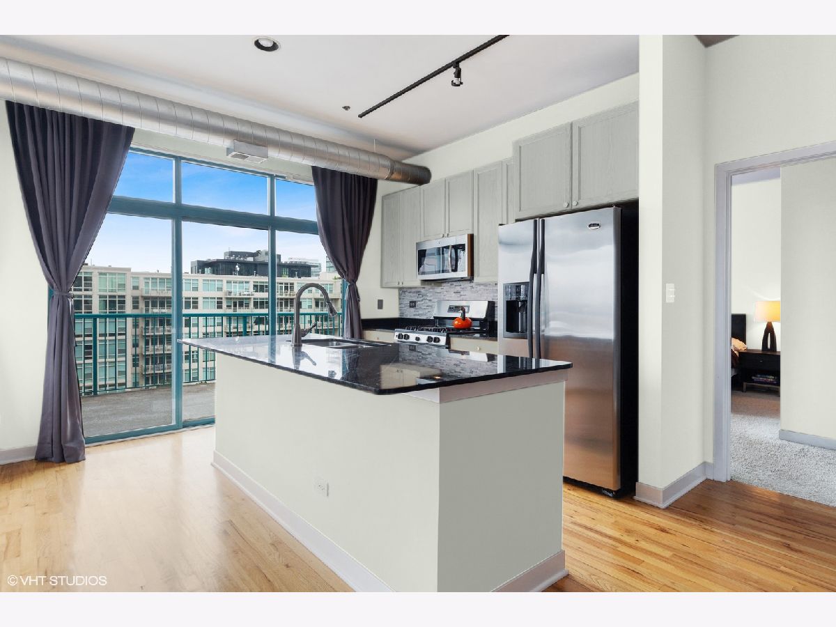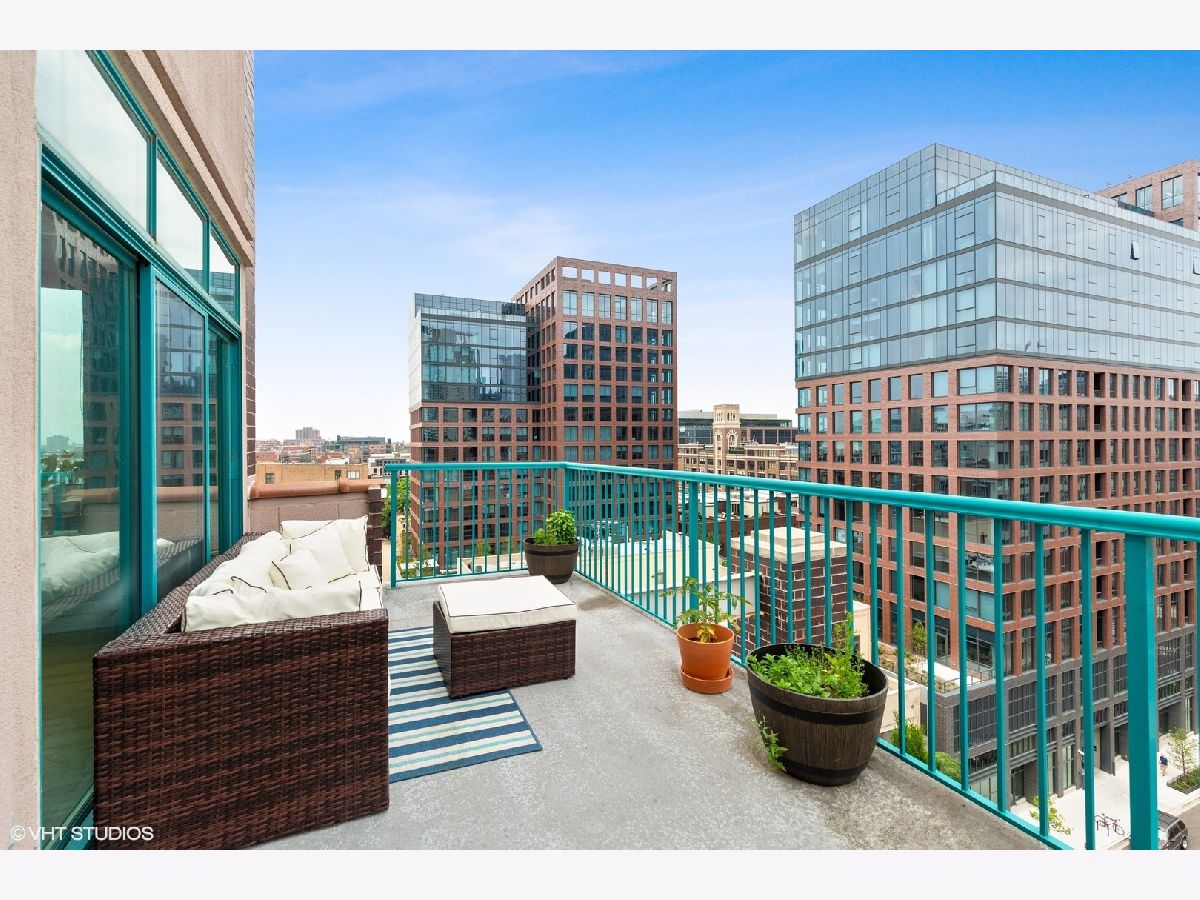 Phenomenal private outdoor space and great natural light in this heart of West Loop 2 bed/2 bath corner unit in an elevator building. Floor to ceiling windows, high ceilings, two fully enclosed bedrooms, split floor plan and open great room. Kitchen offers Metropolitan Grey cabinets, full height stone tile backsplash, double sink, stainless steel appliances, granite countertops and breakfast island. Generous sized main bedroom features walk in closet and en suite bath with oversized soaking tub plus separate walk-in shower. Enormous, 300+ sq ft walk out terrace provides plenty of space and sun with expansive city views. Large foyer entrance provides great storage with separate coat closet, pantry and in-unit laundry. One car deeded garage parking sold separately for additional $25k. Additional bonus storage included. Incredible West Loop location close to it all; bars, outdoor patios, boutiques, shopping, Morgan St. Pink/Green Line, and some of the hottest and best restaurants in the city on Randolph St Restaurant Row and Fulton Market.