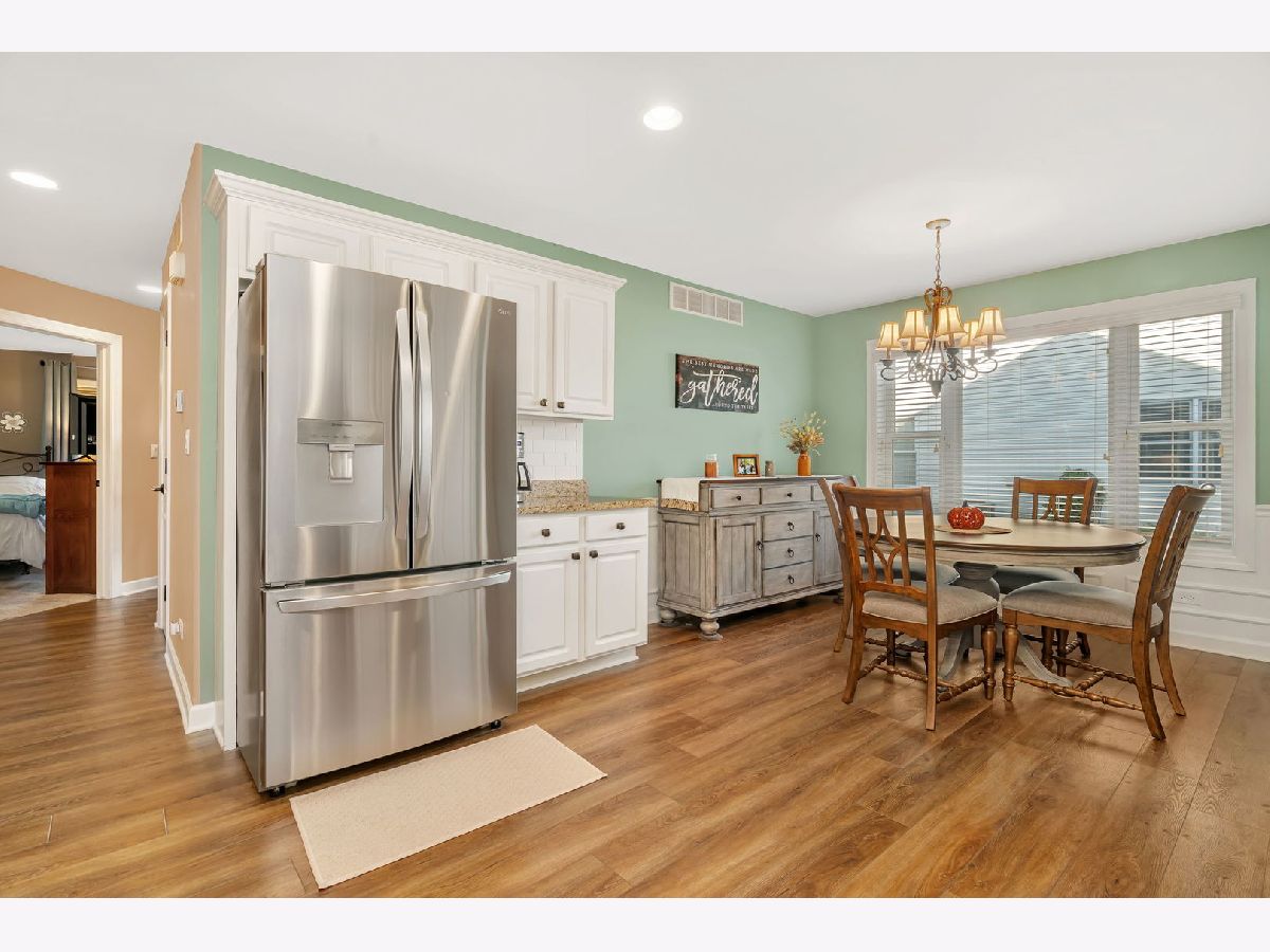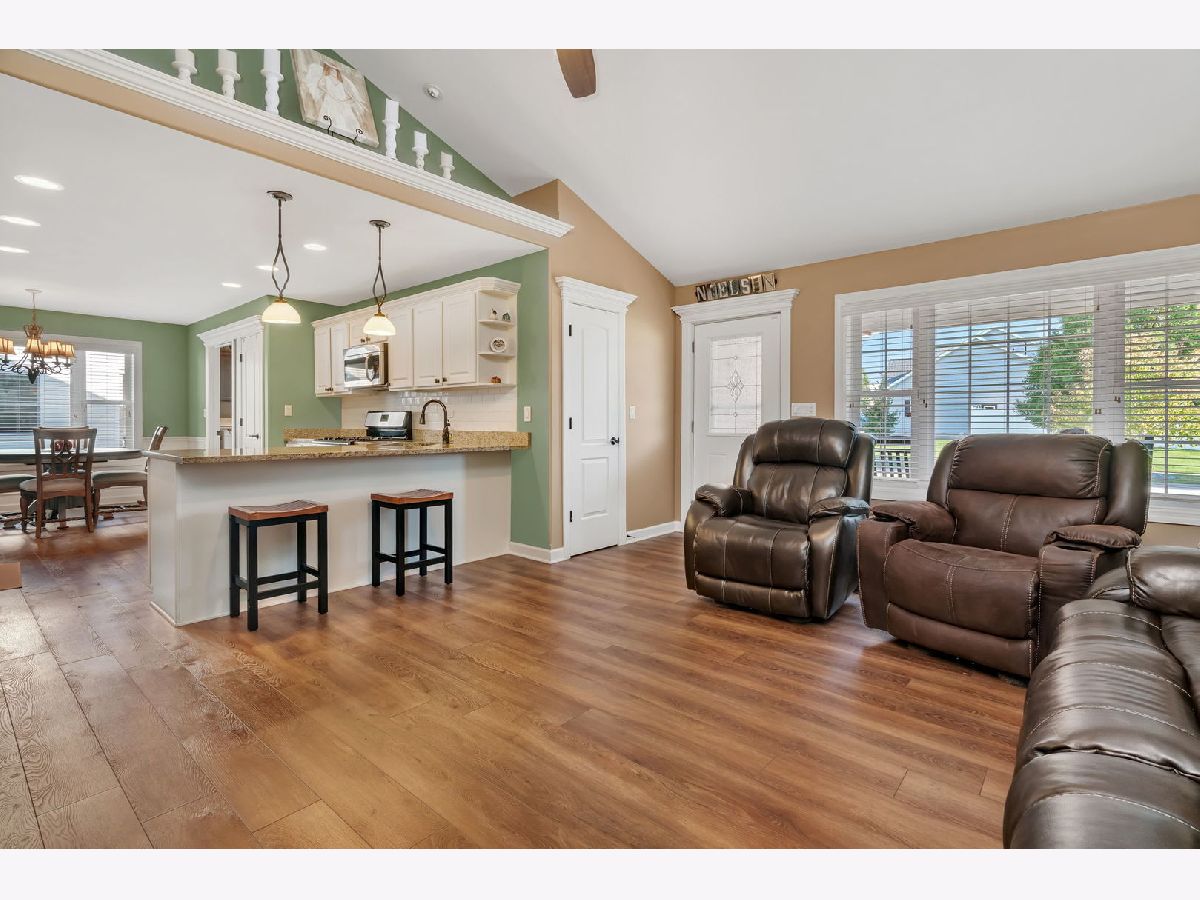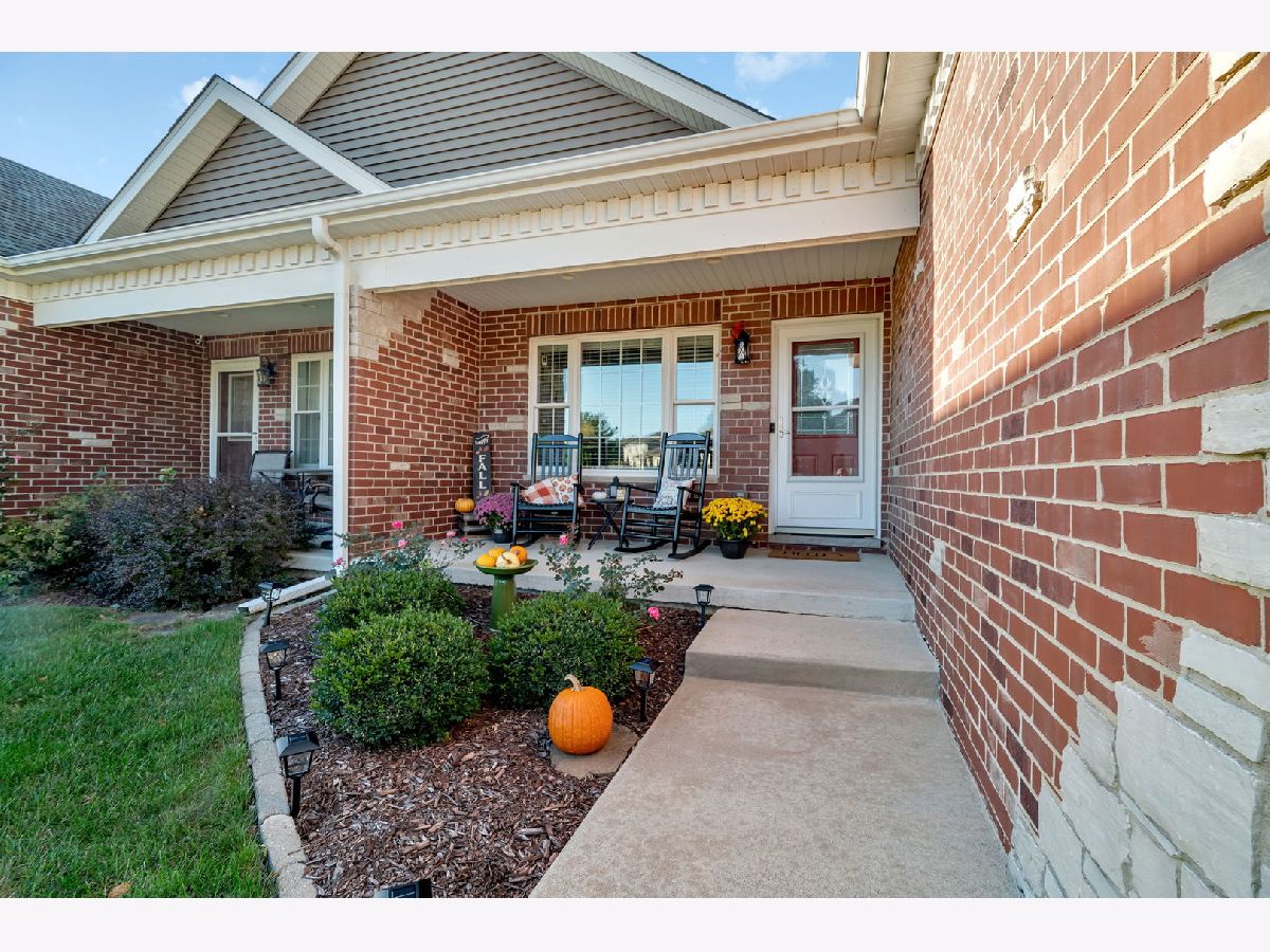 Welcome to 921 Casey Dr, Minooka-a warm and move-in ready 3 bed / 2 bath ranch duplex with NO HOA & a great location set within an established neighborhood of detached single-family homes, close to Minooka schools. A charming brick & stone front, covered porch, nicely landscaped yard, and attached 2-car garage welcome you. Inside, a vaulted great room opens to the bright, eat-in kitchen with white cabinetry, granite counters, subway-tile backsplash, breakfast bar with pendant lighting, and stainless-steel appliances (refrigerator and dishwasher new 2023). Throughout the main living spaces you'll find beautiful, natural-toned LVP (2023) with a hardwood feel; bedrooms are carpeted for comfort. The primary suite includes a granite vanity and step-in tiled shower. Two additional bedrooms share a full hall bath with granite vanity. Convenient main-level laundry with upper cabinets and washer(new in 2023)/dryer. A full, unfinished basement with bathroom rough-in provides excellent storage and future finishing potential. Radon detector installed. Quick access to I-80/I-55, shopping, parks, and Minooka schools. Home Warranty Included!