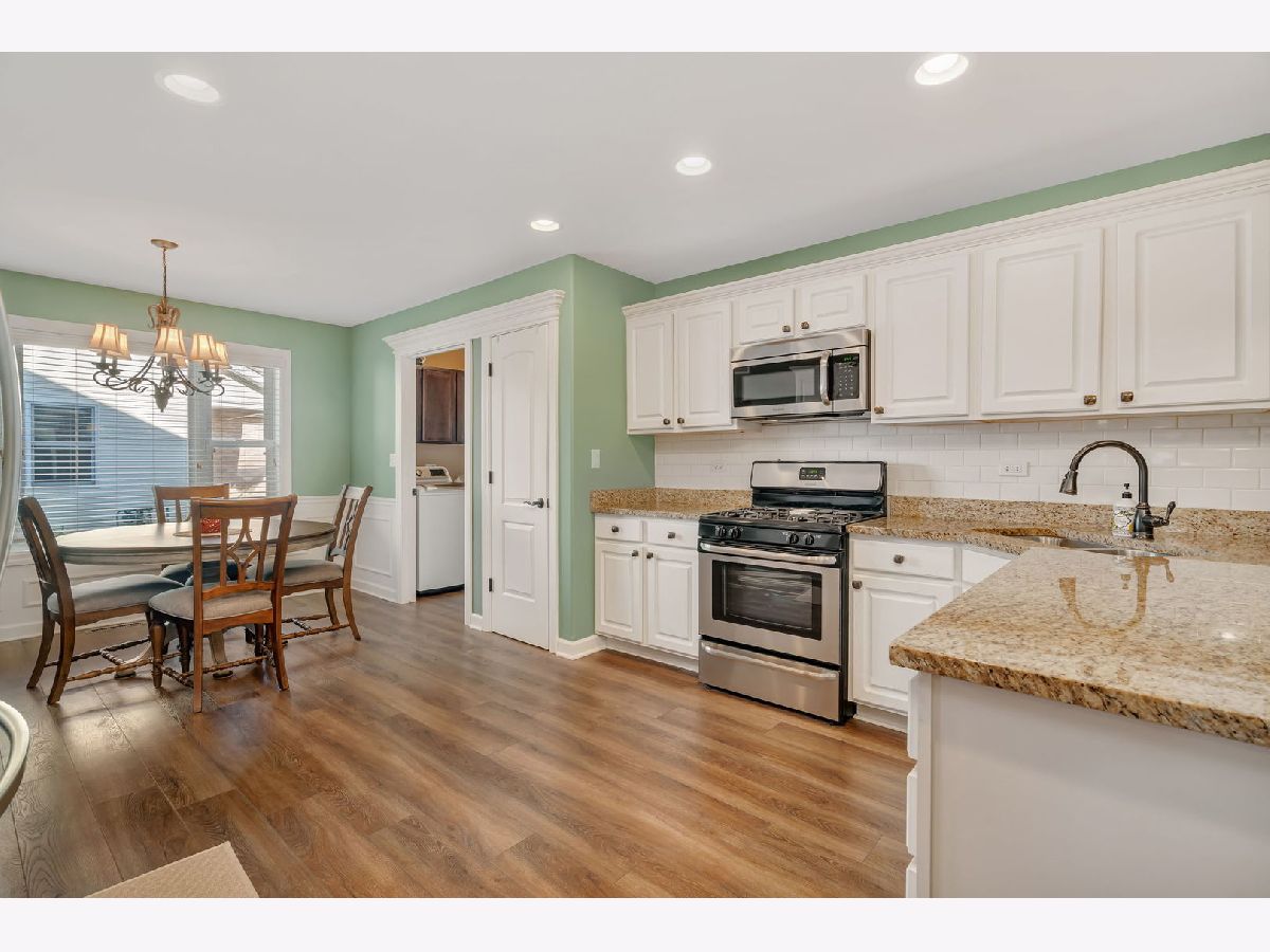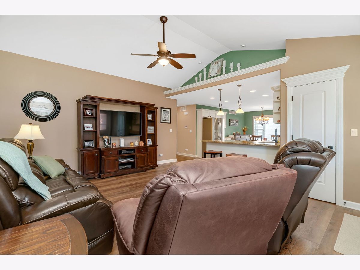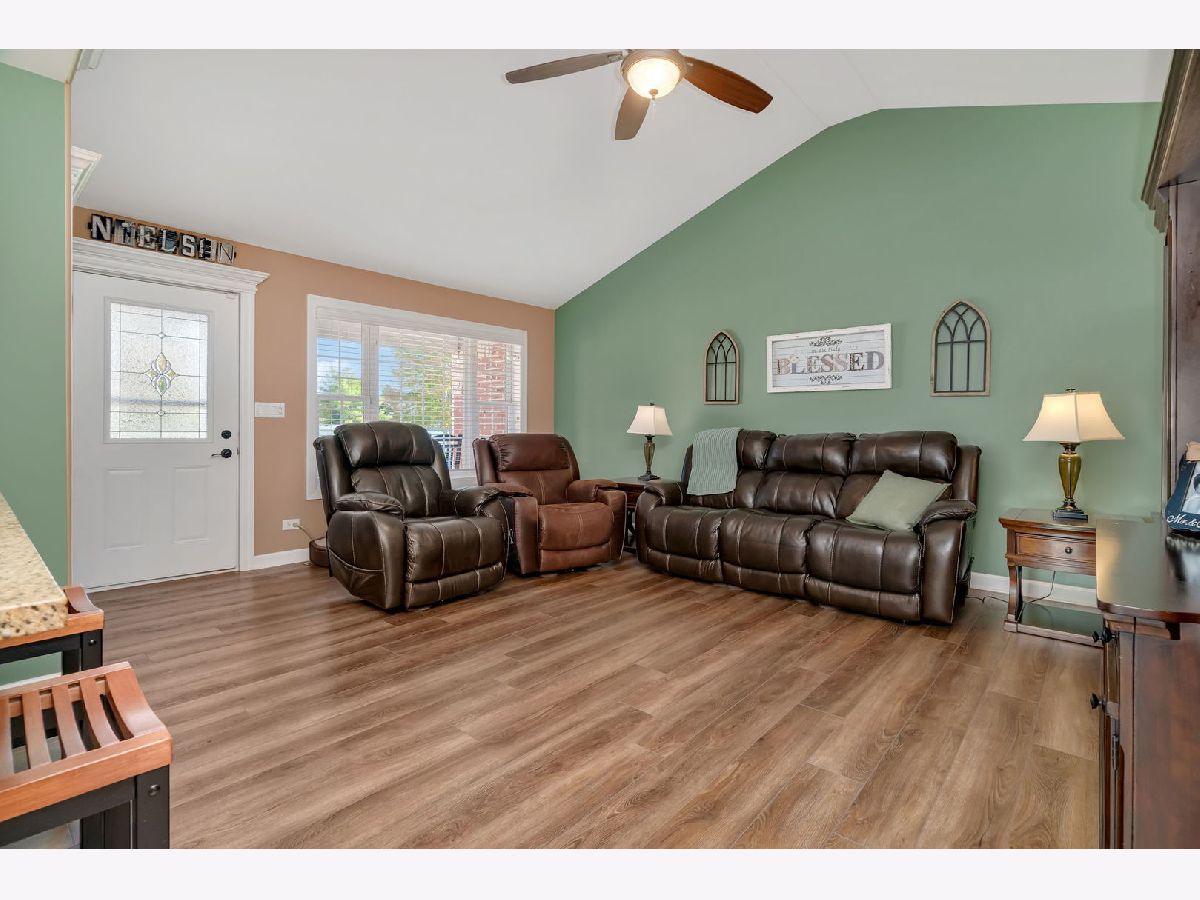 Welcome to 921 Casey Dr, Minooka-a warm and move-in ready 3 bed / 2 bath ranch duplex with NO HOA & a great location set within an established neighborhood of detached single-family homes, close to Minooka schools. A charming brick & stone front, covered porch, nicely landscaped yard, and attached 2-car garage welcome you. Inside, a vaulted great room opens to the bright, eat-in kitchen with white cabinetry, granite counters, subway-tile backsplash, breakfast bar with pendant lighting, and stainless-steel appliances (refrigerator and dishwasher new 2023). Throughout the main living spaces you'll find beautiful, natural-toned LVP (2023) with a hardwood feel; bedrooms are carpeted for comfort. The primary suite includes a granite vanity and step-in tiled shower. Two additional bedrooms share a full hall bath with granite vanity. Convenient main-level laundry with upper cabinets and washer(new in 2023)/dryer. A full, unfinished basement with bathroom rough-in provides excellent storage and future finishing potential. Radon detector installed. Quick access to I-80/I-55, shopping, parks, and Minooka schools. Home Warranty Included!