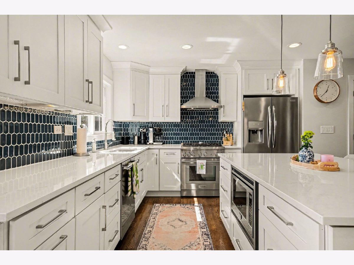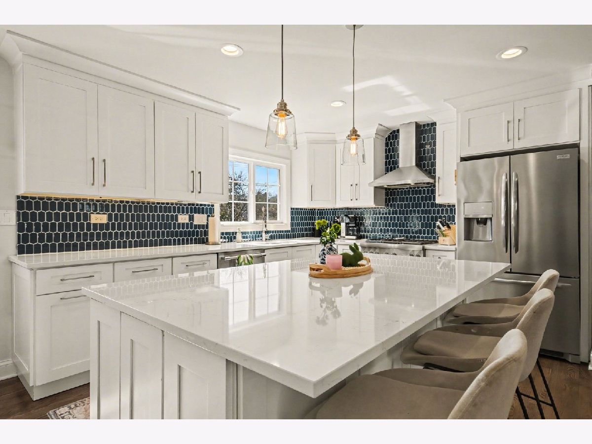 Welcome to this beautifully renovated 3-bedroom, 2.5-bath home with a versatile den/bonus room, perfectly situated on a rare extra-wide 70' x 165' lot in the heart of Glen Ellyn. Offering three levels of fully gut rehabbed living space, an attached 2-car garage with newer concrete driveway/retaining wall, and a new stunning backyard oasis cooking and living area, this home delivers an exceptional blend of style, comfort, and functionality. The home features a sought-after open-concept layout anchored by a modern white kitchen with quartz countertops, stainless steel appliances, including new Thermador range and dishwasher, and a massive island perfect for hosting large gatherings. The living and dining areas flow seamlessly, highlighted by gleaming hardwood floors and expansive windows that fill the space with natural light. Upstairs, you'll find three bright bedrooms, including a spacious primary suite with en-suite double-vanity bath and walk-in shower, along with a flexible bonus room ideal for a home office, library, playroom, or potential fourth bedroom. The lower level offers a warm and inviting family room with fireplace, powder room, laundry area with new LG washer and dryer, and sliding glass doors that open directly to the outdoor living space. The backyard, fully redesigned in 2022, was designed by Grant & Power Landscaping with entertaining in mind. Enjoy two levels of UniLock hardscape patios, a built-in Lynx Sedona gas grill, built-in Kamado Joe grill, gas fire pit, new retaining walls, exterior lighting, lush landscaping, and a new shed, all within a newly fenced yard perfect for entertaining, relaxing, or everyday living. Ideally located just steps from Spring Avenue Park District and dog park, and within walking distance to top-rated Ben Franklin Elementary. Minutes to downtown Glen Ellyn, Metra access, shopping, dining, and convenient access to Roosevelt Road and I-355. This is a rare opportunity to own a fully updated, turn-key home on an oversized lot in one of Glen Ellyn's most desirable neighborhoods with amazing schools (Ben Franklin Elementary, Hadley Junior High, and Glenbard West High School).