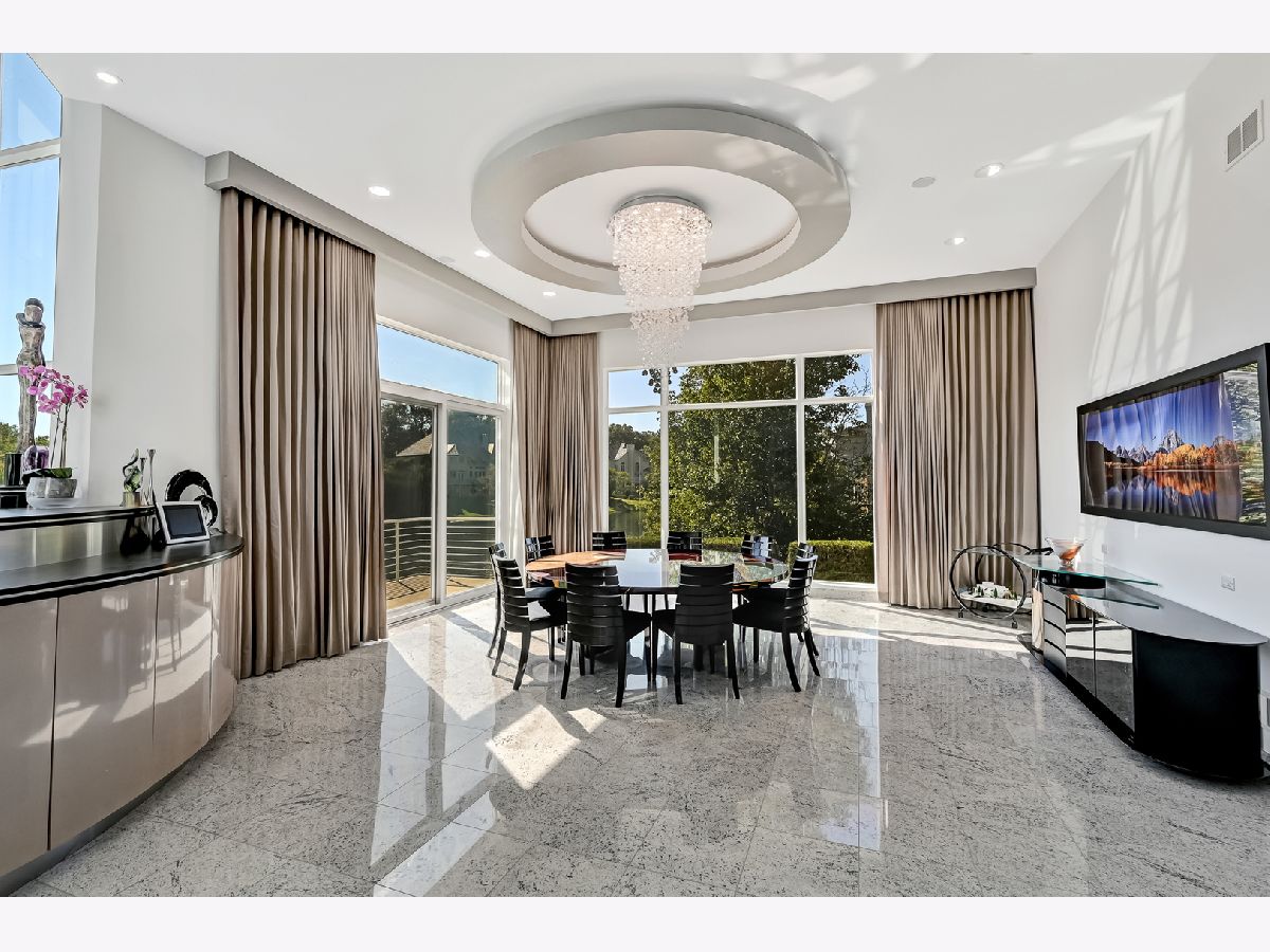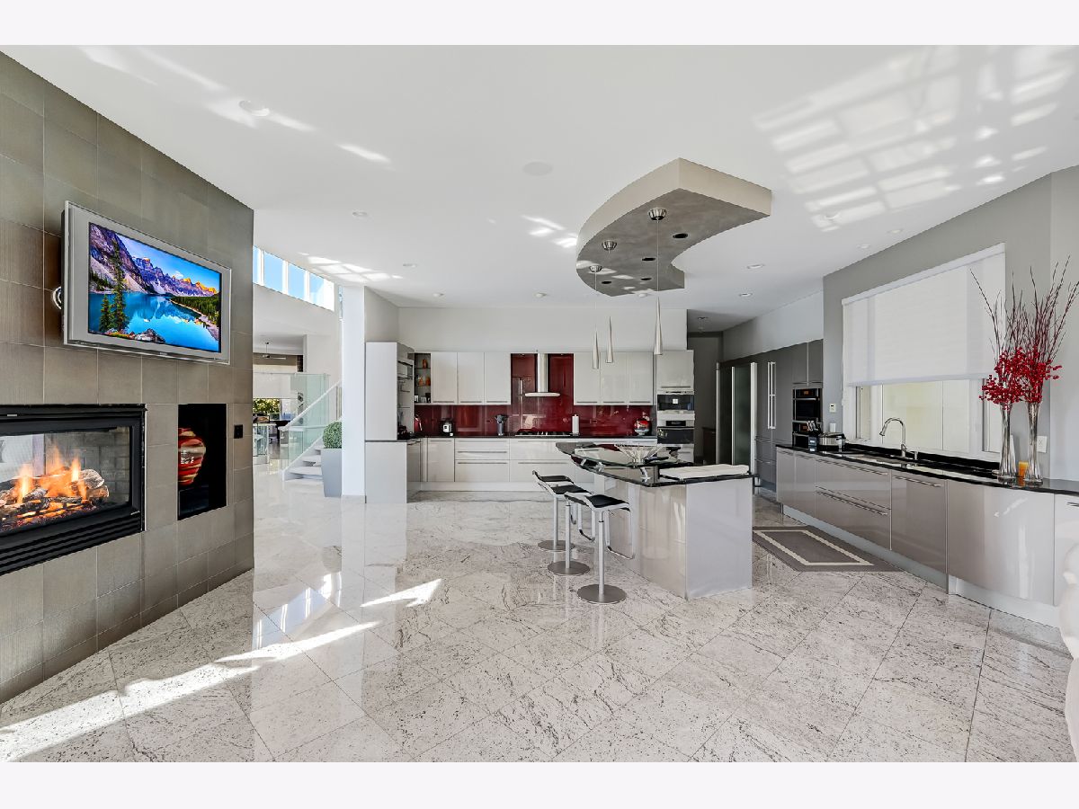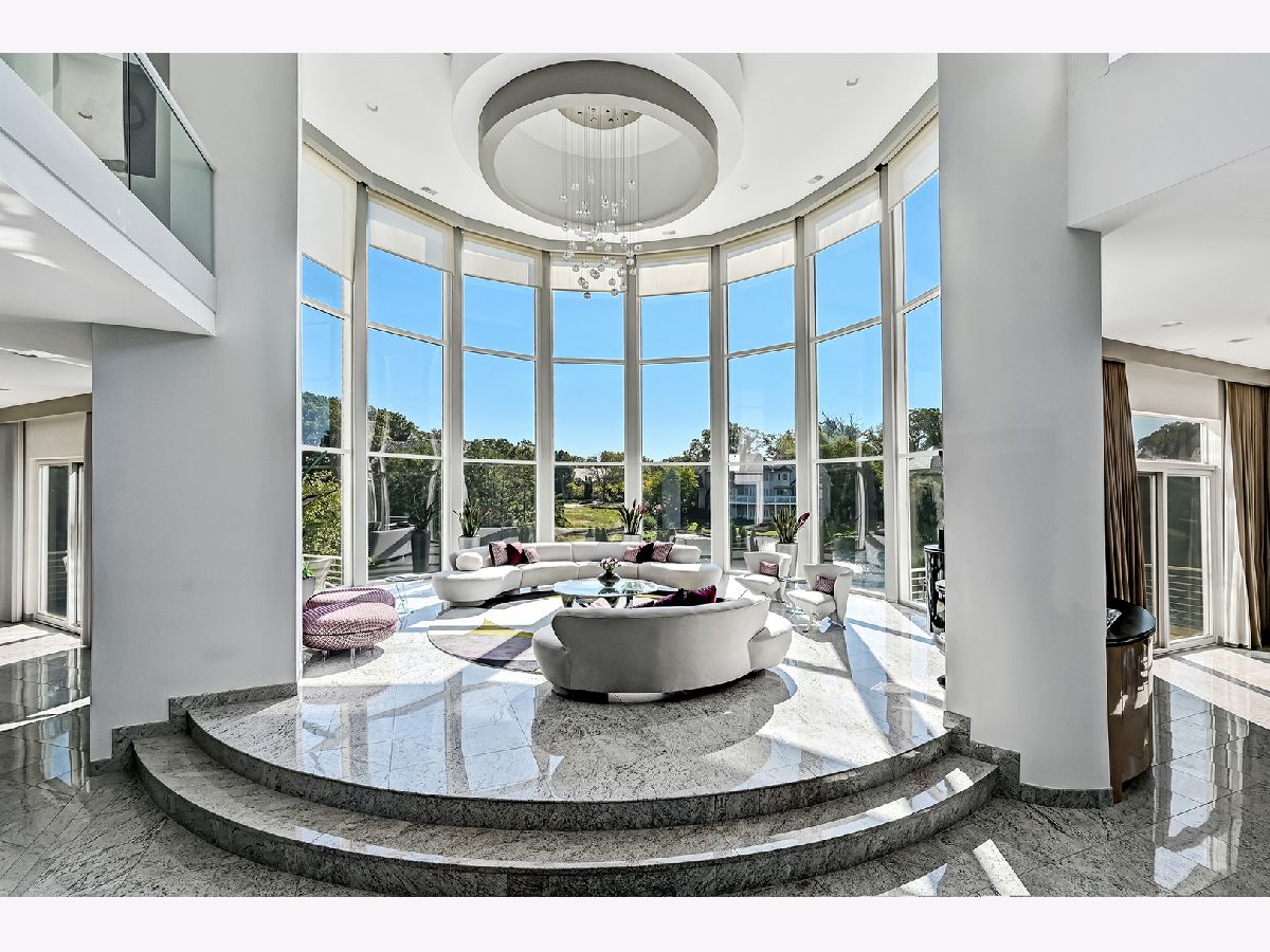 Indulge in an elegant contemporary masterpiece nestled within the exclusive gated community of Falling Water in Burr Ridge. This architectural gem is surrounded by breathtaking vistas of towering heritage trees and serene waterfronts, offering a sanctuary of tranquility and luxury. The area is a picturesque tableau of shimmering ponds, graceful swans, and lush greenery. Upon entering the foyer, you're welcomed by the dramatic rotunda/great room, showcasing soaring 30-foot ceilings that amplify the sense of grandeur. The main floor exudes sophistication with its open-concept design, seamlessly blending modern living with stunning pond views. Cozy fireplaces grace all three levels, with two offering a dual-sided warmth. The heart of the home reveals an exquisite Italian-inspired kitchen, featuring Snaidero cabinetry and high-end Miele and Sub-Zero appliances-an epicurean's dream. Ascend the curved glass floating staircase to discover expansive bedroom suites, each a private retreat with walk-in closets, sitting areas, and opulent full baths. The second-floor boasts a sprawling veranda, perfect for entertaining or savoring sunset cocktails. This versatile space also invites peaceful meditation and yoga sessions. The fully finished walkout lower level is a haven of entertainment and relaxation, complete with a home theater, sophisticated wet bar, secondary kitchen, and a soothing spa area with fitness amenities and a jacuzzi. A four-car garage with epoxy floors and radiant heating complements this luxurious abode. Conveniently located near the vibrant Burr Ridge Village Center and major highways, this residence perfectly balances luxury with accessibility. Every detail has been meticulously curated, sparing no expense to ensure unparalleled opulence. Seize this once-in-a-lifetime opportunity to own this exquisite home.