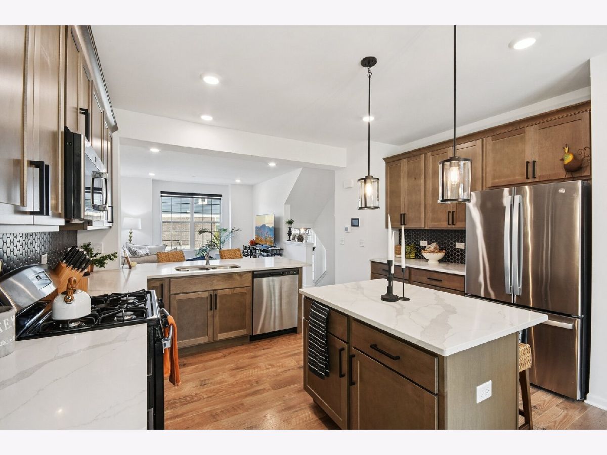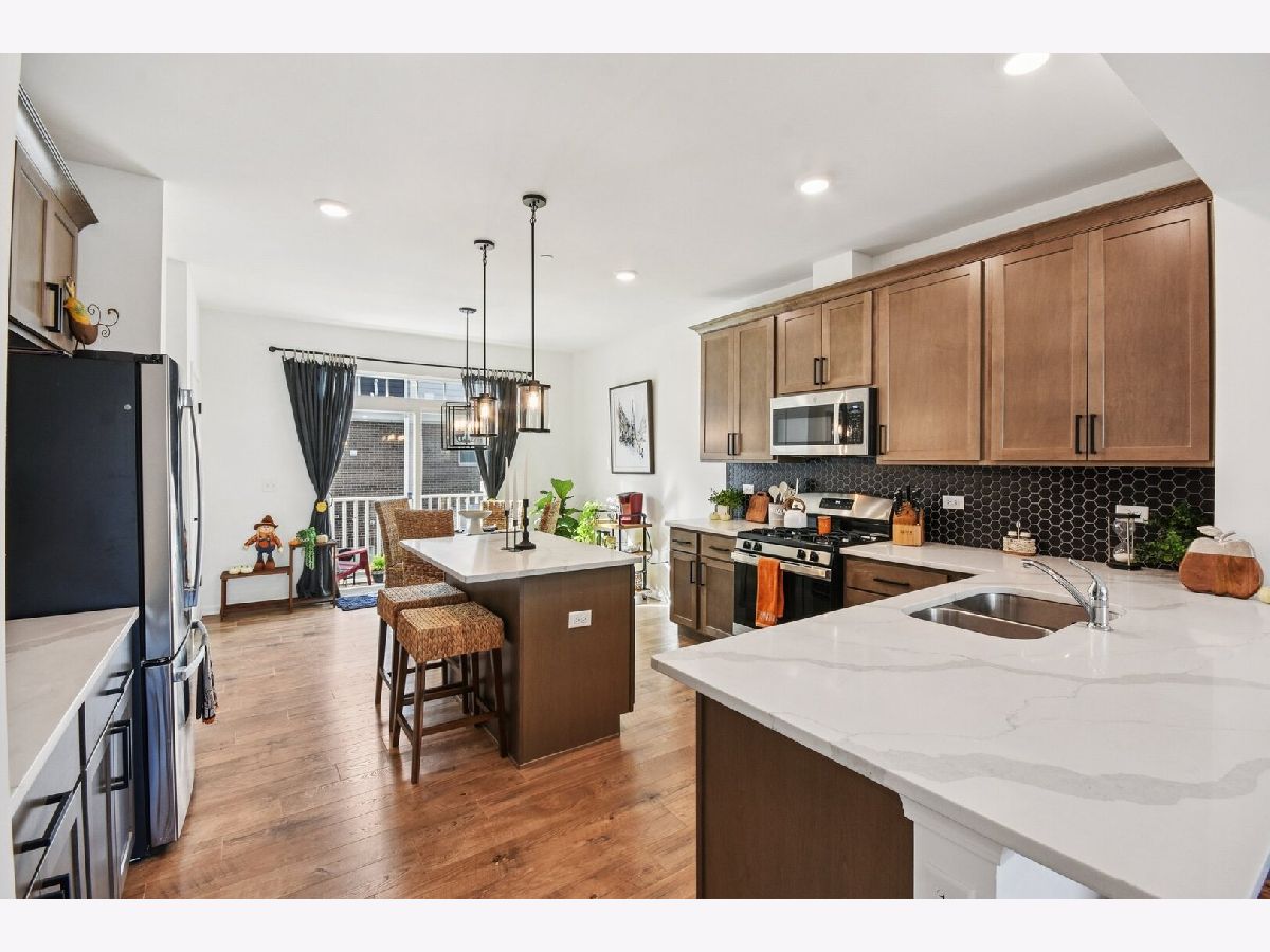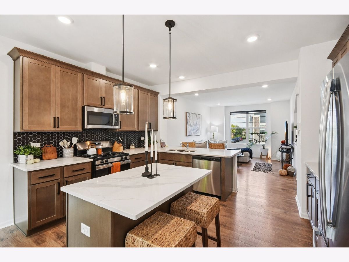 Stunning 3-Story Belmont Model Townhome in Metro East of Orland Park! This popular model is pristine with incredible updates throughout. This home feels like brand-new construction with high-quality finishes at every turn. The Gourmet Kitchen has sleek cabinetry, stainless steel appliances, quartz counters, and island and a charming eating area with seamless access to the outdoor balcony. Spacious Living Room flooded with natural light features high quality flooring and ample space. Both sizable bedrooms have their own bath, and the versatile Loft easily converts to a home office or media room!
