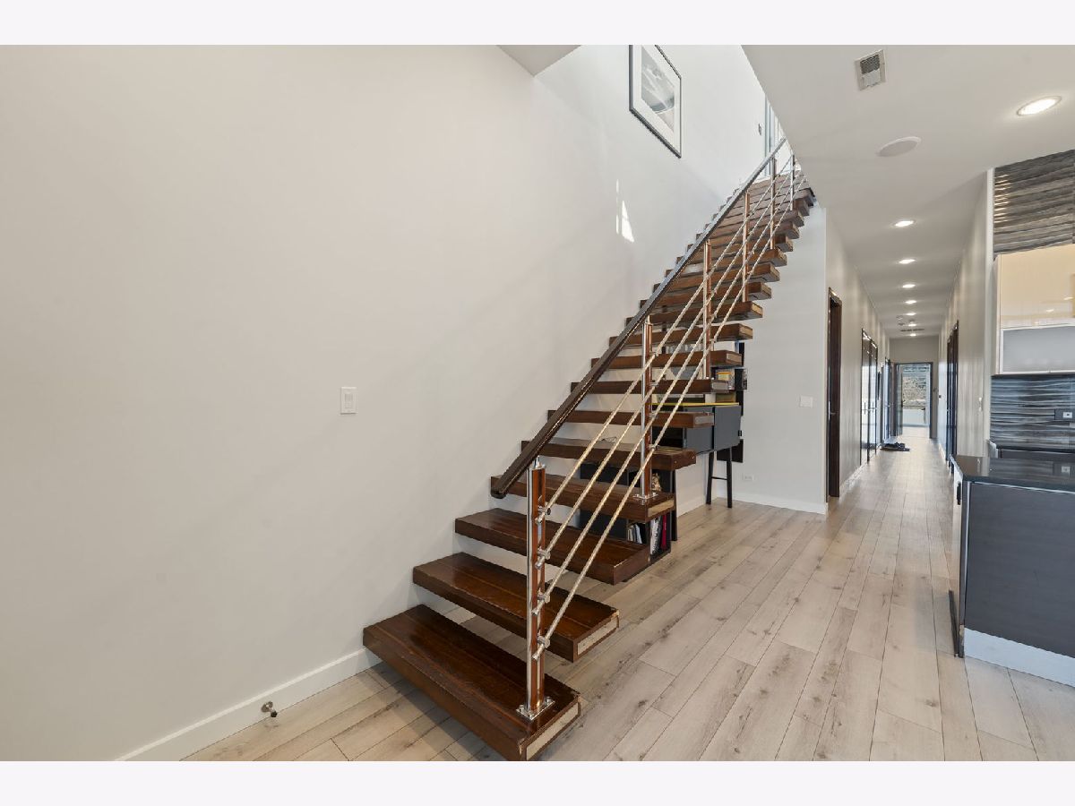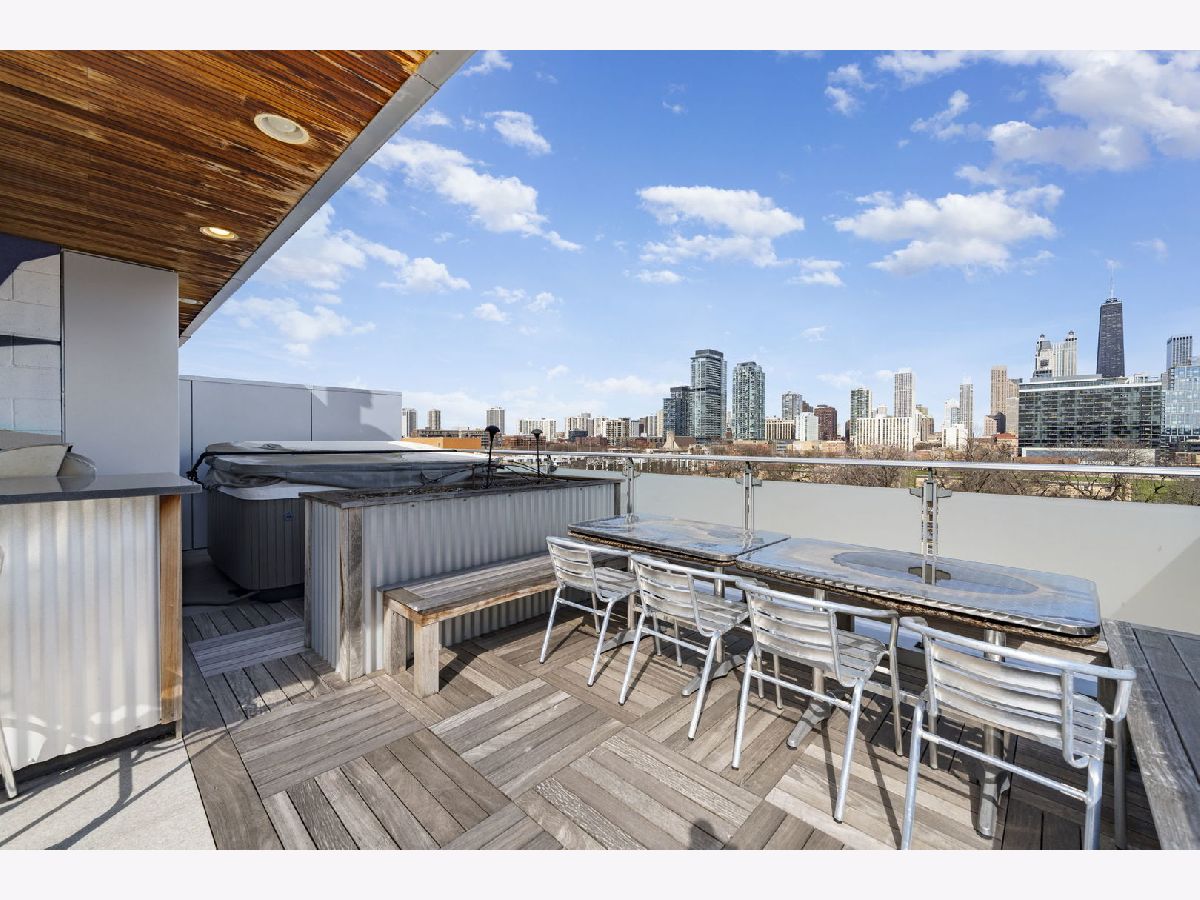 Where Style, Sophistication, and City Living Converge. Step into a residence where location, design, luxury, and comfort come together in perfect harmony. This one-of-a-kind, 2,300 square-foot condominium begins with the exclusivity of direct elevator access, welcoming you into a sun-drenched, open-concept living space. Soaring 11-foot ceilings, floor-to-ceiling windows, and beautiful vinyl floors set the tone for modern elegance, while a striking floating staircase adds architectural drama. The primary suite is a sanctuary unto itself, featuring a private balcony with dazzling city views-an ideal spot to unwind and take in the skyline. Inside, enjoy not one but two custom-organized closets, including an expansive walk-in, offering style and storage in equal measure. The spa-inspired ensuite bath pampers with a steam shower and heated floors for the ultimate indulgence. Generously sized, the second and third bedrooms each offer their own private outdoor retreats, creating peaceful spaces to relax. And then there's the showstopper: an incredible 1,100 square-foot private rooftop terrace, accessible via your private elevator. Designed for both relaxation and unforgettable entertaining, this outdoor oasis features a jacuzzi, a fully equipped wet bar, and an enclosed sunroom-your own sky-high retreat in the heart of the city. Additional highlights include two heated garage parking spaces and a prime location just steps from the Purple and Brown Line EL stops and a short stroll to Chicago Avenue. This is not just a home-it's a lifestyle. Welcome to your urban oasis.