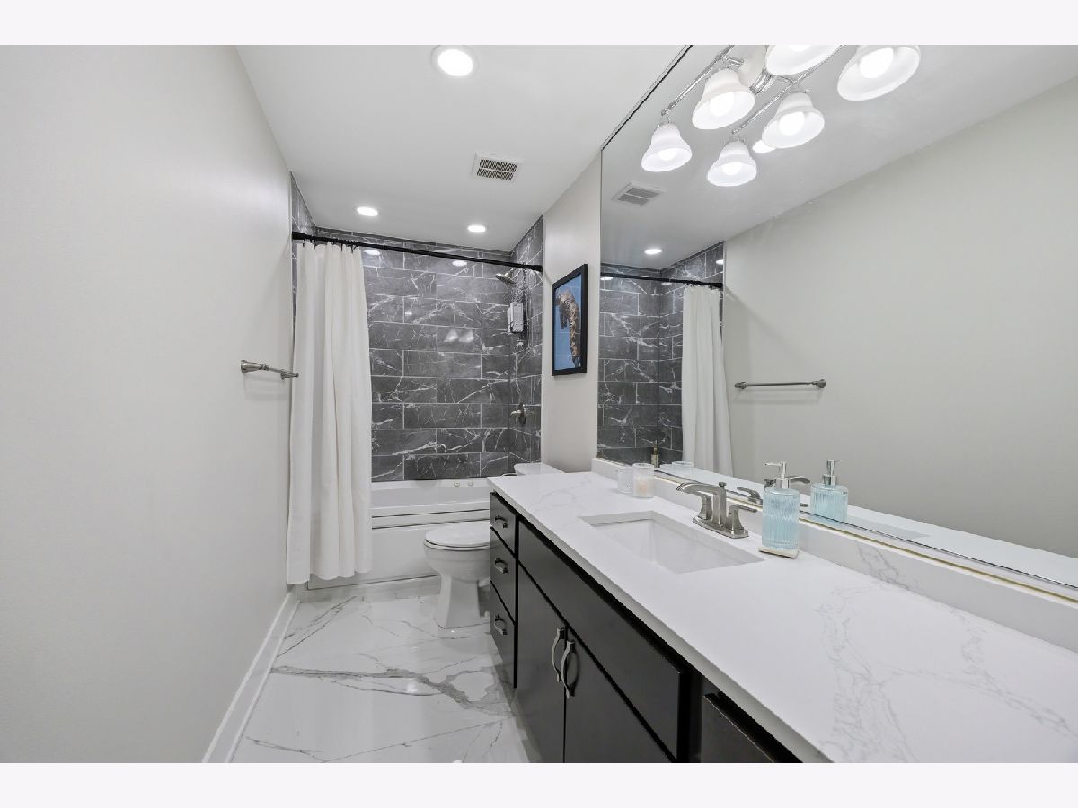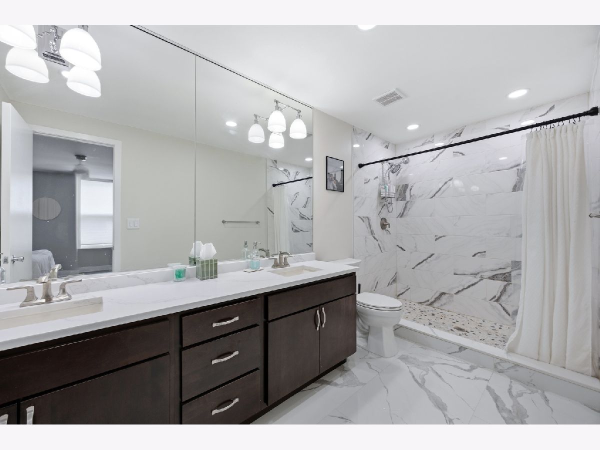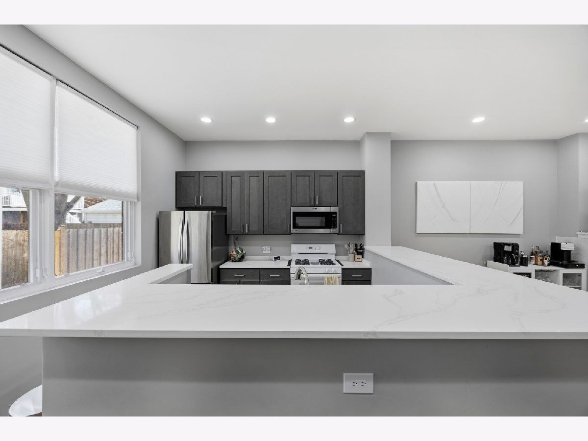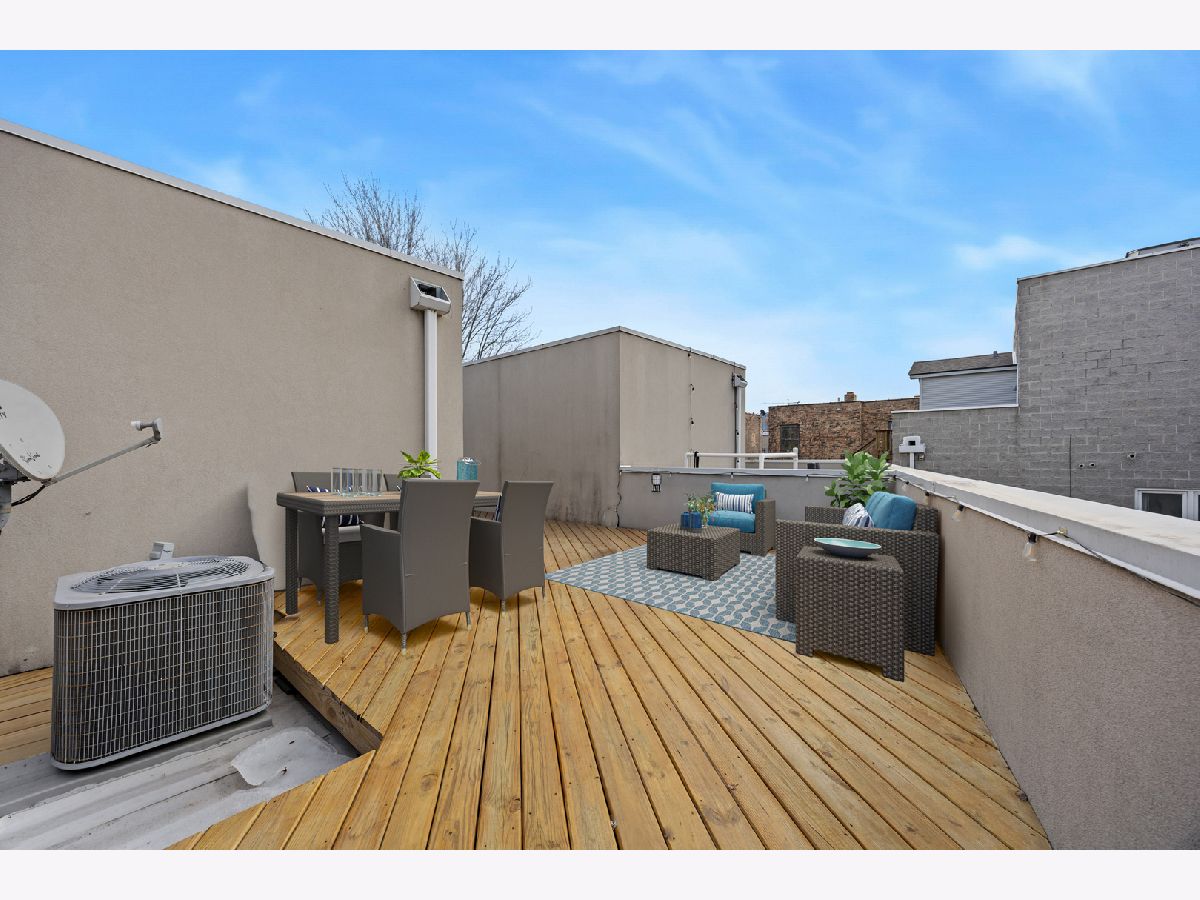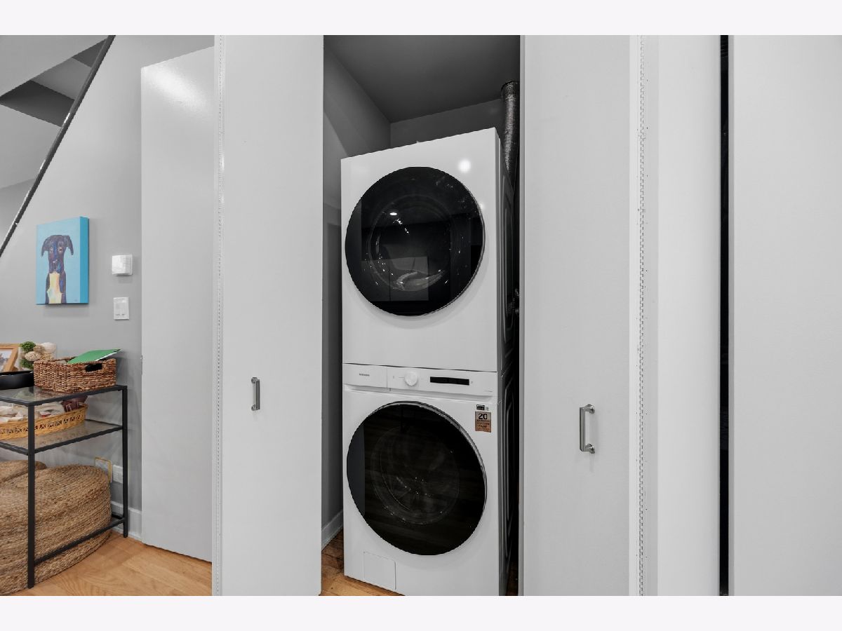 HOT West Town's River West stunning three-level townhouse style 2-bed+den 2-bath condo. This 2024 renovation boasts a spacious open floor plan featuring beautiful oak floors on main level, a large kitchen with quartz countertops including large breakfast bar, custom cabinetry, LG, Whirlpool, and Samsung appliances. Relax or entertain in the huge living room with fireplace. Spacious master bedroom ensuite with double vanity bath, marble tile and a huge walk-in shower. Yes, the second bedroom is large!!!... with attached terrace! Third level den is perfect for a loft bedroom or home office. Entertain on your spacious rooftop deck (2024). TWO PARKING SPACES!-ONE garage parking space PLUS a 2nd exterior parking pad spot. Low HOA. Steps to vibrant restaurants, nightlife, boutiques, and the nearby music venue, The Salt Shed. Tremendous location with easy access to I94 and proximity to the CTA Blue Line!