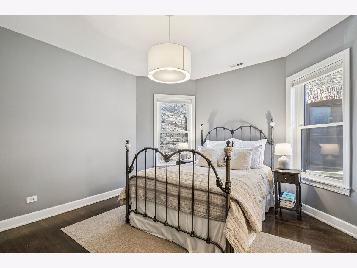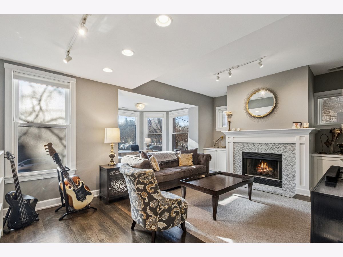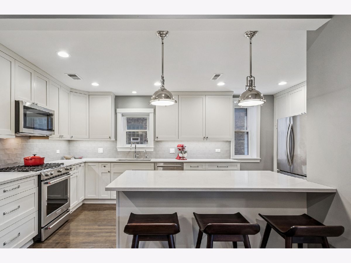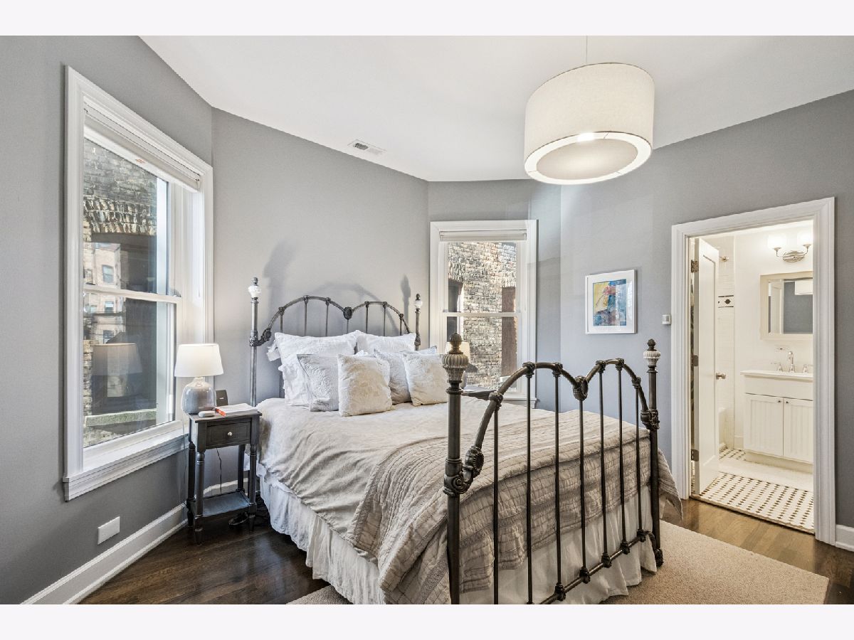 Located on a Gorgeous tree lined quiet cul-de-sac street, this extra-large 2,000 sq. ft. residence offers everything a buyer would want including soaring ceilings, real oak hardwood floors throughout, and a ton of natural light from three exposures. A beautifully remodeled entry foyer sets the tone for this character-filled building. The extra large living room features a working fireplace with beautiful custom surround, mantle, and built-in cabinetry, while a south facing sunroom provides the perfect bright space for a home office. The completely gutted, stunning custom kitchen opens to an expansive family/dining room and features gorgeous quartz countertops, 42-inch custom cabinetry, high-end stainless steel appliances, custom lighting, and access to a private back porch. Three large en-suite bedrooms offer excellent space & privacy. The primary suite includes a large organized walk-in closet and a beautifully renovated bath with a double vanity, seamless glass shower, separate soaking tub, custom tile, and designer lighting. Other features include gorgeous Hardwood refinished floors throughout,custom lighting in every room, large private deck, in-unit washer/dryer, extra storage, central air and includes 1 parking in price. Just steps from Lincoln Park, beaches, running paths, and playgrounds, and only two blocks to the Red Line. Surrounded by restaurants, cafes, and grocery stores. Parking included in an amazing location.
