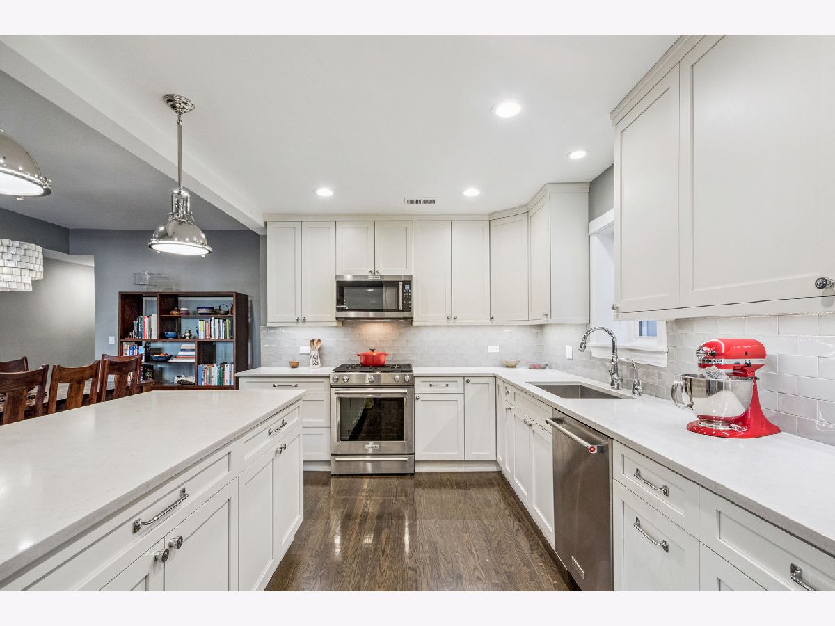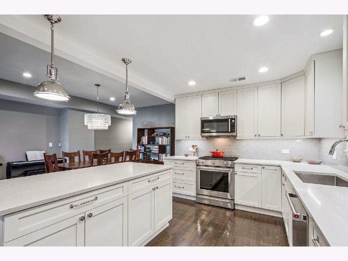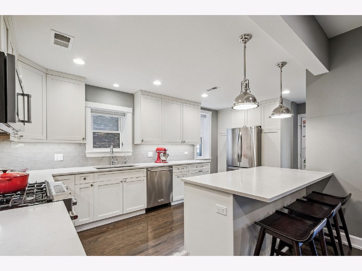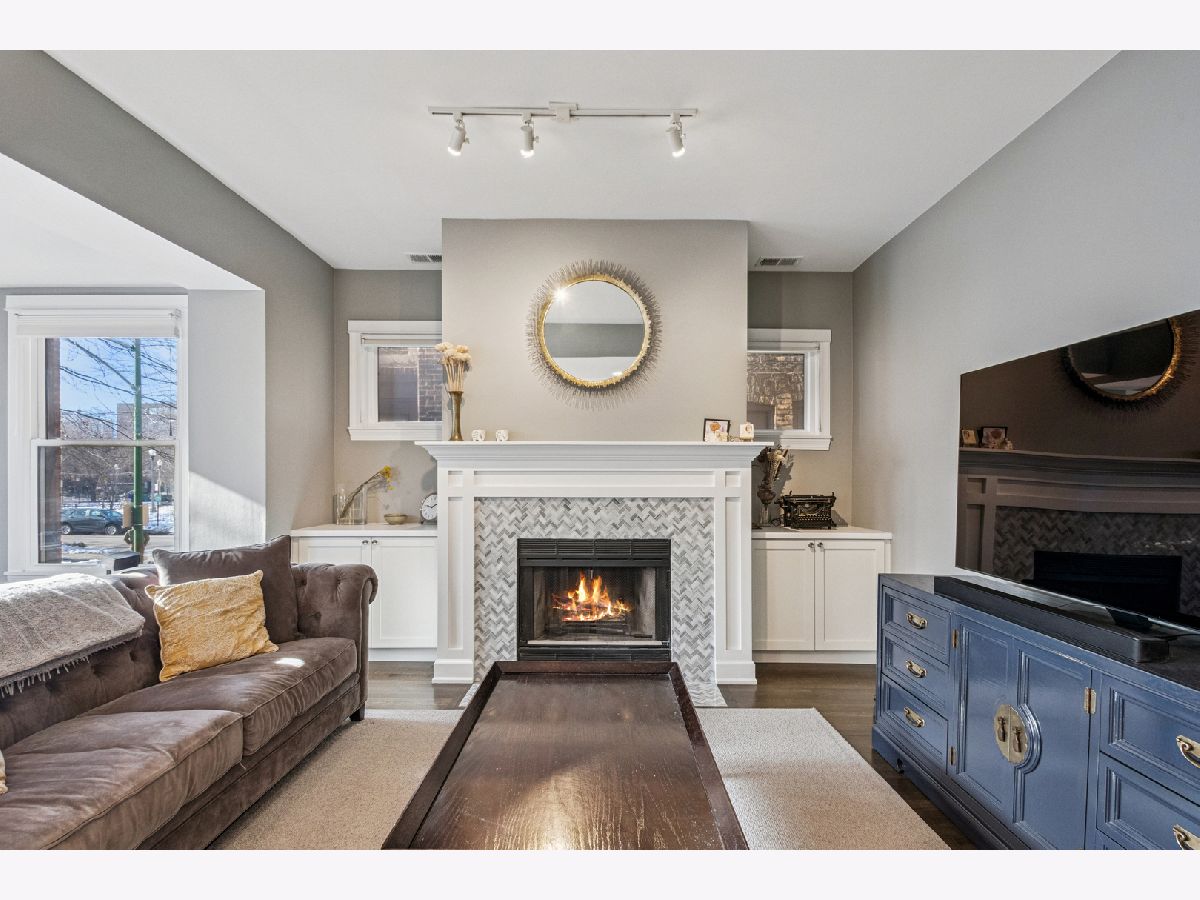 Located on a Gorgeous tree lined quiet cul-de-sac street, this extra-large 2,000 sq. ft. residence offers everything a buyer would want including soaring ceilings, real oak hardwood floors throughout, and a ton of natural light from three exposures. A beautifully remodeled entry foyer sets the tone for this character-filled building. The extra large living room features a working fireplace with beautiful custom surround, mantle, and built-in cabinetry, while a south facing sunroom provides the perfect bright space for a home office. The completely gutted, stunning custom kitchen opens to an expansive family/dining room and features gorgeous quartz countertops, 42-inch custom cabinetry, high-end stainless steel appliances, custom lighting, and access to a private back porch. Three large en-suite bedrooms offer excellent space & privacy. The primary suite includes a large organized walk-in closet and a beautifully renovated bath with a double vanity, seamless glass shower, separate soaking tub, custom tile, and designer lighting. Other features include gorgeous Hardwood refinished floors throughout,custom lighting in every room, large private deck, in-unit washer/dryer, extra storage, central air and includes 1 parking in price. Just steps from Lincoln Park, beaches, running paths, and playgrounds, and only two blocks to the Red Line. Surrounded by restaurants, cafes, and grocery stores. Parking included in an amazing location.