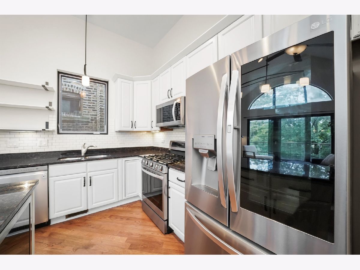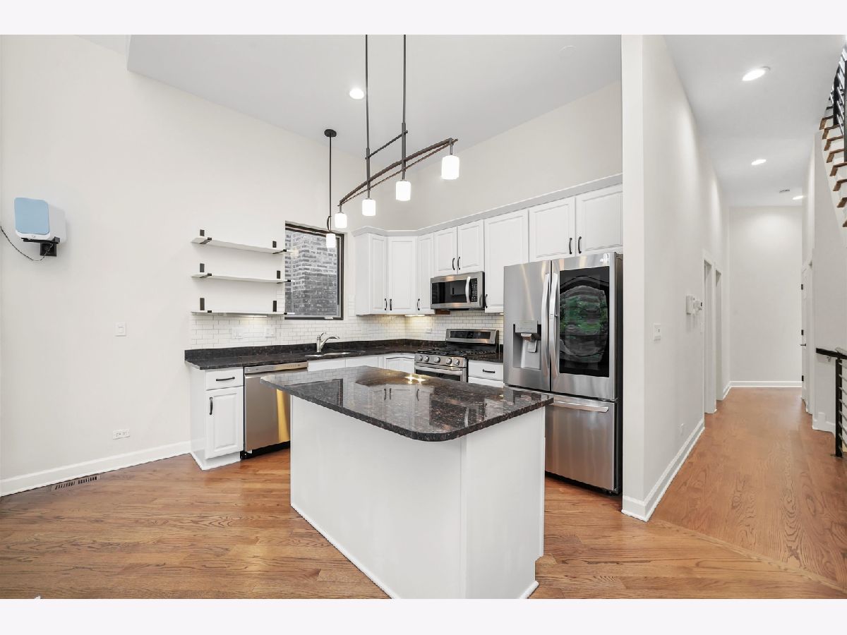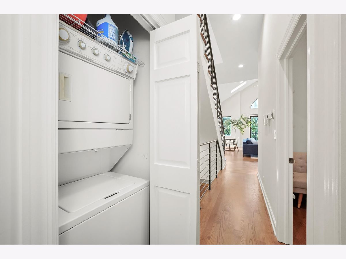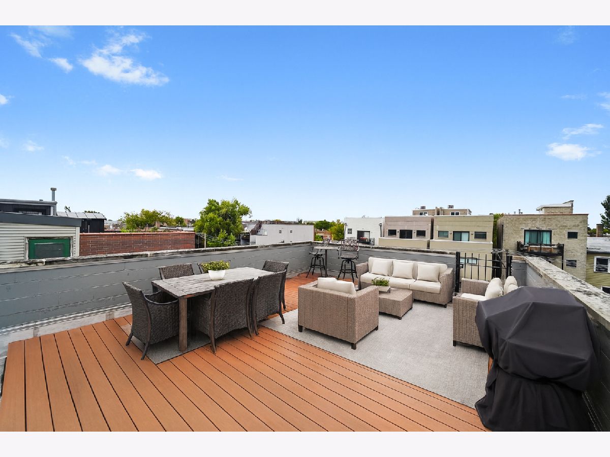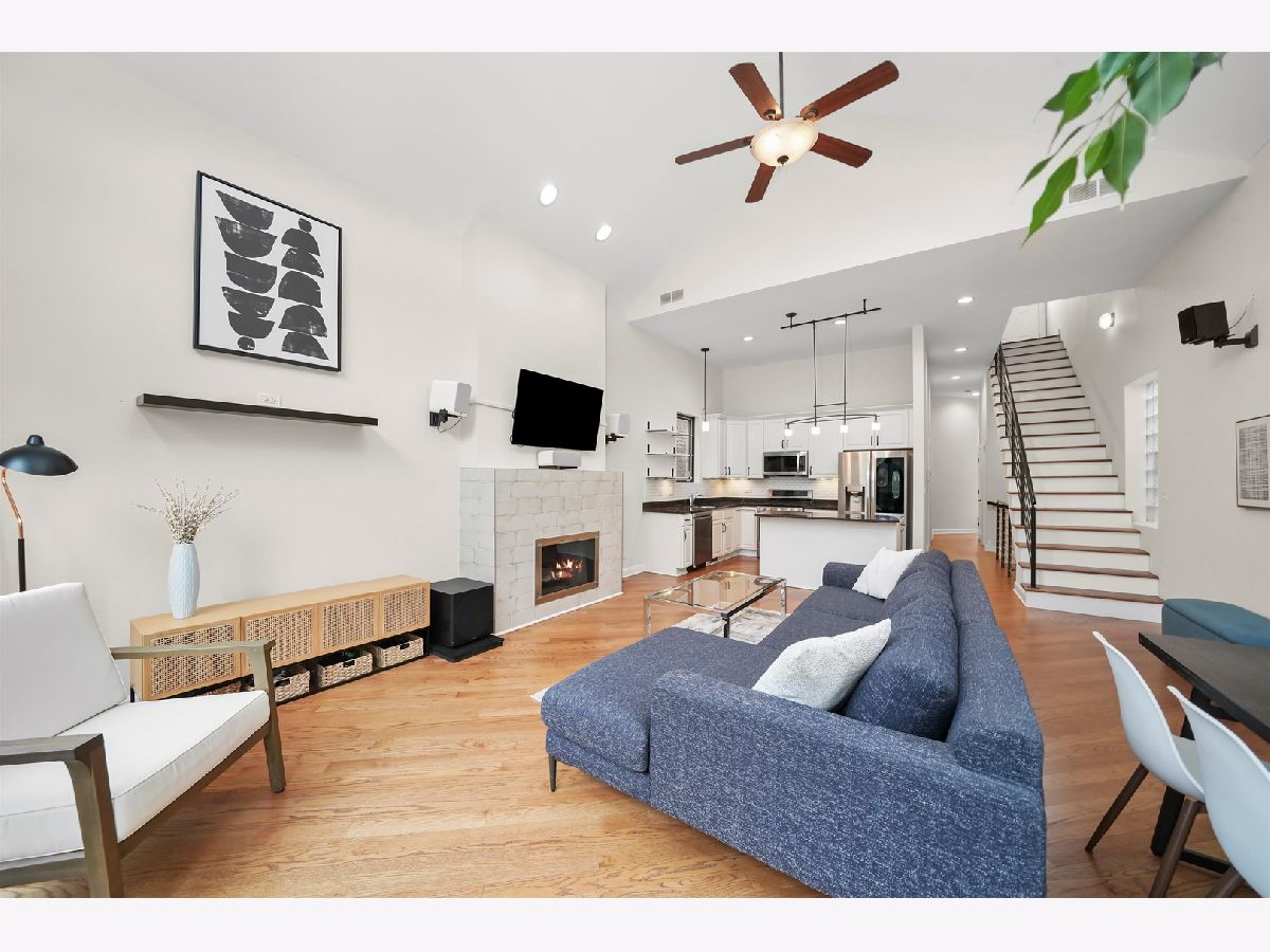 Penthouse 2BD/2BA Condo in the Heart of West Town! Experience contemporary living in this stunning penthouse featuring soaring 11-18 ft cathedral ceilings, skylights, and abundant natural light from every direction - plus your very own private rooftop deck! The open-concept living and dining area showcases a modern gas/wood-burning fireplace, hardwood floors, and built-in sound wiring, perfect for entertaining. The updated kitchen boasts stainless steel LG appliances, a beverage fridge, granite countertops, subway tile backsplash, white cabinetry, and a functional island with seating. The primary suite offers a walk-in closet with custom built-ins, a completely remodeled en suite bath (2019), and direct access to a private deck. The second bath features a jetted tub and heated floors. Additional highlights include in-unit laundry, central air and heat with a smart thermostat, freshly painted interiors, and modern finishes throughout. A dramatic staircase leads to the private rooftop deck with breathtaking skyline views - perfect for relaxing or entertaining. Garage parking and additional storage are included in the price, with easy street parking available on Winchester. Ideally located on a quiet, tree-lined street just steps from Ukrainian Village, Wicker Park, River West, and Noble Square. Low assessments and taxes make this a standout opportunity. Explore the property in 3D - click the 3D button to take a virtual tour and experience every detail!
