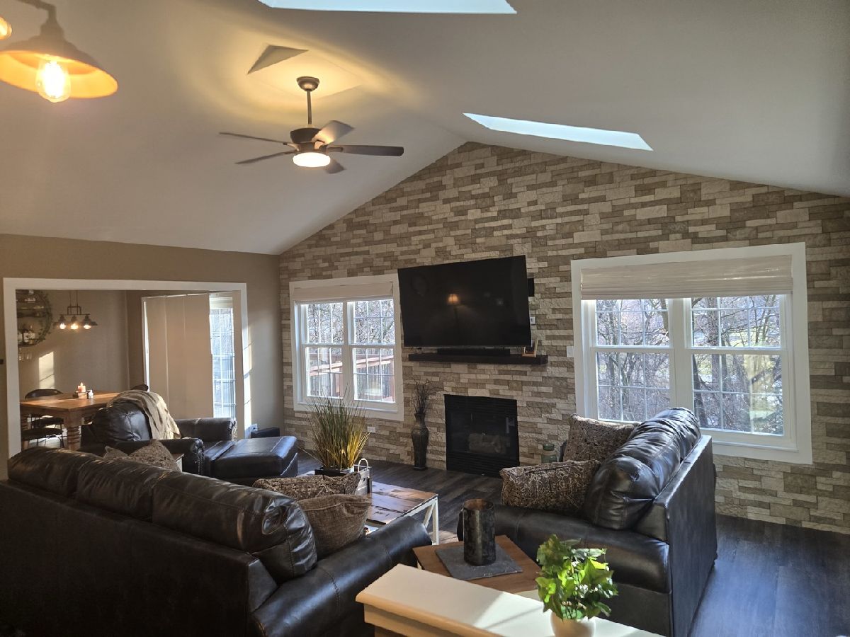 4BR/3BA townhome with walk out basement that backs to private wooded area. Main Level has 2BR/2BA. Walkout Basement has 2BR/1BA. Complete remodel in 2024. 2 Car attached finished garage with canned lighting, epoxy floor and gas heat. Main level Laundry Room features new stainless-steel washer/dryer, slop sink, and cabinet storage. Updated kitchen with crown molding, canned lighting, granite counter tops, new cabinets with accent lighting, all new stainless-steel appliances, pantry and farmhouse sink. Eating area with crown molding and sliding door to new (2025) private deck. Spacious family room with custom stone wall, gas fireplace, vaulted ceiling, skylights and coat closet with motion lighting and shelving unit. Master bedroom with canned lighting, crown molding, ceiling fan, and huge walk-in closet with crown molding and built-in shelving with shoe rack. Master bath with crown molding, shiplap wall, dual vanity, shower, & closet with built-in shelving. Bedroom #2 has vaulted ceiling and closet with built-in shelving unit. Main BA includes new vanity, shiplap wall, crown molding and tub/shower. Walk Out Basement Features include Epoxy flooring, full BA with shower, 3 storage areas and 2 bedrooms. One bedroom features canned lighting and walk-in closet with built-in shelving and is currently used as an office. The other bedroom is currently used as a workout room. Living area with canned lighting, sliding door to new (2025) concrete patio. 3 separate storage areas (one with crawl space), storage shelves/cabinets and a utility room.