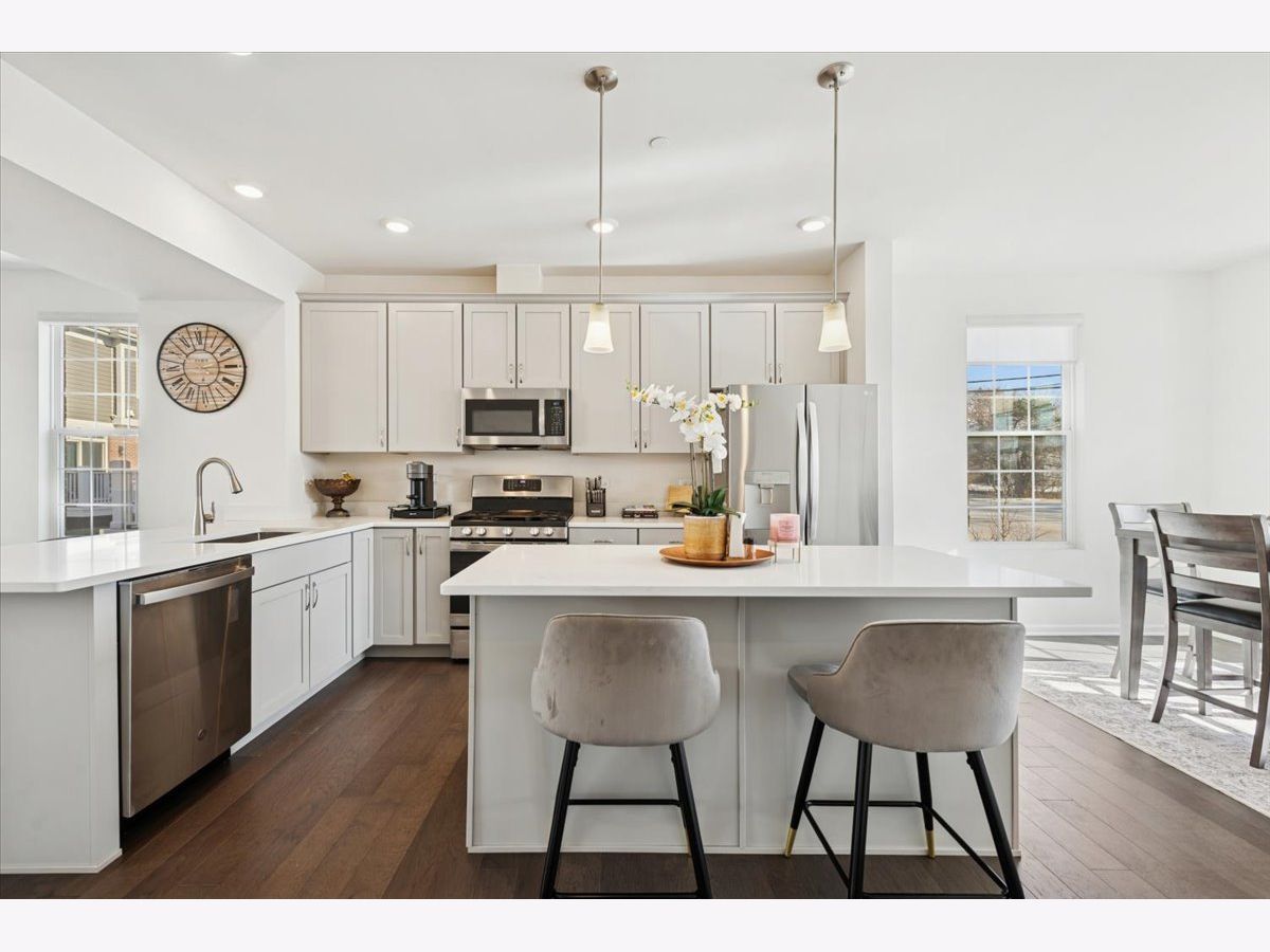 Welcome Home, an opportunity to own a home in this new community in metro east! Nothing quite like this development exists in the immediate area. Fantastic townhome living boasting three levels, two bedrooms, two and a half baths, a huge loft, attached two car garage and incredible open concept living plan + hardwood flooring on the main level. High ceilings on all three levels, 2 large bedrooms w/large closets each with their own bath. This end unit has TONS of natural sunlight from three sides! Gorgeous kitchen featuring 42 inch shaker style cabinets, an island + peninsula overseeing a large living room perfect for entertaining. Kitchen includes quartz countertops + stainless steel appliances, side pantry closet. This home features its own private balcony off main living, spacious hallways, a beautiful staircase and a huge loft perfect for an office or additional family room. "The Foster" is one of the larger floor plans offered. Tasteful design throughout built by M/I Homes, quality construction w/sprinkler system, quality mechanicals. Conveniently located on the north side of town near endless shopping, dining, schools, entertainment, and the Metra.