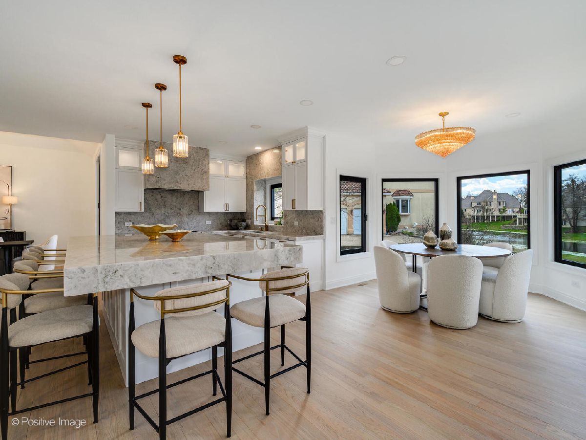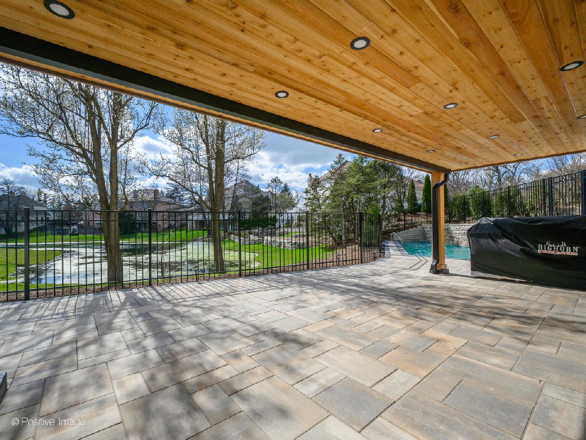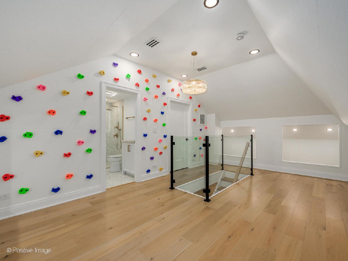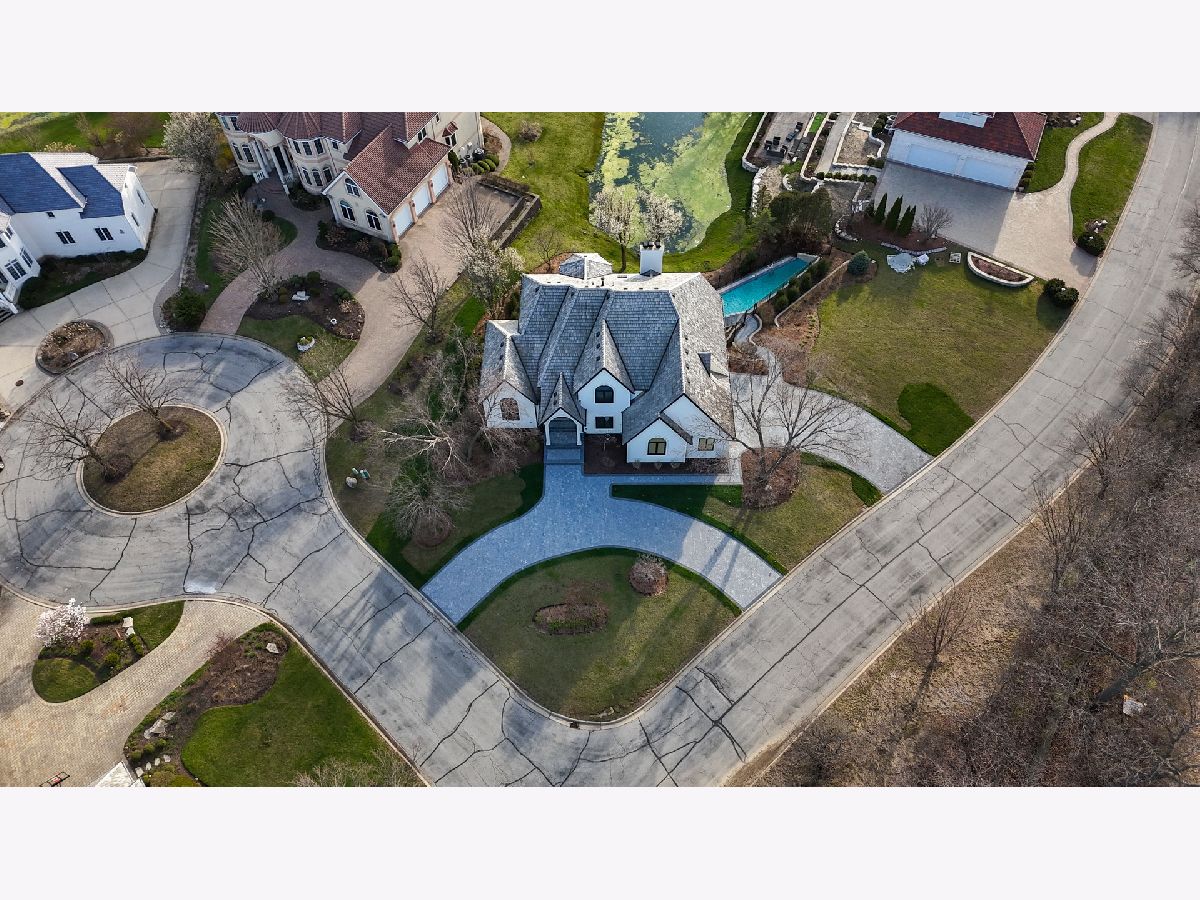 Set within Burr Ridge's prestigious gated community of Falling Waters, this Old World European inspired waterfront estate blends timeless architectural character with luxurious four level living, refined interiors, and serene natural surroundings. Positioned on over half an acre within an exclusive enclave of custom residences designed to preserve the area's natural beauty, the setting is defined by rolling hills, ponds, streams, and mature trees that create a rare sense of privacy and calm. Entering the home, you are greeted by a grand foyer crowned with a massive crystal chandelier. The home opens into a refined kitchen that is appointed with Thermador appliances and anchored by an impressive massive quartzite island, with quartzite carried throughout the rest of the kitchen for a seamless and elevated finish. To the left of the kitchen, the dining room and lounge area offer a beautiful setting enhanced by architectural beams and vaulted ceilings. This level includes an additional bedroom and a full bathroom, offering flexibility for guests or a private office arrangement. The second floor is a true serenity retreat. The primary suite offers a luxurious private escape, complete with two walk in closets and a grand ensuite bathroom. Three additional generously sized bedrooms and two full bathrooms complete this level, providing both space and privacy with a thoughtful layout. Up the structural staircase, you will find one of the home's most magical spaces, a fully finished attic with a full bathroom and a distinct playroom feel. Enhanced by decorative climbing holds and filled with charm, this level offers a whimsical yet functional retreat that can serve as a creative lounge, play space, hideaway, or flex room unlike anything else in the home. The crown jewel of the home is the expansive entertaining level below. The fully finished walk out lower level is designed to impress, featuring an open lounge room, a show stopping wet bar, a temperature controlled wine room with stunning red brick detail, an additional guest bedroom, two full bathrooms, a private movie room, a Himalayan salt sauna, and a gas fireplace that adds warmth and ambiance. With direct walk out access to the home's private outdoor retreat, beautifully landscaped backyard where the in ground pool becomes the true focal point, all set against tranquil water views. Additional highlights include all bathrooms finished with marble tile and heated floors, two laundry areas including one full laundry room and one additional laundry closet, and a heated three car garage equipped for EV charging. This is a rare opportunity to own a truly distinctive waterfront estate in one of Burr Ridge's most sought after gated communities.