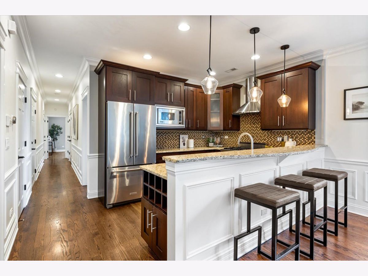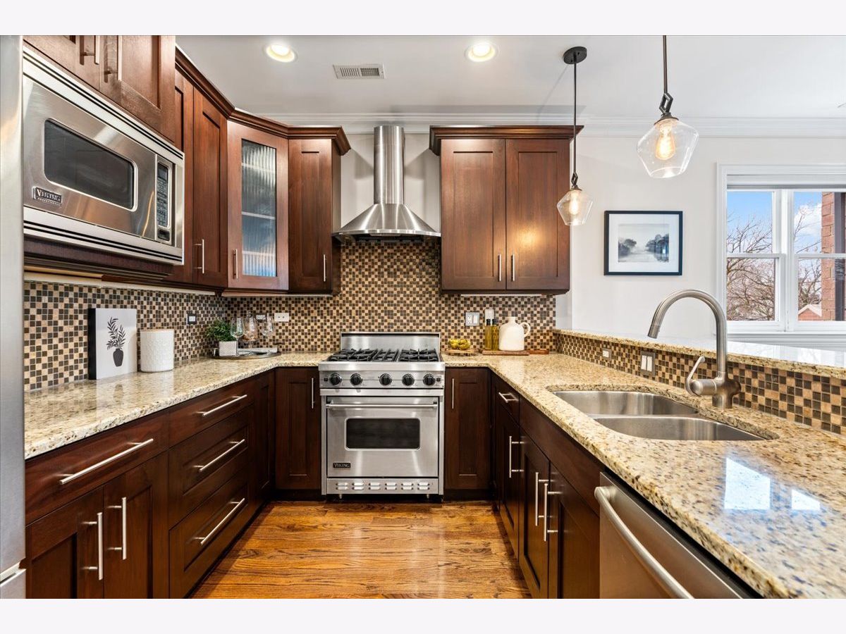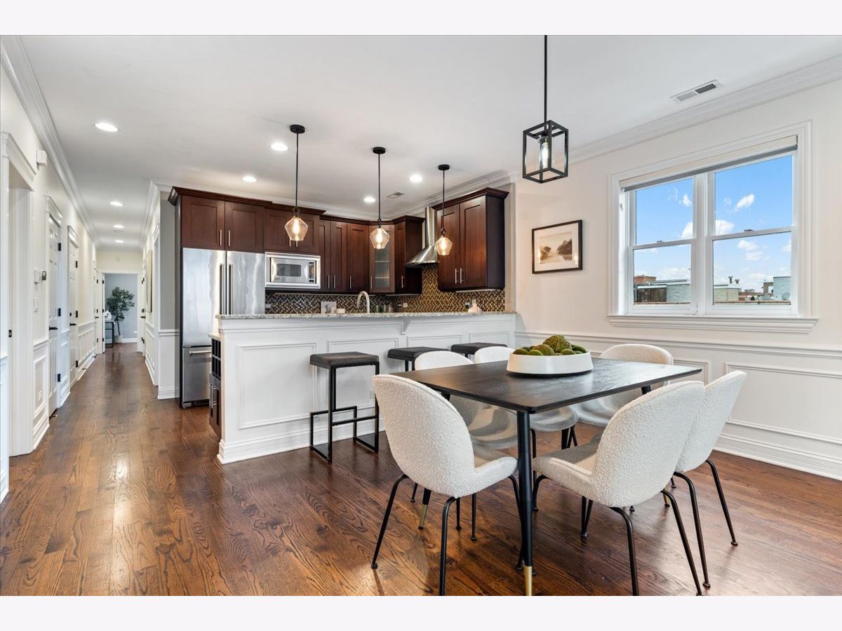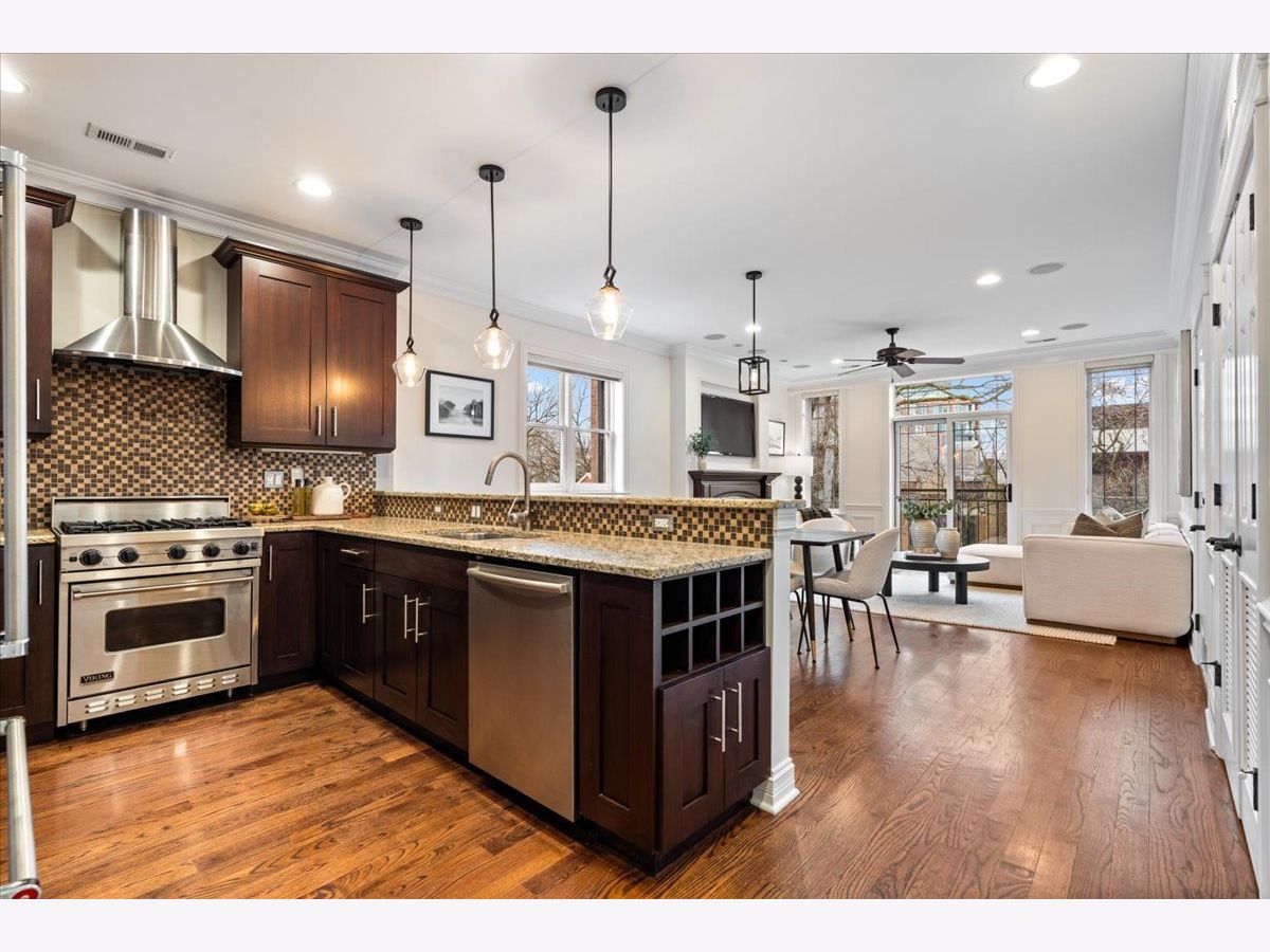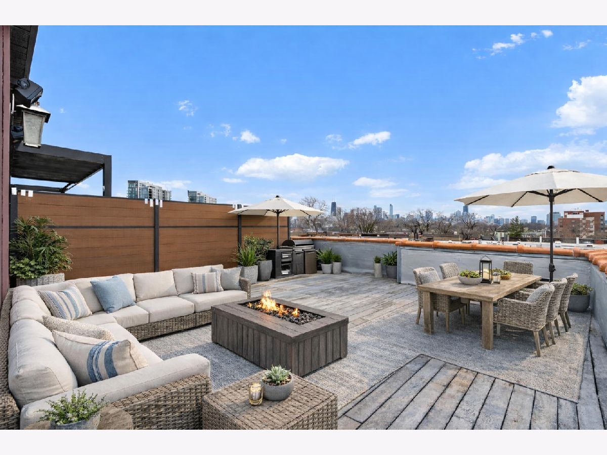 Welcome to this beautifully appointed 2-bedroom, 2-bath PRIVATE ROOFTOP residence featuring a notably wide layout in the heart of Lincoln Park, offering exceptional indoor and outdoor living in an intimate 8-unit boutique building with heated garage parking, dedicated storage, and a newer roof (2020). This thoughtfully designed home features hardwood flooring throughout, custom millwork, and a bright, inviting living room with a Juliet balcony and wood-burning fireplace. The spacious kitchen is equipped with Viking stainless steel appliances, ample cabinetry, and a dedicated dining area ideal for everyday living and entertaining. The primary suite offers a generous walk-in closet, spa-like bath with dual vanity, soaking tub, and separate shower, along with access to a private back deck. A second generously sized bedroom, additional full bath, wet bar, and in-unit laundry closet complete the interior. Outdoor living shines with two private spaces, including a back deck and an expansive private rooftop deck perfect for entertaining or relaxing above the city. The rooftop also features a charming doghouse structure with a wet bar, beverage center, and sink - ideal for rooftop entertaining - or easily converted into a built-in desk area for a private work-from-home space. Additional highlights include heated garage parking, storage, and a heated driveway. Ideally located within the Oscar Mayer Elementary and Lincoln Park High School districts, and just steps to the shops, dining, and nightlife of Lincoln Avenue and Webster Avenue, with Jonquil Park and Trebes Park nearby.