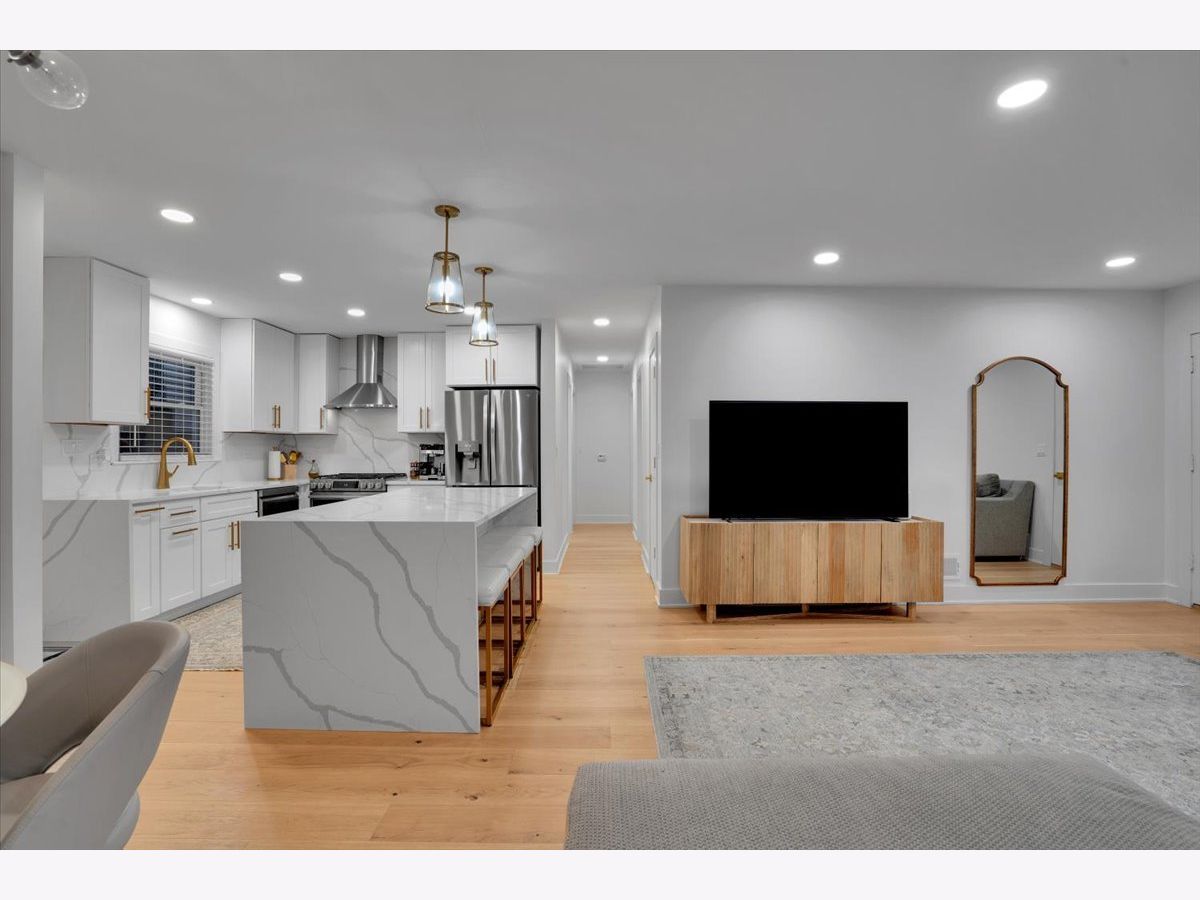 LOCATION, LOCATION, LOCATION !!! BRIGHT MODERN AESTHETIC STUNNINGLY RENOVATED ALL-BRICK RANCH GEORGIOUS KITCHEN ELEGANT NEW PRE-FINISHED HARDWOOD FLOORS, NEW SUBFLOOR AS WELL BEAUTIFULLY UPDATED 2 BATHROOMS BEAUTIFULLY UPDATED OPEN FLOOR KITCHEN QUARTZ COUNTERTOPS, ISLAND AND BACKSPLASH SLEEK WHITE SHAKER CABINETS IN BASEMENT LUXURY VINYL FLOORS AND A GORGEOUS FIREPLACES NEW HITTING AND COOLING LENOX SYSTEM WITH HUMIDIFIER AND AC NEW SUMP PUMP NEW WINDOWS IN THE WHOLE HOUSE THE LIVING ROOM HAS A BIG PICTURE WINDOW ALL CUSTOM NEW WOOD DOORS CAN LIGHTS IN THE WHOLE HOUSE NEW PLUMBING, COPPER PIPES Heated floors in 1 bathroom Shut down from the bathroom upstairs to the laundry room in the basement 2 1/2 CAR GARAGE FRESHLY PAINTED IN 2025 BIG BACKYARD DRIVE WAY CAN FIT UP TO 8 CARS + THE 2 1/2 CAR GARAGE + PARKING ON THE STREET AVAILABLE SEMI CUL-DE -SAC PROPERTY IS BEING SOLD AS-IS This stunningly renovated, all-brick ranch in desirable Morton Grove, IL, offers an incredible opportunity with a 4-bedroom, 2-bathroom layout.