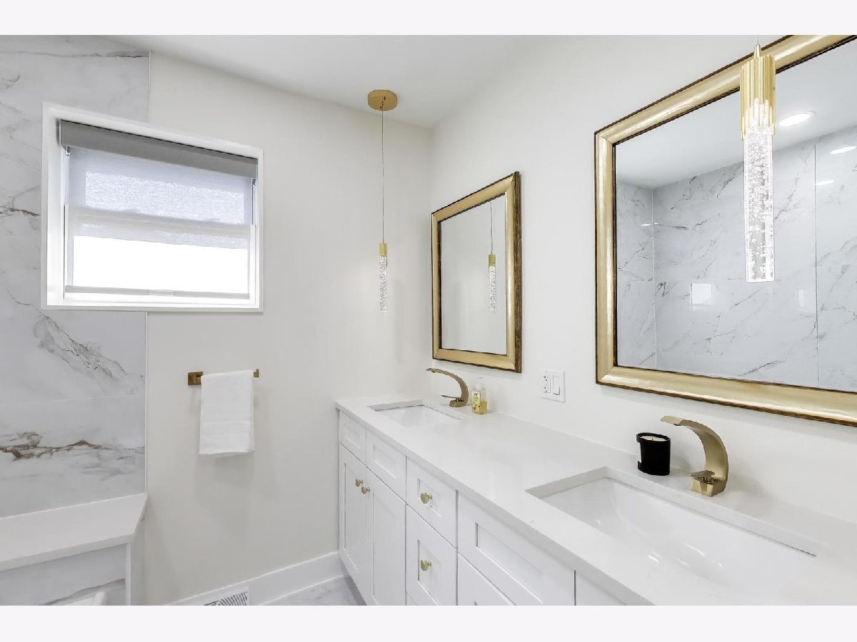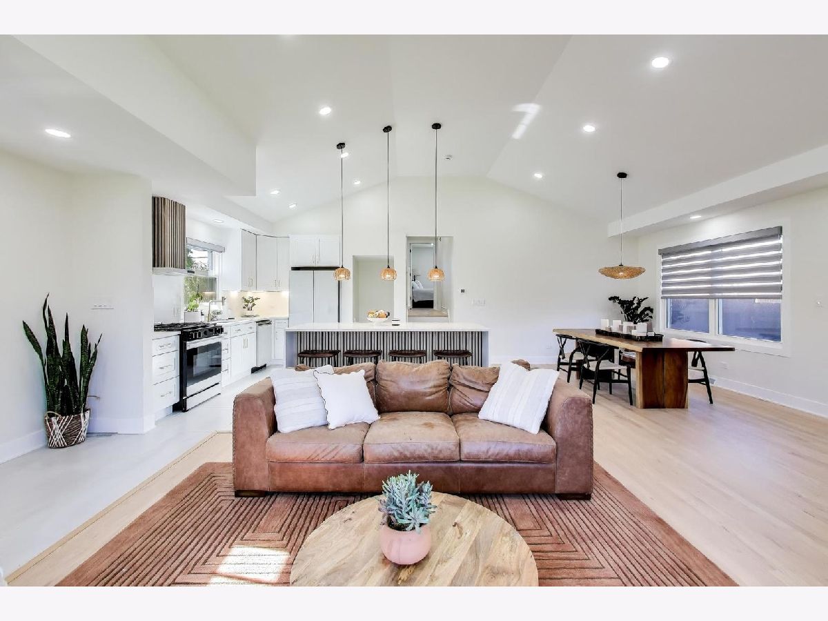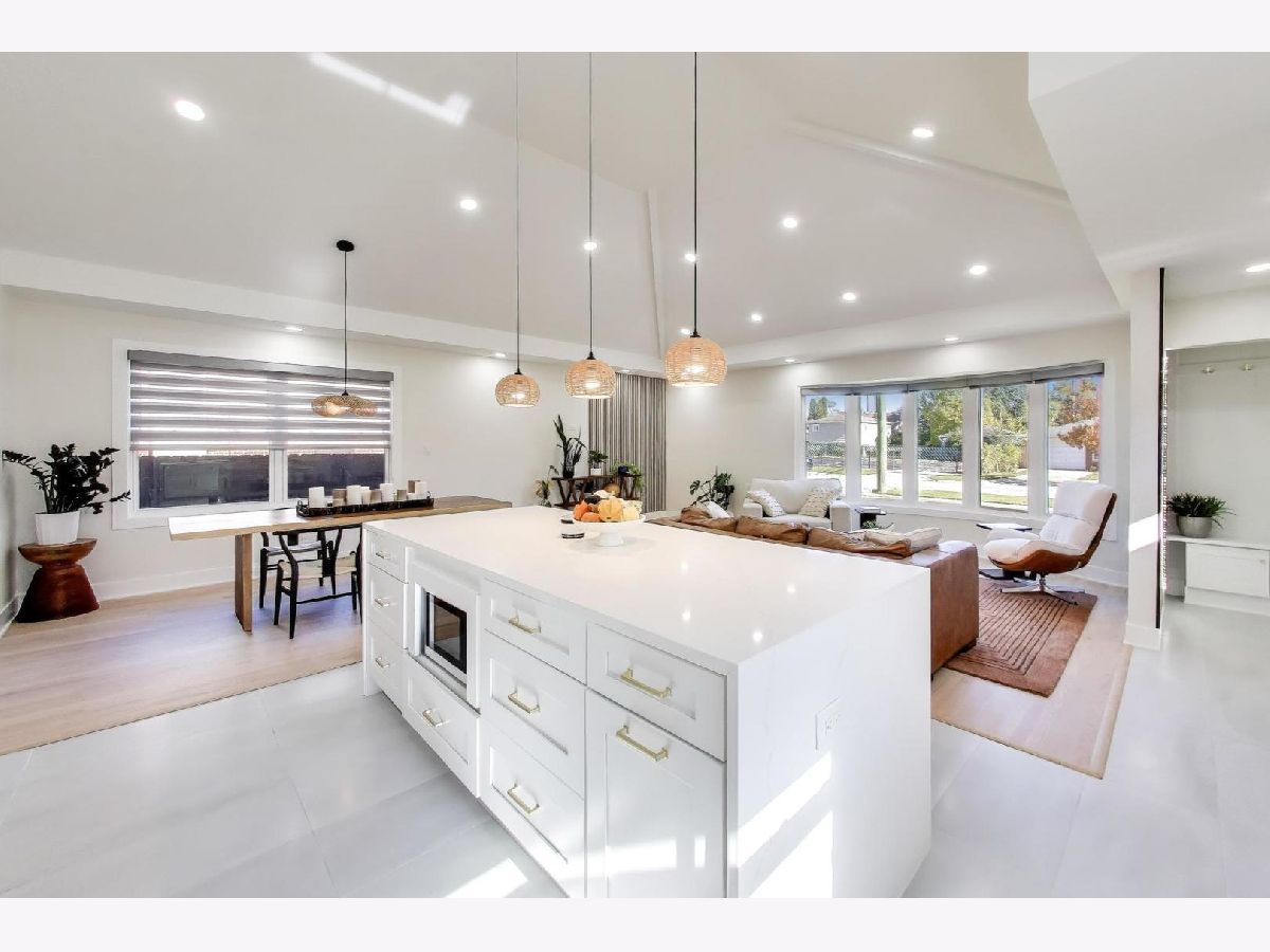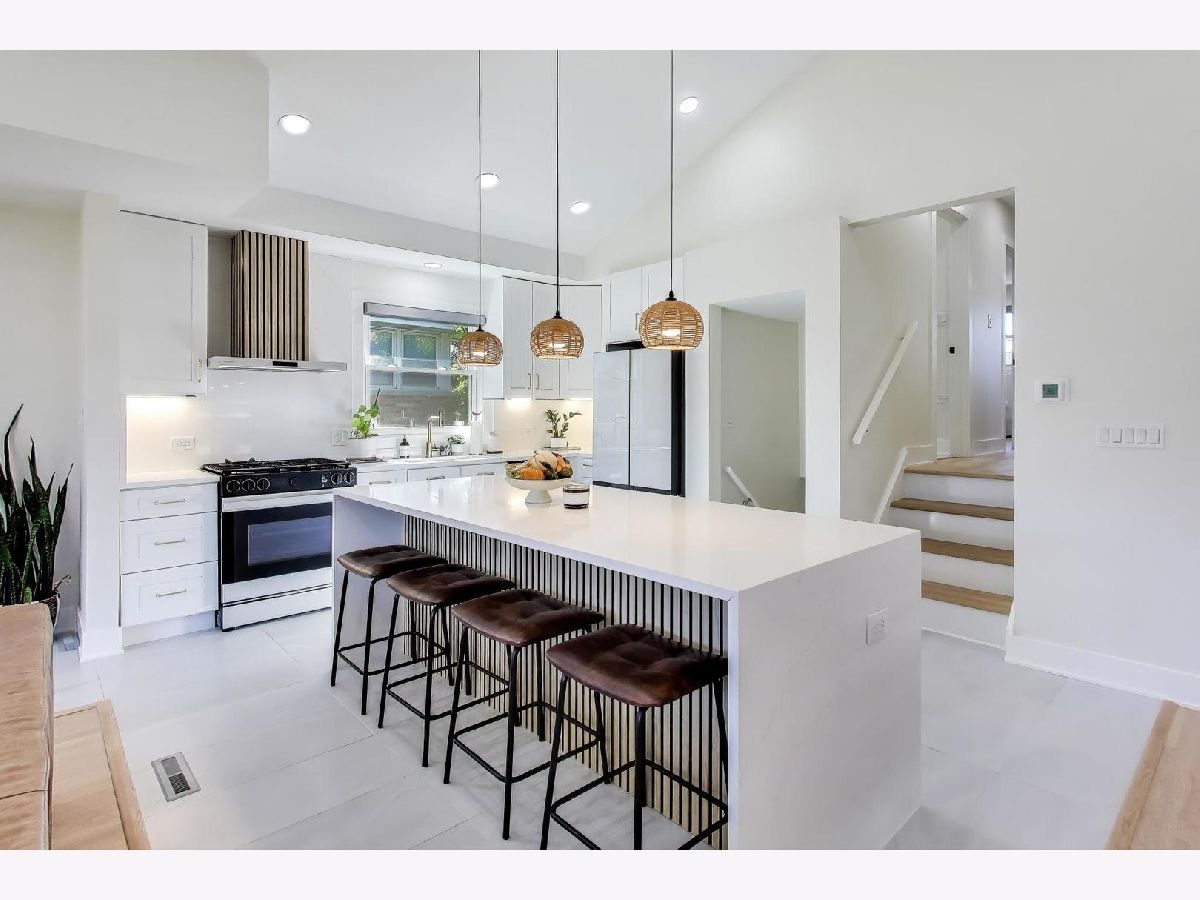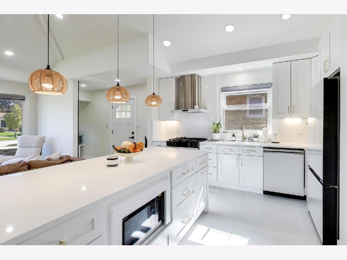 Bigger than it looks! Stylishly Updated 2,700sq ft Split Level w/ Sub Basement near Woodland Park! Open Concept Living at its finest begins in the Foyer w/ Sleek Accent Wall, Bench & Cubbies that open to the Living / Dining Room with Hardwood Flooring, Vaulted Ceilings & Endless Recessed Lighting that bring all spaces into one. The Kitchen is a showstopper offering 42" White Shaker Cabinetry, Quartz Counter Tops & Backsplash, Gold Hardware & Fixtures, Samsung Bespoke Kitchen Package, Porcelain Tile Floors and massive Waterfall Island ideal for Entertaining. The Primary Bedroom offers double closets with private ensuite sectioned by frosted glass. White Shaker Vanity, Quartz Counter Tops, Stand-Up Rain Shower with Gold Fixtures, Hardware, and Pendant Light round out the room. 2nd & 3rd Bedrooms include ample closets that share the Fully Upgraded Hall Bath with a Double-Vanity, Quartz Counter Top, White Tub, Gold Fixtures and Porcelain Tile carried throughout. Trekking down to the Family Room- the huge room includes an Electric Fireplace with navy Herringbone Shiplap Design, Wet Bar w/ Quartz Counter Top, Beverage Cooler, Recessed Lighting Back Yard / Garage Access with a Walk-Out Door plus a Full-Sized Bath that's impeccably designed for guest use. 4th Bedroom can easily be added as well. Rounding out the Floorplan is the Sub-Basement that includes extra space for any use: Play Room, Rec Room, In-Home Gym, Study, etc. Luxury Vinyl Plank Floors, Black Exposed Ceilings, Can Lights and the Laundry Room that houses the Samsung Front Loader Washer & Dryer and a Utility Sink. 2-Car Detached Garage, Private Fenced Yard, and Patio Area complete the property. Minutes to Woodland Park with Soccer, Pickleball, Basketball Courts plus impeccable School Districts just blocks from Franklin & Emerson Schools. 5 min drive to Downtown Park Ridge / choice of 2 Metra Stops, and Highway Access! Nothing to do but move in!