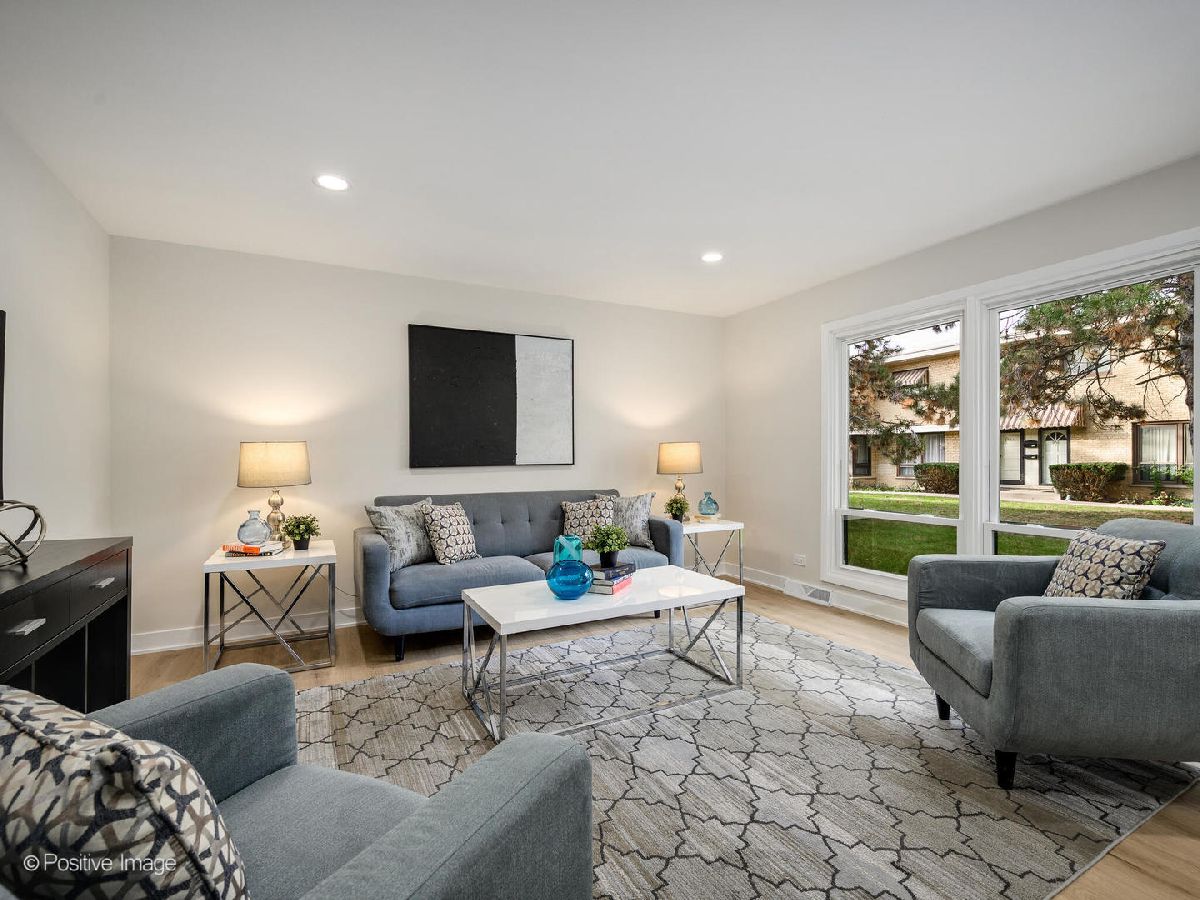 Attractive brick and stone facade 3 bed, 1.1 bath, 2-story end unit townhome with full finished basement in the heart of Mount Prospect. This property has been lovingly transformed into a place you'll love to call home! Stunning eat-in kitchen with new cabinetry, quartz counters, ss appliances, custom tiled backsplash and new contemporary flooring. Sliders off the kitchen lead to a private fully fenced deck that's perfect for entertaining. Renovated powder room and a spacious living room with hardwood flooring and custom feature wall complete the main level. Upstairs are 3 sizeable bedrooms all with ample closets and refinished hardwood flooring and an amazing full bath with high end finishes. The full basement has a massive rec room, storage and a laundry room. New flooring, cabinets/vanities, appliances, lighting and paint. 2 exterior parking spaces. Situated near shopping, dining, Randhurst, and the Metra. Low HOA and well rated Arlington Heights schools.