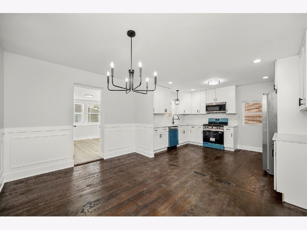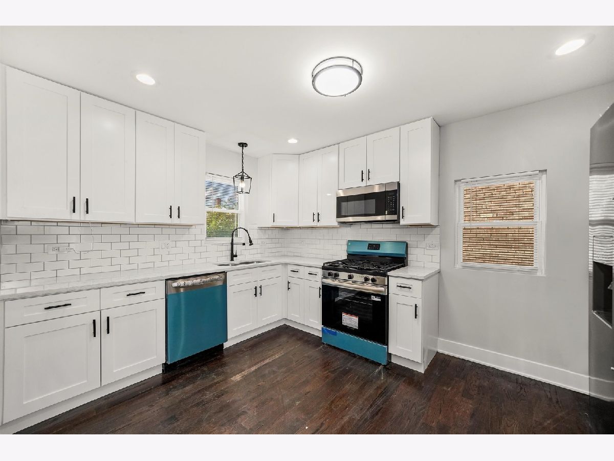 Discover this beautifully updated home, located on a quiet, tree-lined street in Chicago. This charming brick georgian combines classic character with modern upgrades throughout. Step inside to find a spacious living area filled with natural light and LED can lights, shiplap detail wall with fireplace complemented by gleaming hardwood floors and fresh, neutral paint. The updated kitchen features, quartz countertops, subway tile backsplash, white shaker cabinets with crown molding & ample storage space, ideal for cooking and entertaining. The home offers generous sized bedrooms with plenty of closet space and a first floor bedroom as well as a fully updated bathroom with stylish finishes. A finished basement adds extra space for recreation, an office, or a guest suite and a 2nd full bath. The backyard is perfect for gatherings, complete with a fenced in yard and room for a garden or outdoor seating area. This property also includes a 2 car detached garage for convenience. Welcome Home!