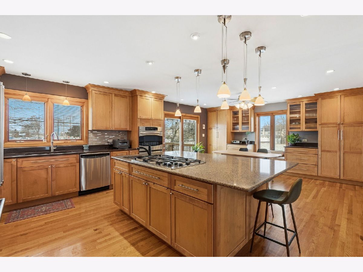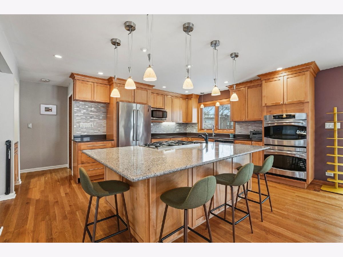 This meticulously maintained four-bedroom home has been thoughtfully updated and lovingly cared for over the years. Tucked away on a quiet cul-de-sac in highly desirable School District 63, the home is larger than it appears from the street and offers a surprisingly spacious layout. The heart of the home is the beautifully designed kitchen, created with both everyday living and entertaining in mind. A standout oversized island anchors the space, complemented by abundant storage, a double oven, and an easy flow for cooking, gathering, and connecting with loved ones. Three bedrooms are located on the upper level, with a fourth bedroom in the lower level. Both full bathrooms are upstairs and have been fully renovated with a fresh, clean, modern feel. Solid oak hardwood floors and solid oak doors throughout, along with Pella windows and sliding doors, reflect the quality and care found at every turn. This property features both a basement and a true sub-basement, offering exceptional flexibility and storage. Major improvements include a new roof in 2018, new Maytag Washer and Dryer in 2025, new hardwood floor in the upstairs bedrooms also in 2025, and a Generac whole-home generator, ensuring peace of mind during power outages. Enjoy convenient access to the many amenities of the Morton Grove Park District, including 14 local parks, recreation centers, and year-round activities such as pickleball and outdoor sports. Ideally located near I-94 and I-294, commuting is effortless. Truly move-in ready.