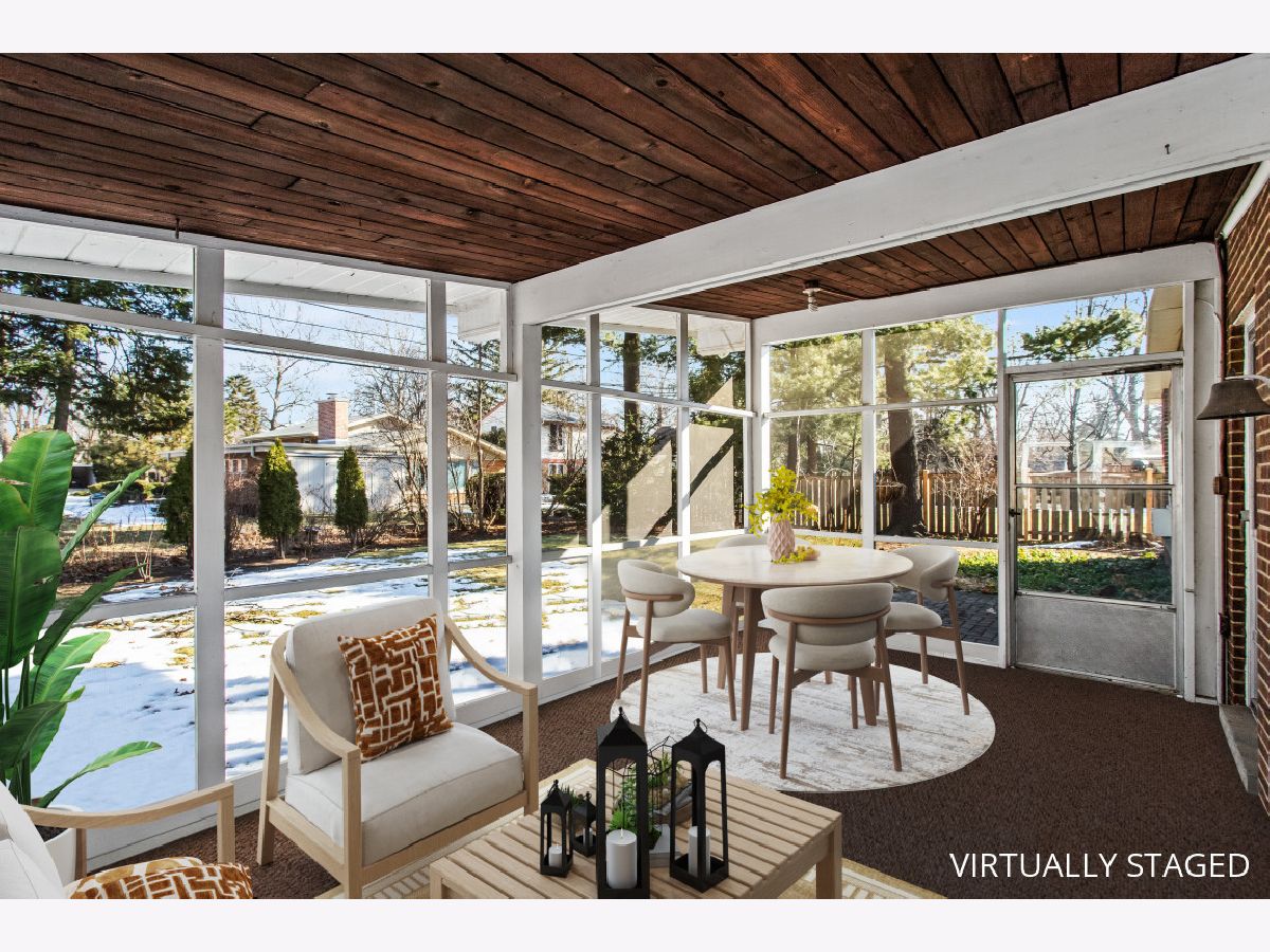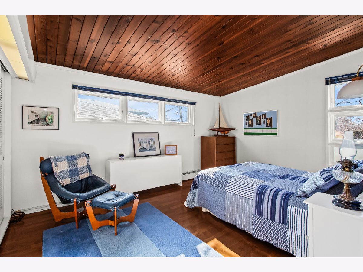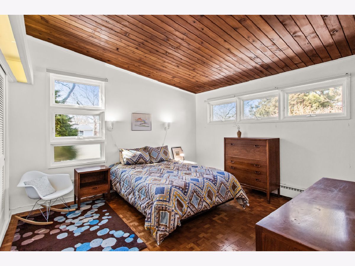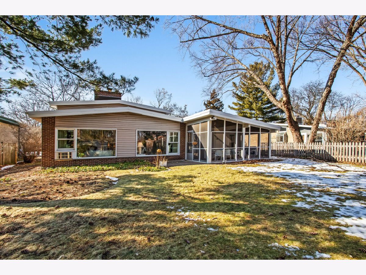 This one-of-a-kind, mid-century modern-inspired home is located in the coveted Skevanston area and offers a truly unique layout and feel. The main living space features vaulted ceilings and a fireplace with exposed brick, creating a warm, architectural focal point. The living and dining areas offer expansive views of the large, private backyard and provide direct access to a beautiful screened-in porch - perfect for relaxing or entertaining. Just beyond, you'll find a sun-drenched family room that flows into the kitchen, complete with a breakfast bar and ample storage. The kitchen leads to a spacious laundry room with flexible potential to be reimagined as a combined laundry/office space, workshop, or additional storage area. The upper level features a primary bedroom with its own full bath, plus two additional bedrooms and an updated hall bath. All bedrooms offer charming exposed wood ceilings, adding to the home's mid-century character. The home also includes a one-car garage.