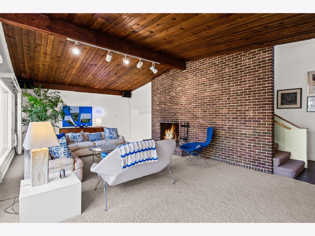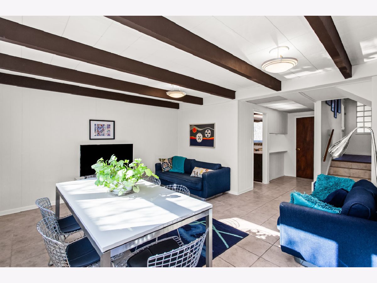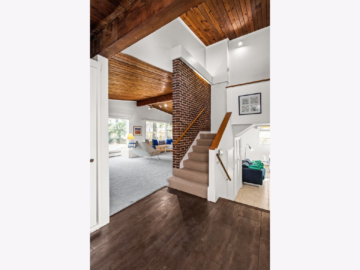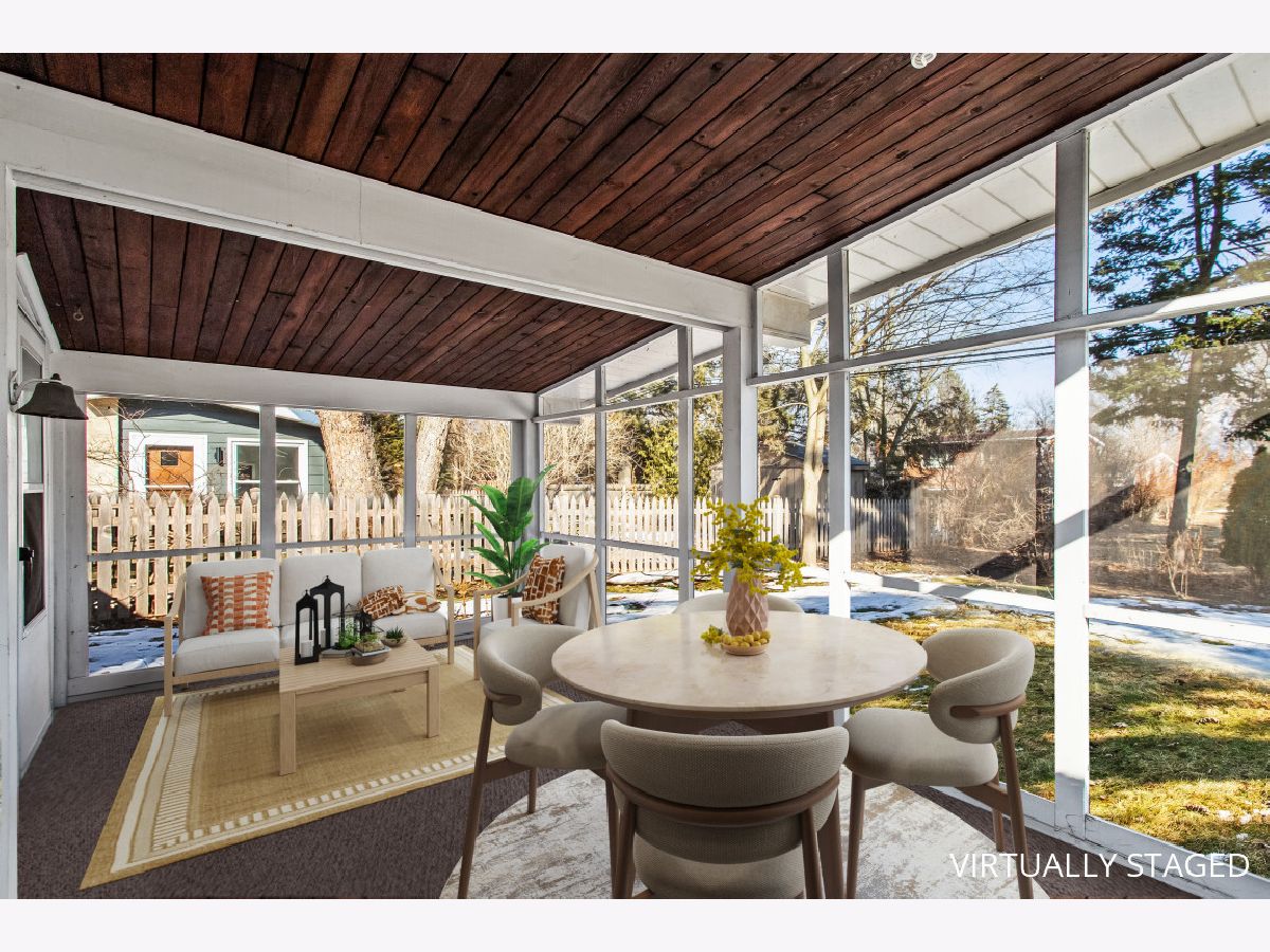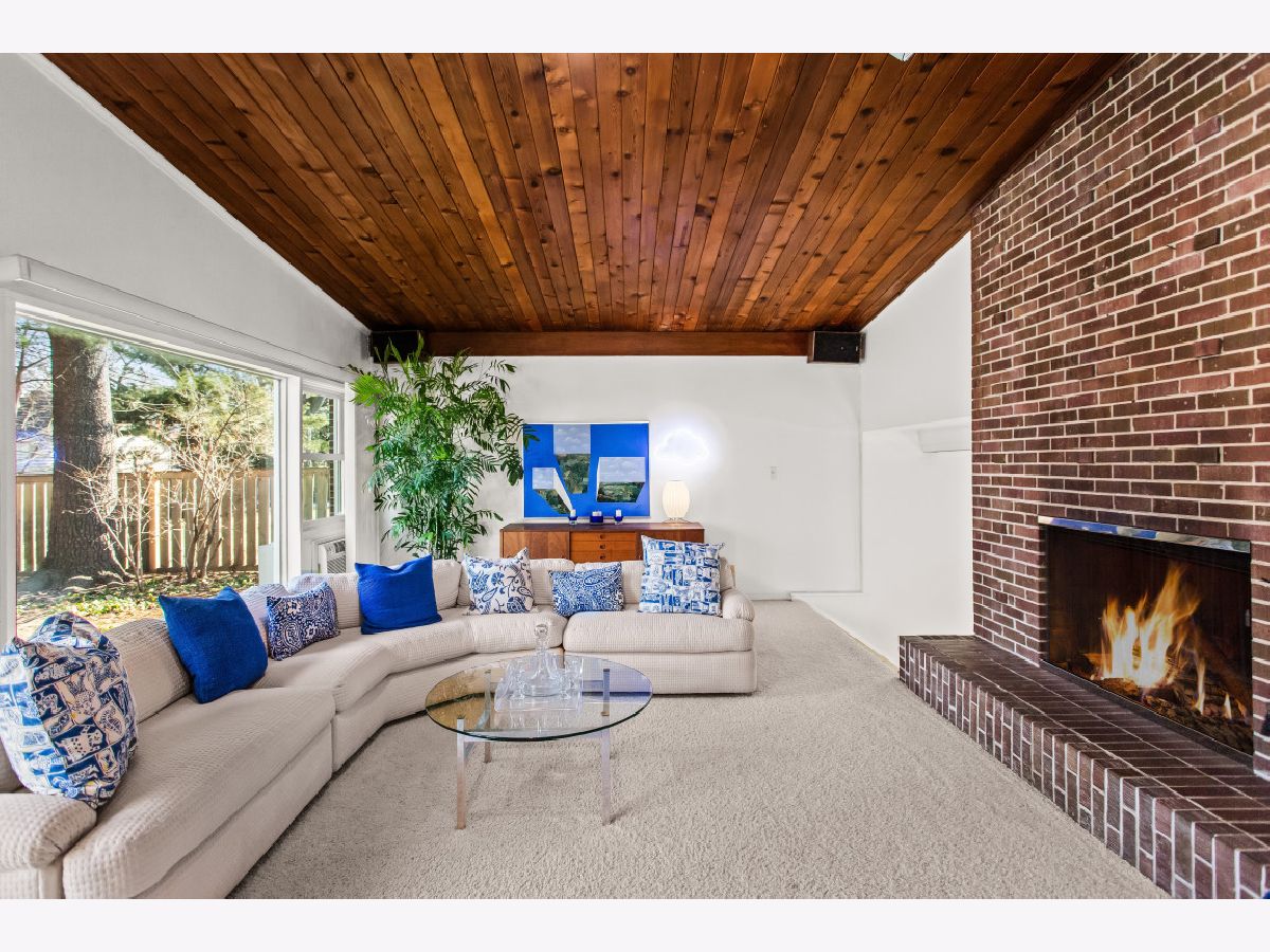 This one-of-a-kind, mid-century modern-inspired home is located in the coveted Skevanston area and offers a truly unique layout and feel. The main living space features vaulted ceilings and a fireplace with exposed brick, creating a warm, architectural focal point. The living and dining areas offer expansive views of the large, private backyard and provide direct access to a beautiful screened-in porch - perfect for relaxing or entertaining. Just beyond, you'll find a sun-drenched family room that flows into the kitchen, complete with a breakfast bar and ample storage. The kitchen leads to a spacious laundry room with flexible potential to be reimagined as a combined laundry/office space, workshop, or additional storage area. The upper level features a primary bedroom with its own full bath, plus two additional bedrooms and an updated hall bath. All bedrooms offer charming exposed wood ceilings, adding to the home's mid-century character. The home also includes a one-car garage.