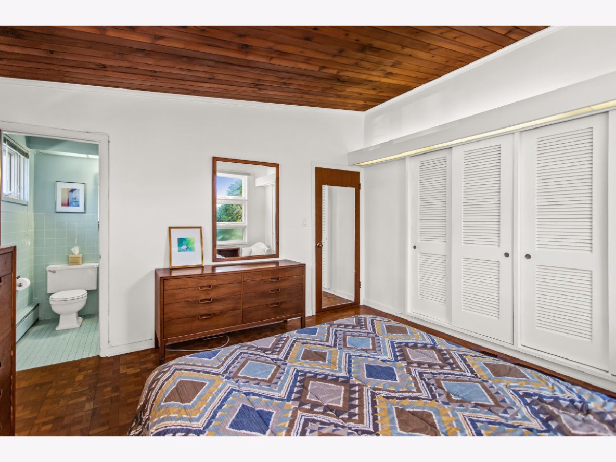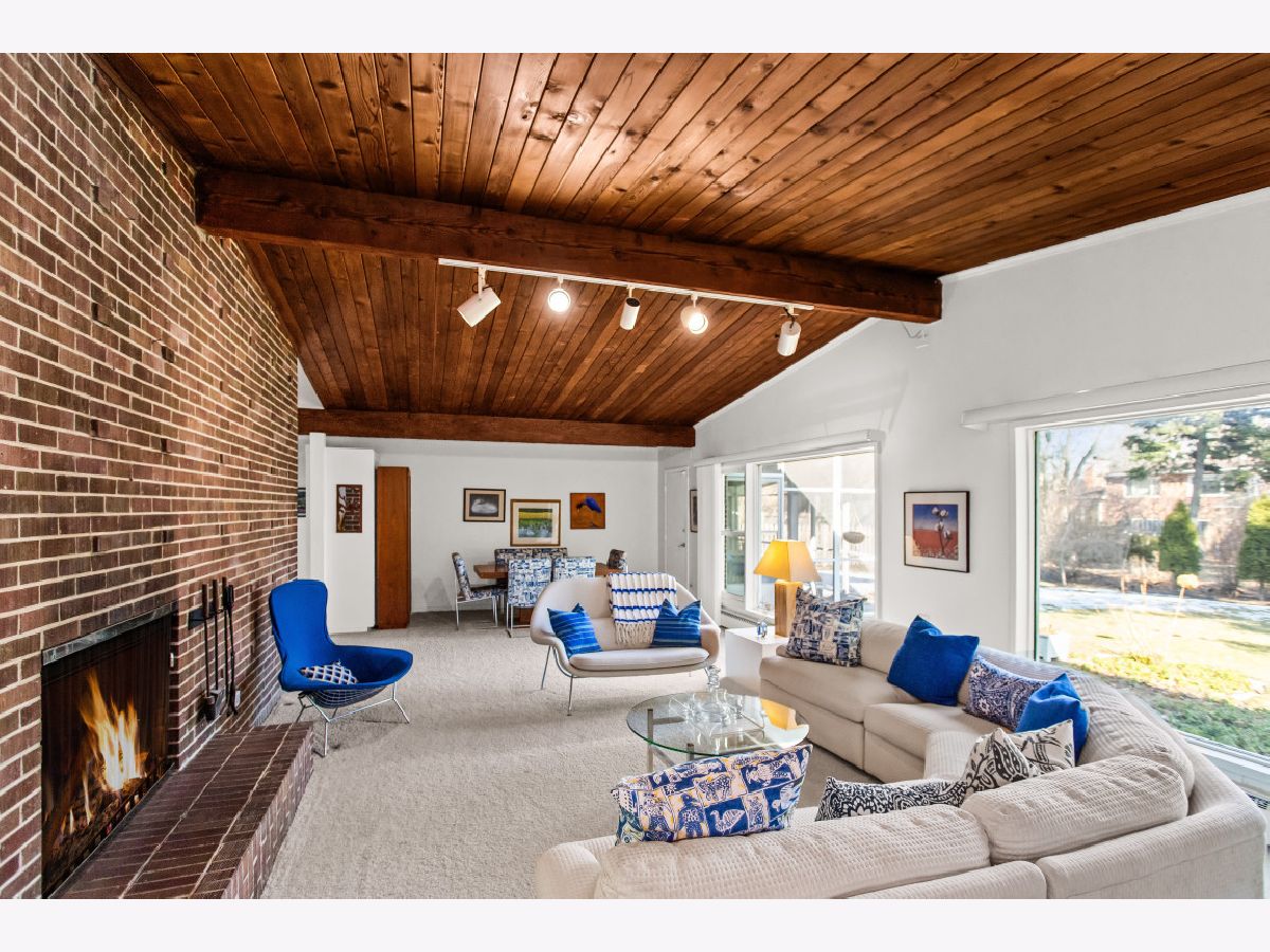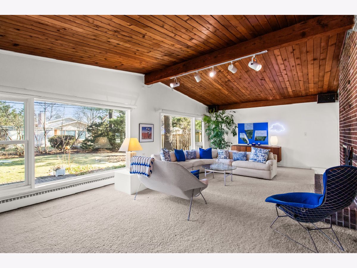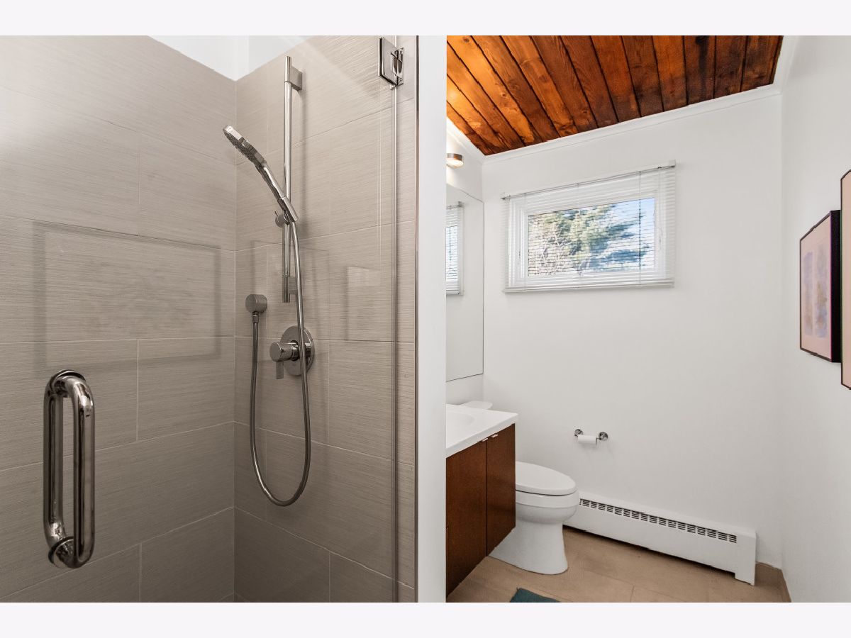 This one-of-a-kind, mid-century modern-inspired home is located in the coveted Skevanston area and offers a truly unique layout and feel. The main living space features vaulted ceilings and a fireplace with exposed brick, creating a warm, architectural focal point. The living and dining areas offer expansive views of the large, private backyard and provide direct access to a beautiful screened-in porch - perfect for relaxing or entertaining. Just beyond, you'll find a sun-drenched family room that flows into the kitchen, complete with a breakfast bar and ample storage. The kitchen leads to a spacious laundry room with flexible potential to be reimagined as a combined laundry/office space, workshop, or additional storage area. The upper level features a primary bedroom with its own full bath, plus two additional bedrooms and an updated hall bath. All bedrooms offer charming exposed wood ceilings, adding to the home's mid-century character. The home also includes a one-car garage.