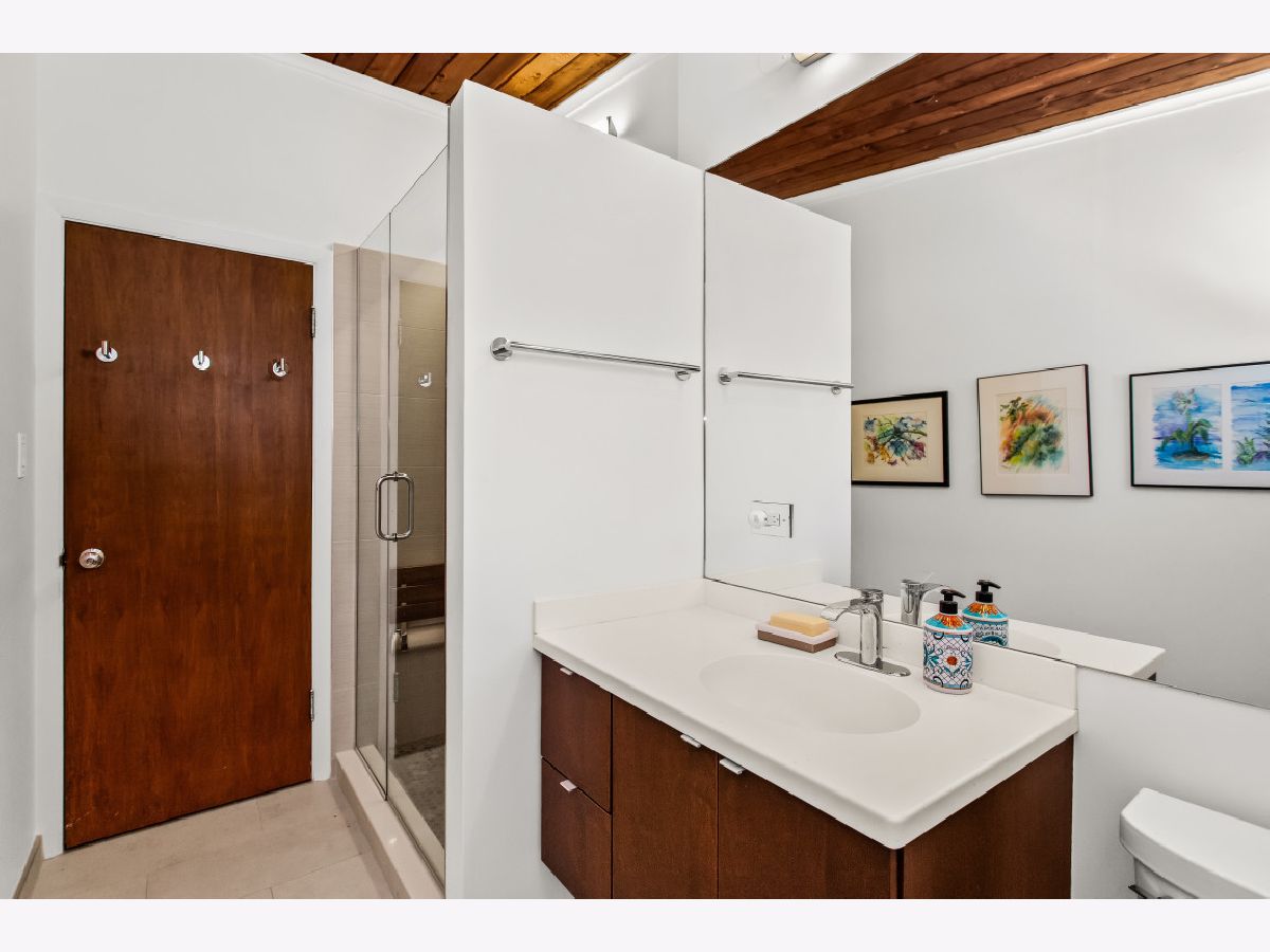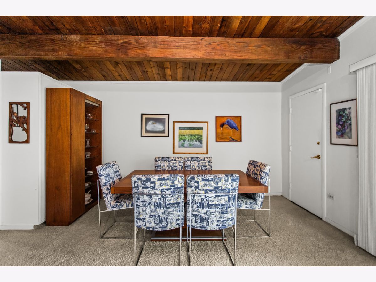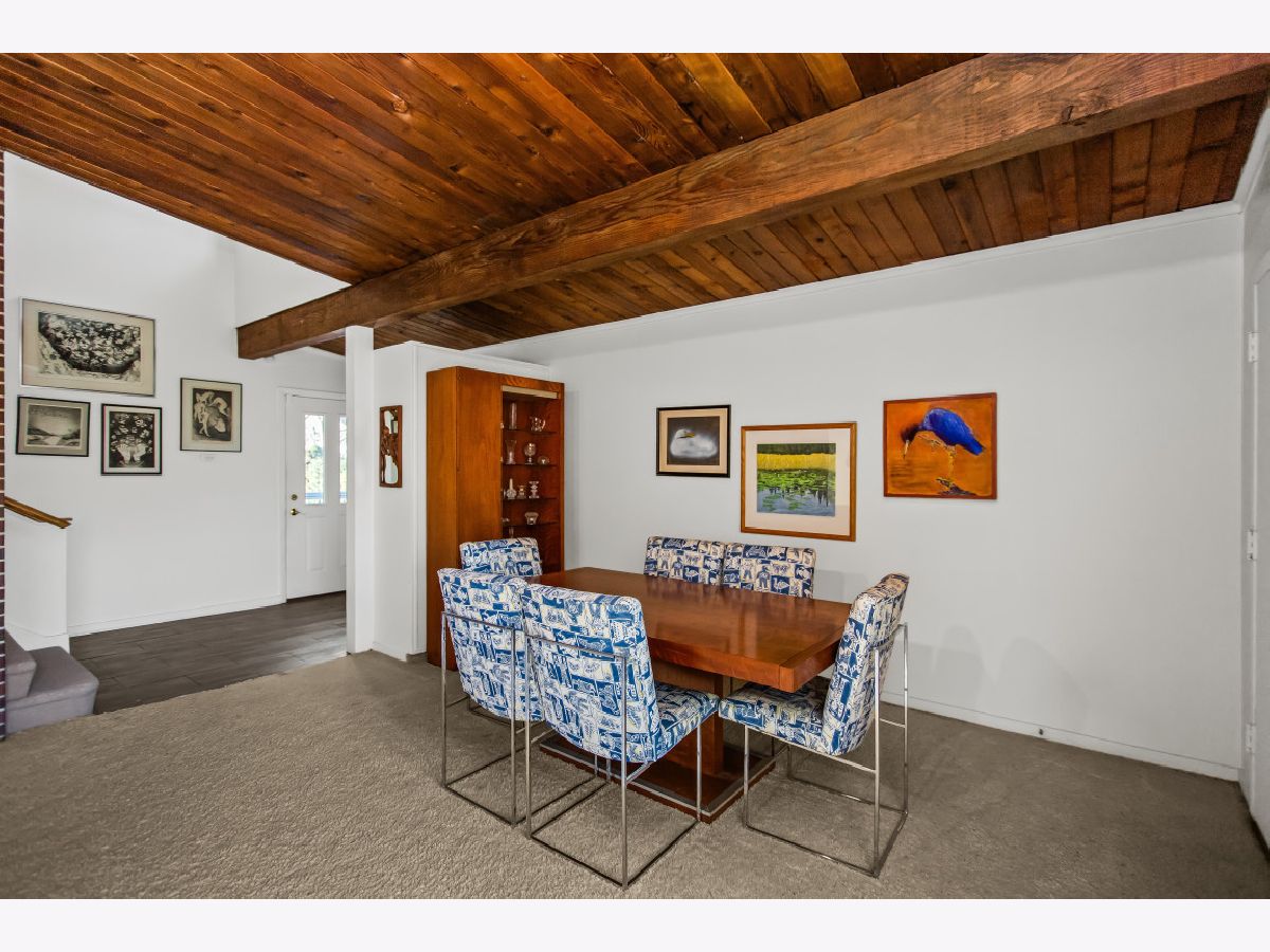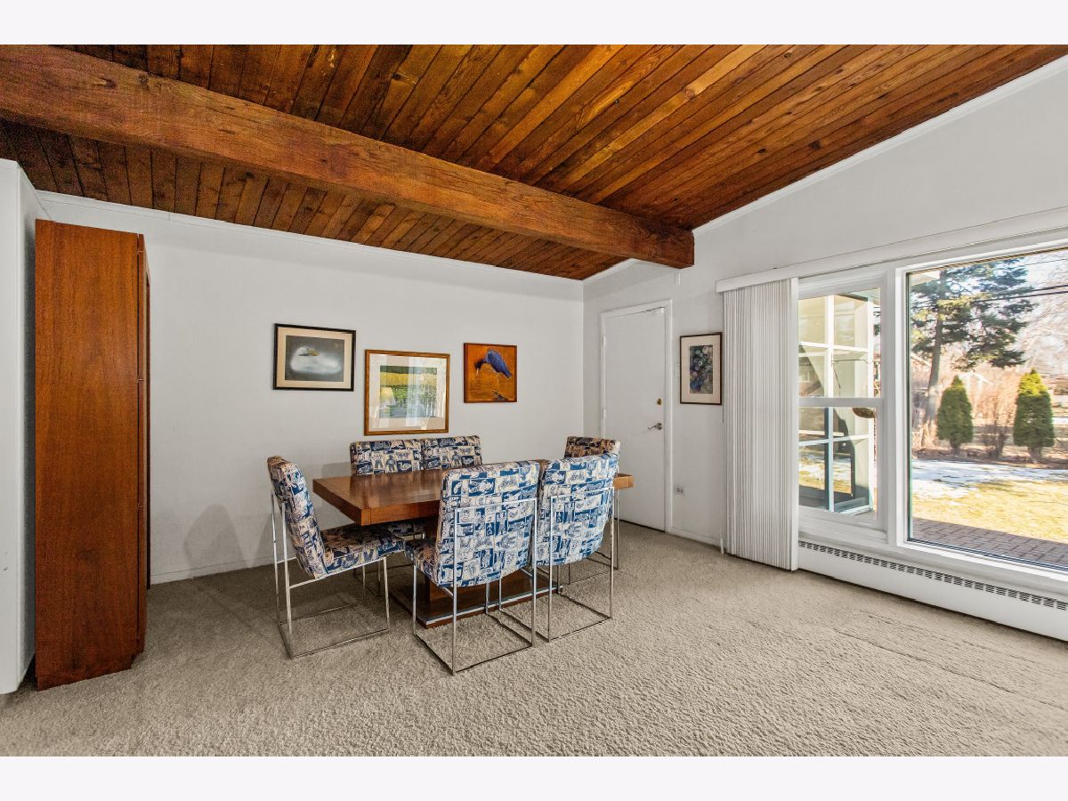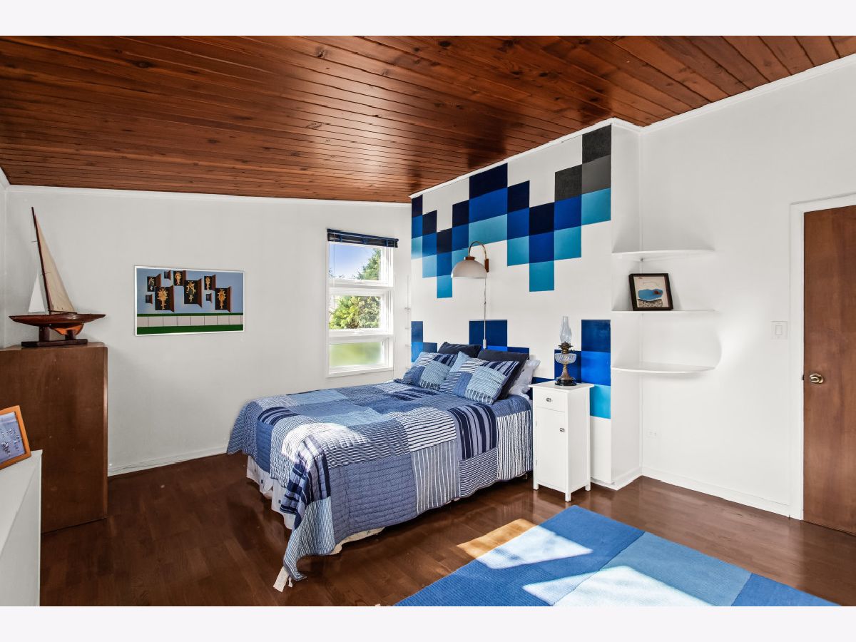 This one-of-a-kind, mid-century modern-inspired home is located in the coveted Skevanston area and offers a truly unique layout and feel. The main living space features vaulted ceilings and a fireplace with exposed brick, creating a warm, architectural focal point. The living and dining areas offer expansive views of the large, private backyard and provide direct access to a beautiful screened-in porch - perfect for relaxing or entertaining. Just beyond, you'll find a sun-drenched family room that flows into the kitchen, complete with a breakfast bar and ample storage. The kitchen leads to a spacious laundry room with flexible potential to be reimagined as a combined laundry/office space, workshop, or additional storage area. The upper level features a primary bedroom with its own full bath, plus two additional bedrooms and an updated hall bath. All bedrooms offer charming exposed wood ceilings, adding to the home's mid-century character. The home also includes a one-car garage.