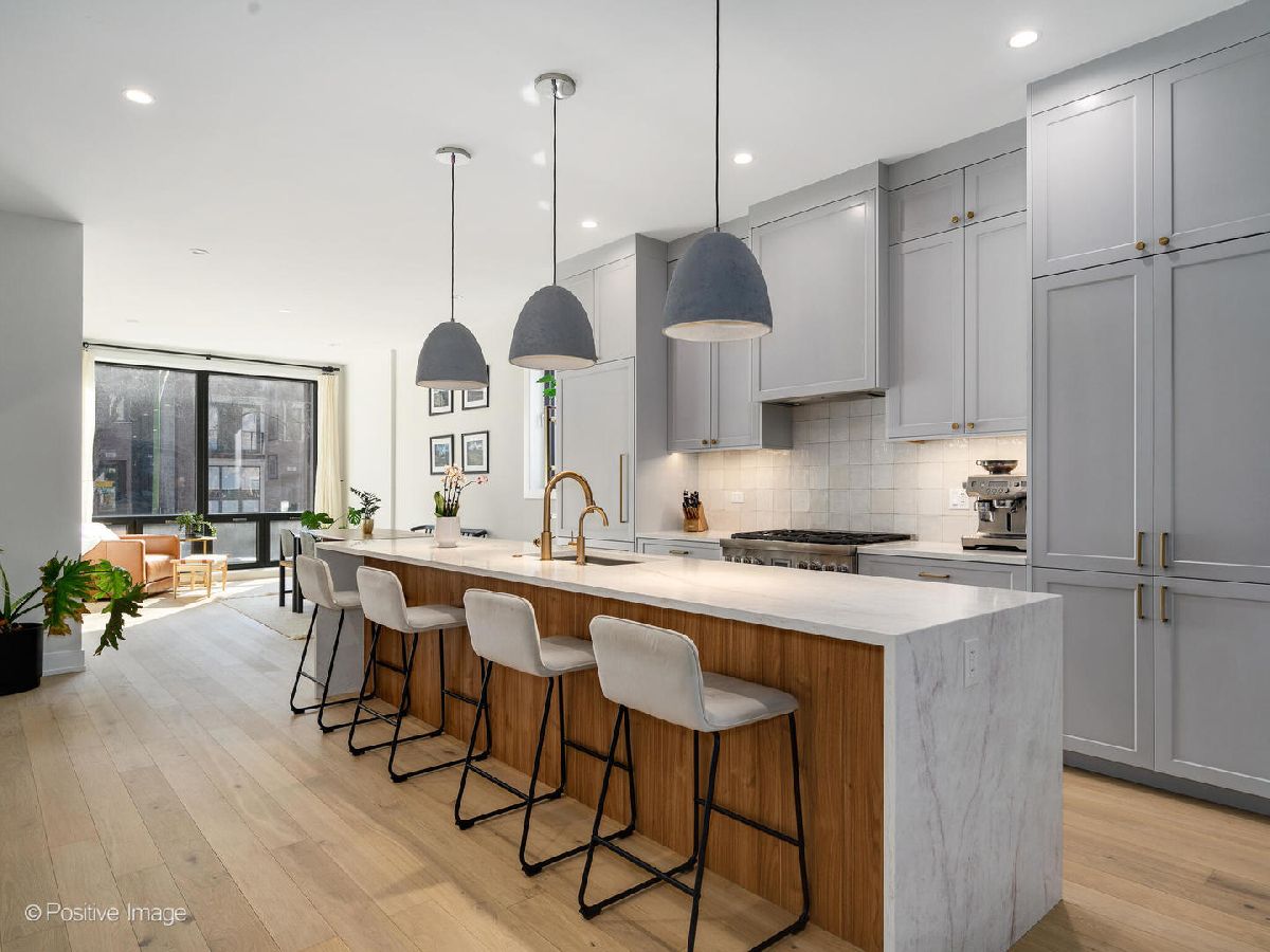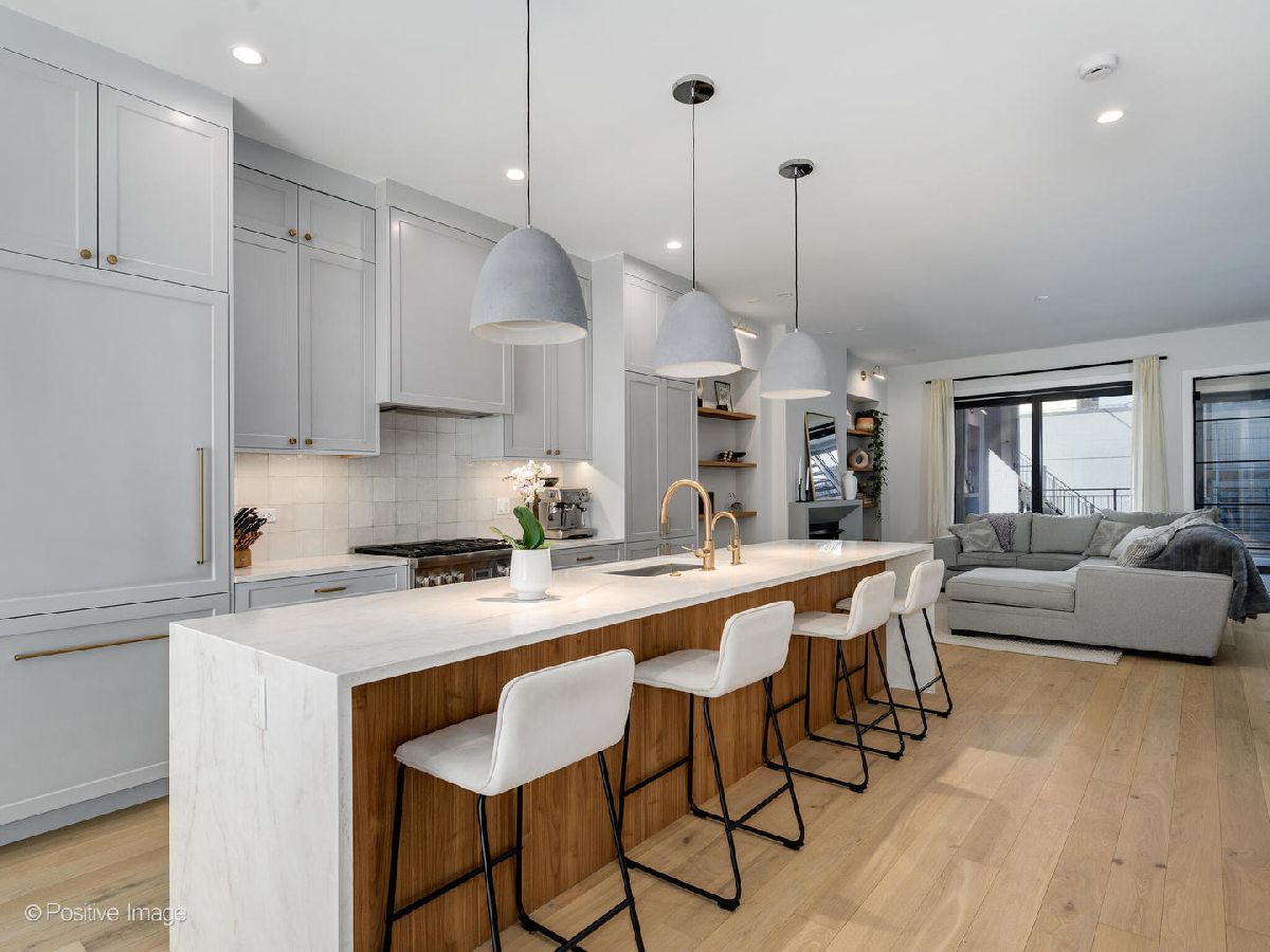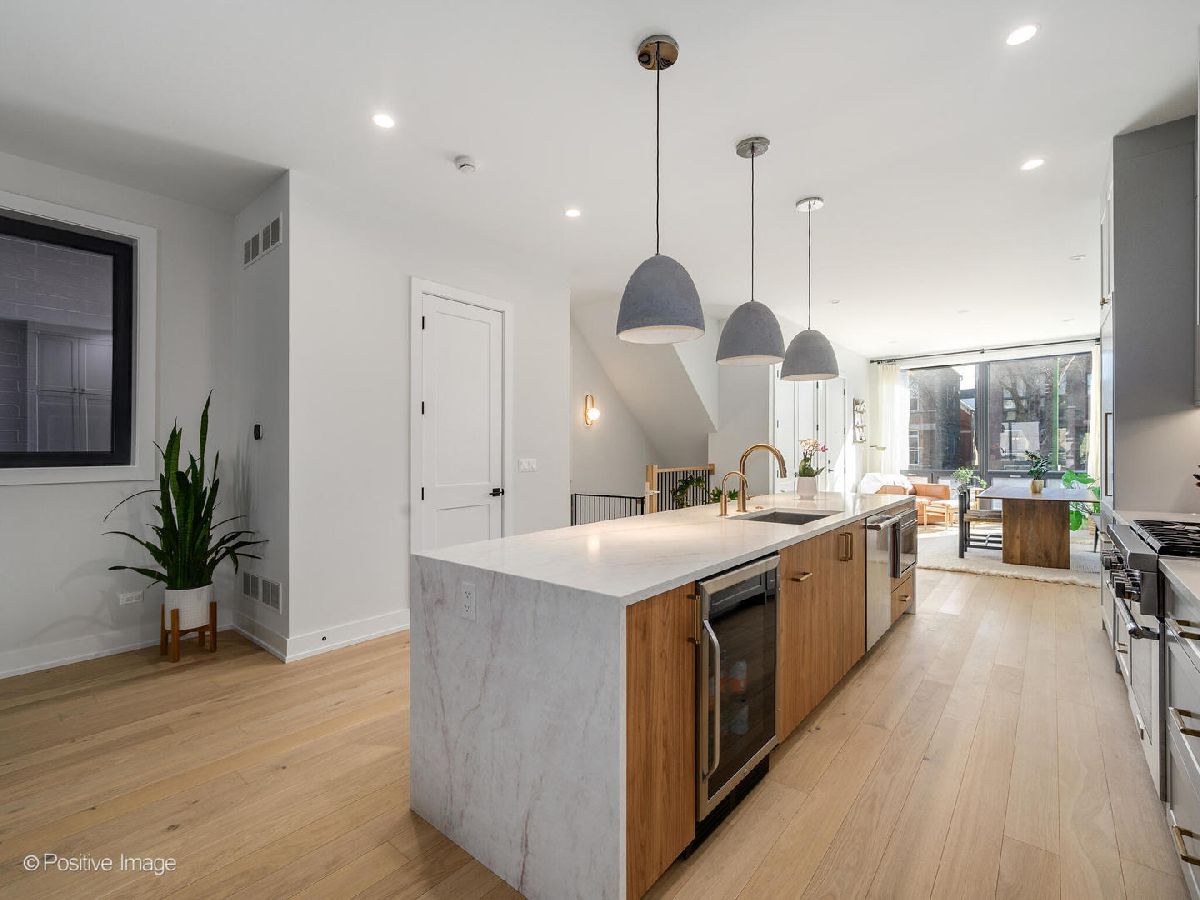 This stunning - better than new - 3 bedroom, 2.5 bathroom duplex down in East Village features a desirable open layout, high end designer finishes throughout, and two large private outdoor spaces. Built in 2024, the first floor offers an open floor plan with a formal living/dining room, as well as a family room with a beautiful fireplace that leads out to TWO large finished outdoor spaces. The luxurious kitchen features Thermador appliances and beautiful Taj Mahal quartzite waterfall countertops. Custom closets and window treatments can be found throughout the home. The outdoor space includes an 18' covered terrace, as well as a garage roof deck which this unit has exclusive access to. The lower level has radiant heated floors, three bedrooms, 2 full baths, and a recreation room for even more living space! The lower level recreation space could easily be converted to a 4th bedroom if desired. The primary suite features TWO walk-in closets and a dreamy en-suite bath with large separate shower and soaking tub. One garage parking space is included in the price. Ideal location on a quiet block yet walkable to everything Wicker Park and East Village have to offer. This home has been meticulously maintained and very lightly lived in - giving you a brand new home without the uncertainty of new construction. Don't miss out on this exceptional home!