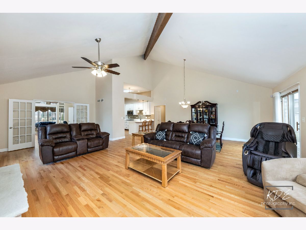 Beautifully Expanded ALL-brick Ranch home that stands out from other similar models with its spacious design and impressive updates** This home is instantly appealing the moment you walk in -featuring volume ceilings in the living room, family room, breakfast area & kitchen ** creating a bright and open feel throughout the main level * The Main floor features Brand New hardwood floors throughout (except baths) and a well-designed layout including a convenient first-floor laundry room ** The updated kitchen features newer quartz countertops, stylish backsplash, newer refrigerator , microwave, and a sunny breakfast area with sliding glass door leading to the backyard and brick patio-perfect for relaxing or entertaining * Major updates include a Brand New Roof and gutters, new skylights, fenced yard (2022), sump pump with battery backup (2022), and an epoxy-coated garage floor in the spacious 3-car garage * The newly finished basement (2023) offers exceptional additional living space with 9-ft ceilings, laminate flooring, two Spacious bedrooms, a full bath, and a small kitchen with center island-ideal for guests or recreation * Additional highlights include a sprinkler system, professional landscaping and a beautiful backyard setting * A truly move-in ready home with space, comfort, and thoughtful updates throughout ** Reasonable real estate taxes ** Priced aggressively in this competitive market **. Multiple offers have been received and Highest and Best offers are due by Sunday 6 pm. Thank you