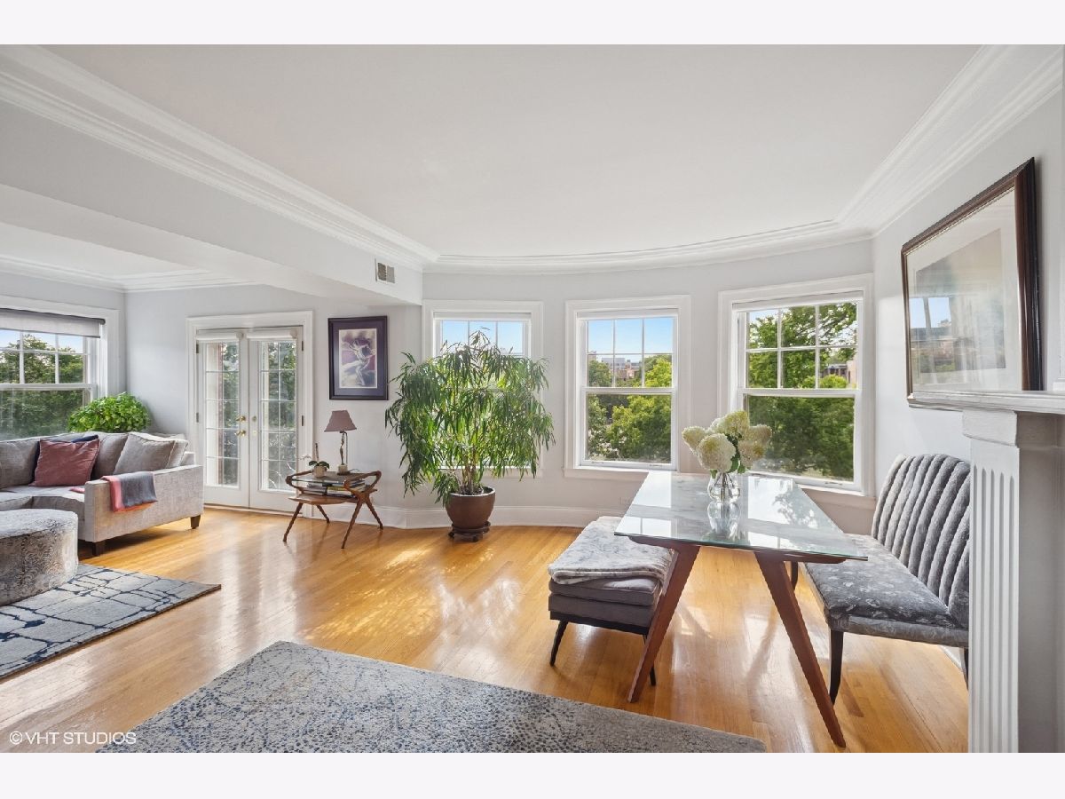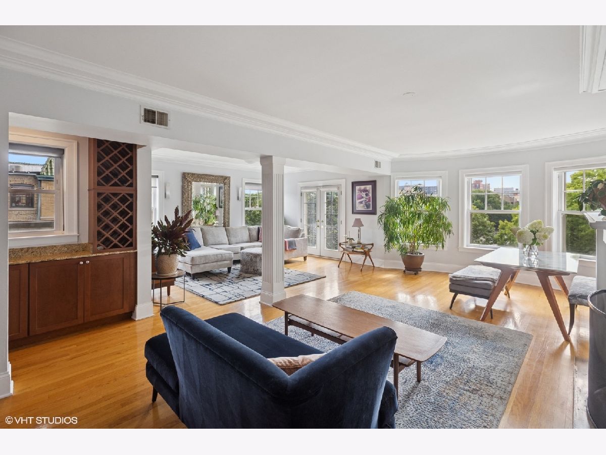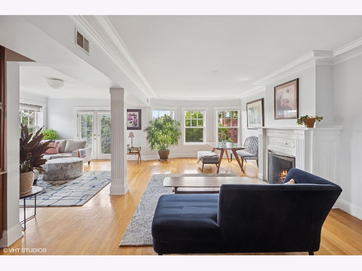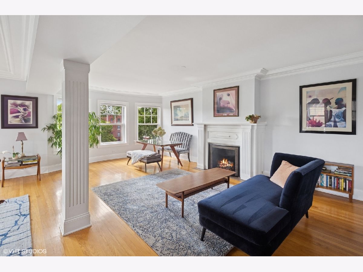 The truth is, life is best at the top ... floor! This sun-drenched corner, top-floor condo in a vintage building with modern amenities like central AC and in-unit laundry in SE Evanston blocks from the lake lives like a single-family home. Open the doors of the charming Juliette balcony and/or the Bay windows in the open floorplan living room - dining room and take in refreshing lake breezes and serene sunset views. The versatility of the large living space means endless room configurations and the comfort of knowing you won't hear any footsteps above you. Off of the LR and opposite stained glass, is a butler's pantry with ample storage that leads you to the lovely kitchen. Down the hall, the first bedroom is a jewel box that can also be a library, office or study complete with built-in California Closets custom shelving. The second bedroom fits a king-size bed and is currently set up as an office and workout area. The jumbo primary bedroom, where sunrises fill the space, has enough space for a king-size bed, couch and more, so you'll love making this your end-of-day landing pad. The marble ensuite full bath rounds out the unit. Out back is the most inviting fenced shared patio with a grill, table and chairs and couches, and more small sitting areas scattered throughout. Well maintained building with healthy reserves 3 blocks to Lee Street Beach and blocks to the El and Metra. Across the street from Lincoln Elementary and a short walk to Nichols Middle School -- and also to coffee shops, restaurants, bakeries, bookstores, boutiques, grocery shopping (Jewel, Trader Joe's, Binny's and Whole Foods) and more! **Ask the listing agent about available parking for rent across the street.