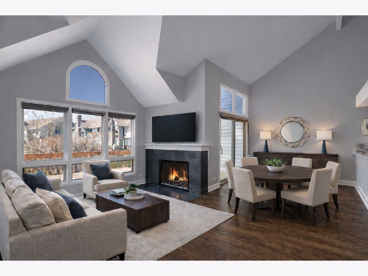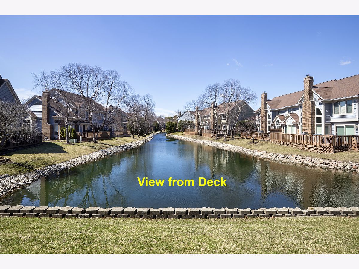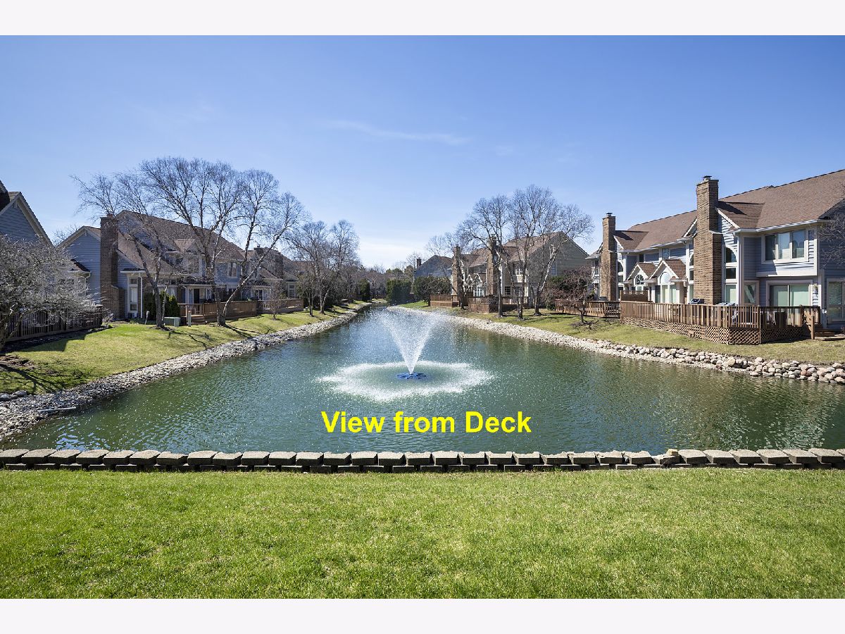 Enjoy resort-style living or a fantastic rental investment opportunity in this beautifully updated 3-bedroom, 2.5-bath townhome with serene pond views, ideally located in the sought-after Fountains of Deerfield community. The main level features gleaming hardwood floors, soaring ceilings, and an open, modern layout. The updated white kitchen offers granite countertops, stainless steel appliances, and a bright eating area. The living room (or office), dining room, and family room flow seamlessly, anchored by a centrally located fireplace. Walls of windows and sliding doors lead to a spacious deck overlooking a picturesque, fountain-filled pond-perfect for relaxing and enjoying scenic views year-round. Upstairs includes three generously sized bedrooms and a renovated hall bath. The primary suite features vaulted ceilings, water views, a walk-in closet, and a beautifully updated en-suite bath with dual vanities, a soaking tub, and separate shower. The finished lower level provides approximately 1,200 square feet of additional living space, ideal for recreation, fitness, or entertaining, plus ample storage. A full laundry room sits just off the attached two-car garage. Conveniently located near shopping, parks, the Patty Turner Center, expressways, downtown Chicago, and O'Hare Airport. Estate sale conveyed as-is with immediate possession possible. Move right in and enjoy low-maintenance living in a prime location. All images featuring furniture are virtually staged.