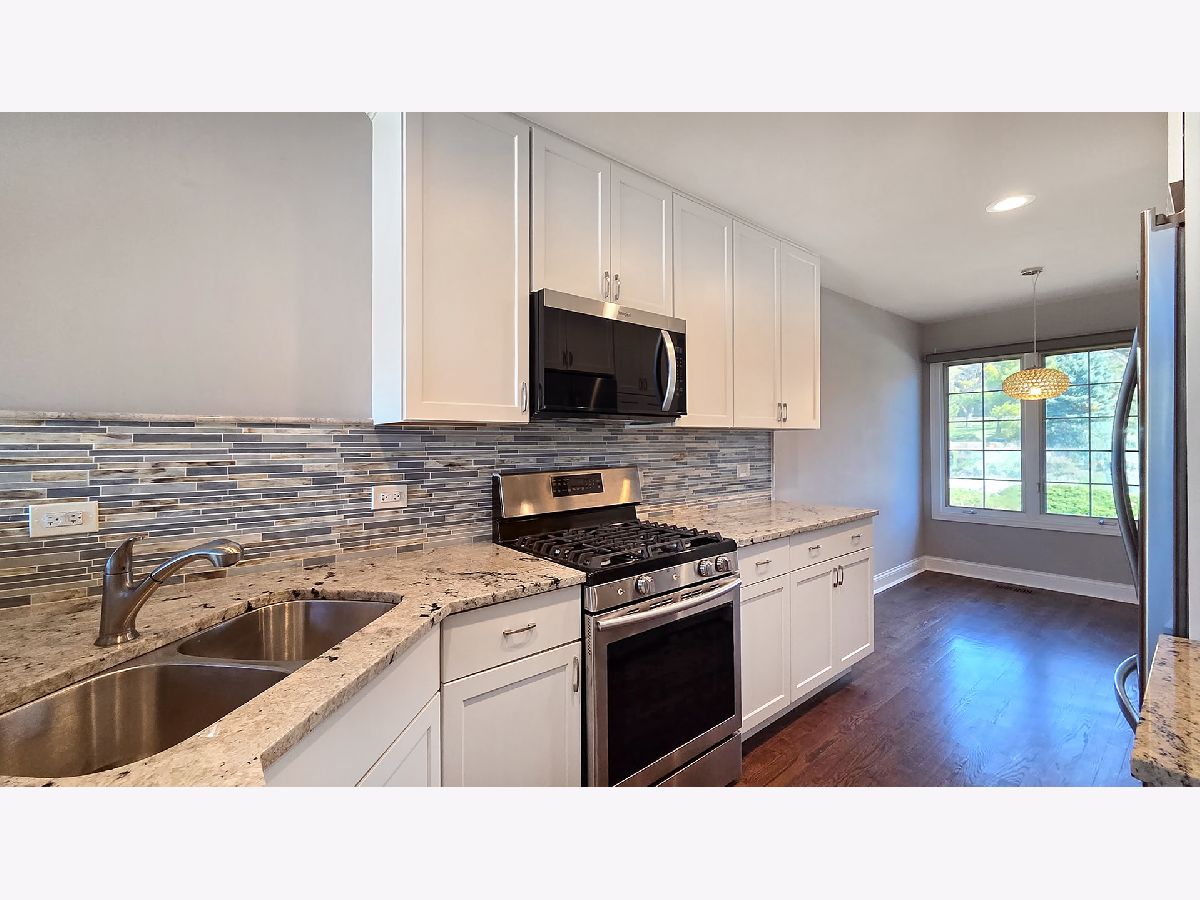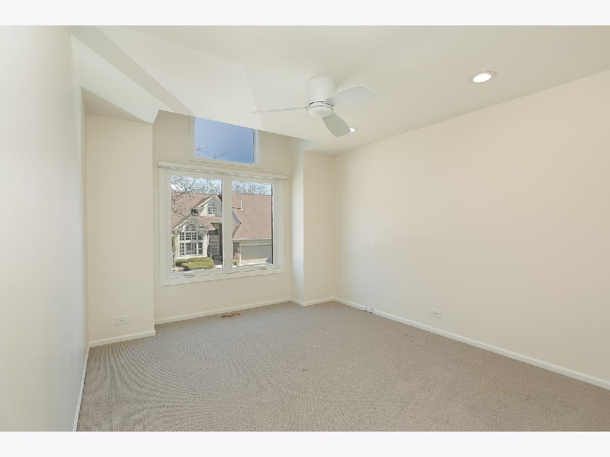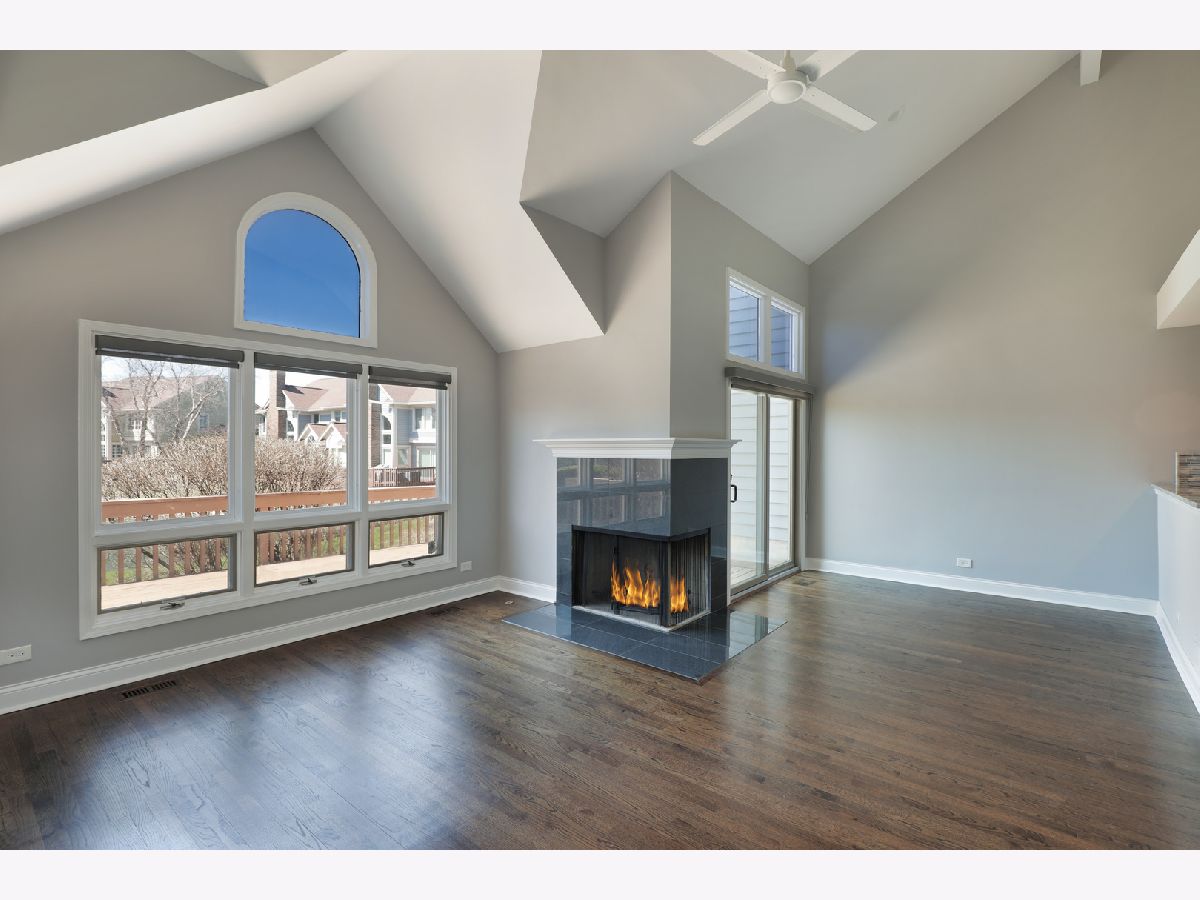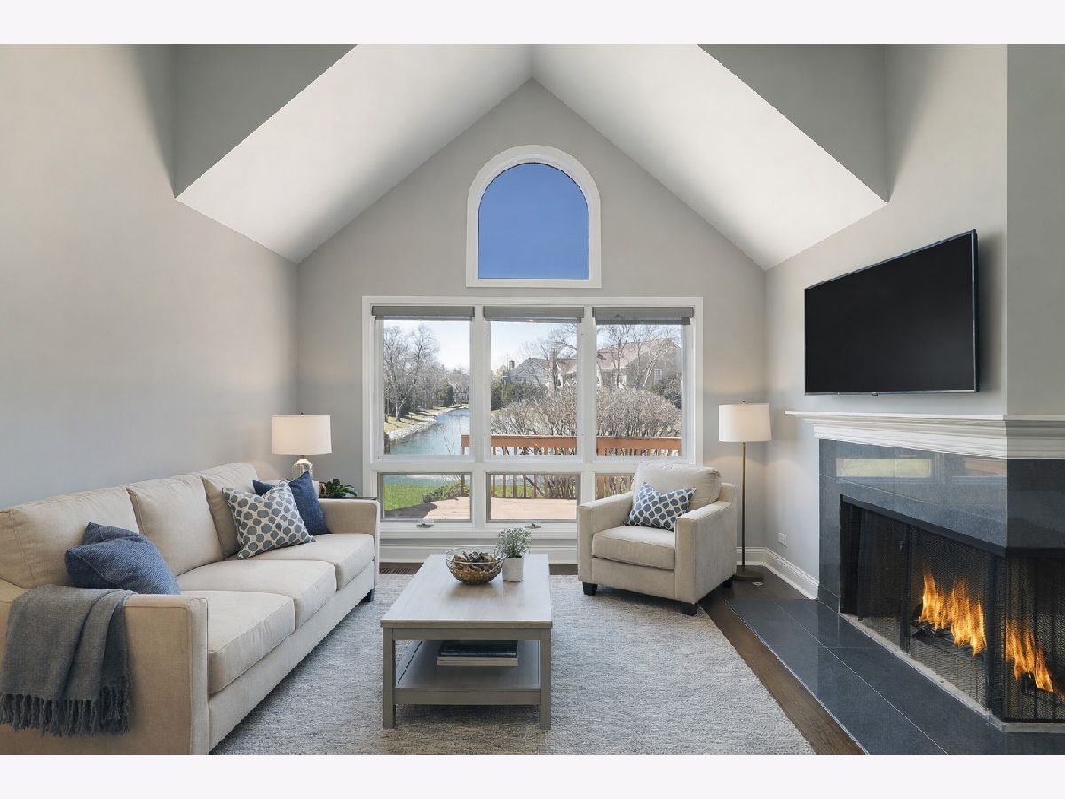 Enjoy resort-style living or a fantastic rental investment opportunity in this beautifully updated 3-bedroom, 2.5-bath townhome with serene pond views, ideally located in the sought-after Fountains of Deerfield community. The main level features gleaming hardwood floors, soaring ceilings, and an open, modern layout. The updated white kitchen offers granite countertops, stainless steel appliances, and a bright eating area. The living room (or office), dining room, and family room flow seamlessly, anchored by a centrally located fireplace. Walls of windows and sliding doors lead to a spacious deck overlooking a picturesque, fountain-filled pond-perfect for relaxing and enjoying scenic views year-round. Upstairs includes three generously sized bedrooms and a renovated hall bath. The primary suite features vaulted ceilings, water views, a walk-in closet, and a beautifully updated en-suite bath with dual vanities, a soaking tub, and separate shower. The finished lower level provides approximately 1,200 square feet of additional living space, ideal for recreation, fitness, or entertaining, plus ample storage. A full laundry room sits just off the attached two-car garage. Conveniently located near shopping, parks, the Patty Turner Center, expressways, downtown Chicago, and O'Hare Airport. Estate sale conveyed as-is with immediate possession possible. Move right in and enjoy low-maintenance living in a prime location. All images featuring furniture are virtually staged.