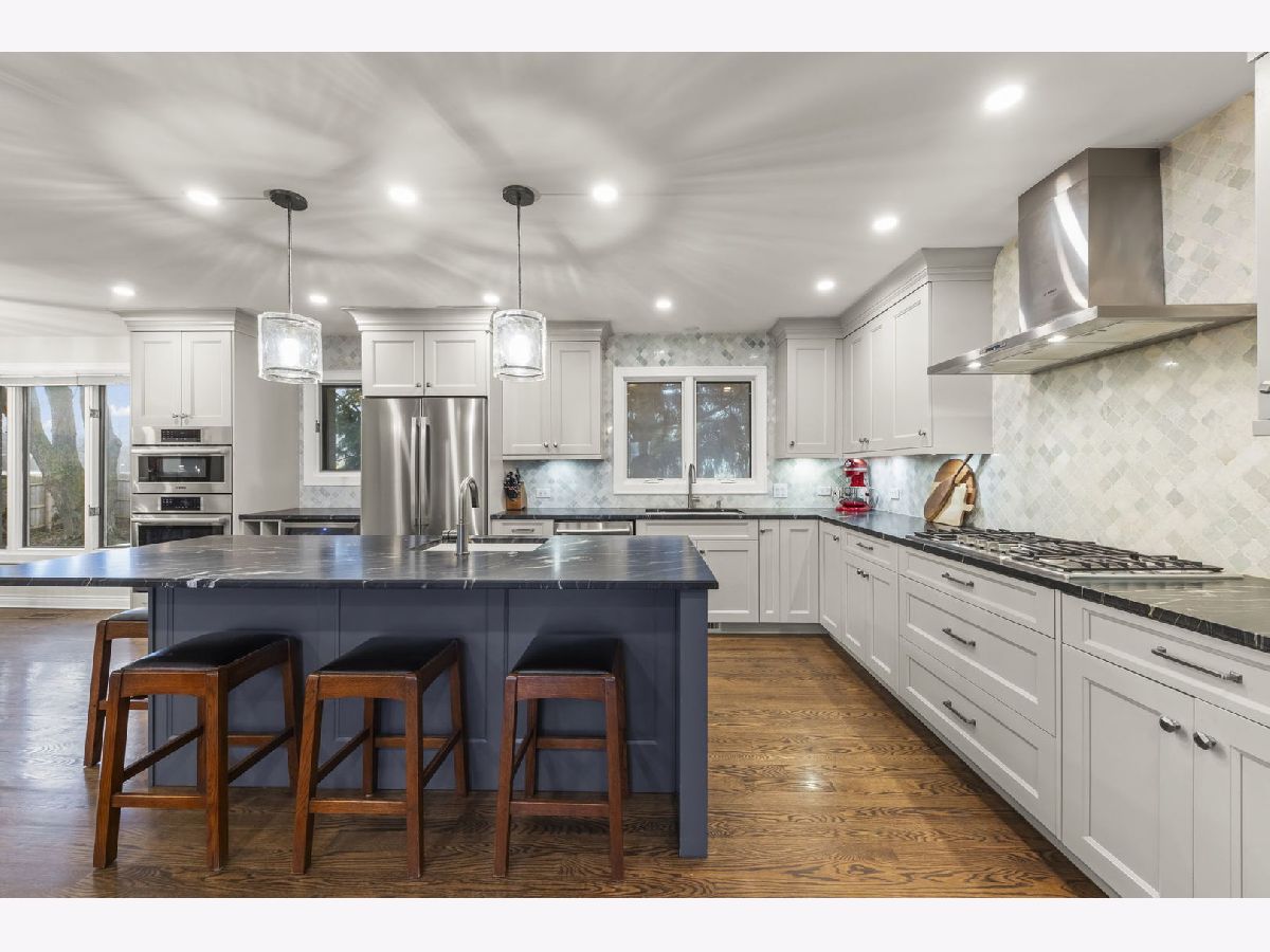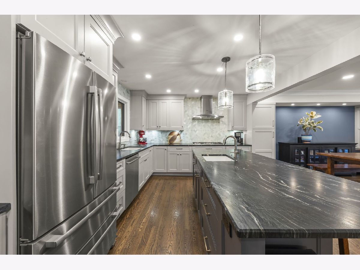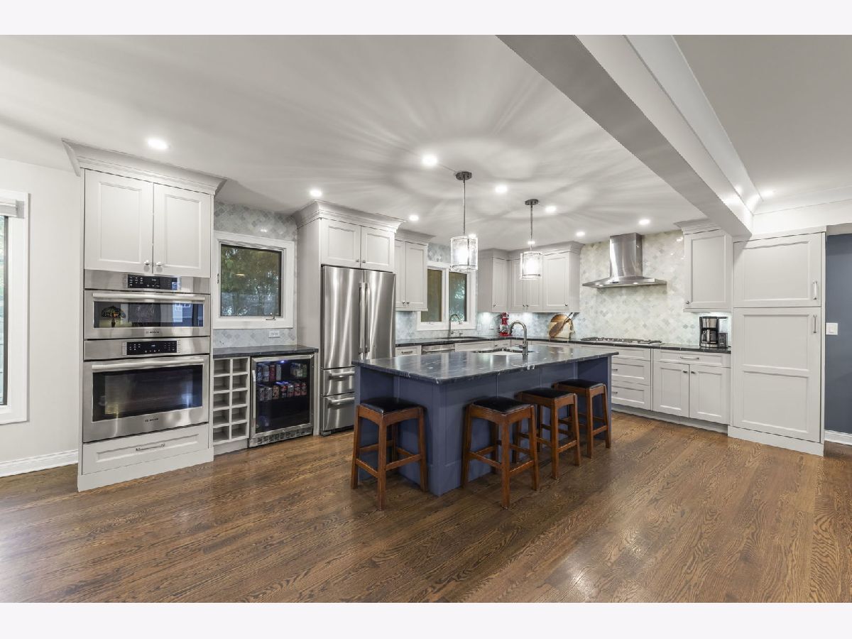 Welcome to 940 Weatherbee Pl, the stunning move in ready home in Downers Grove you have been waiting for! Renovated from top to bottom, this split level blends modern luxury with functional living throughout. Upon entry you're greeted by a spacious living room featuring a beautiful bay window and recessed lighting that flows seamlessly into the kitchen. The luxury kitchen offers endless cabinet space, a massive leathered marble island, a beverage fridge, and two sinks, plus two separate eating areas and additional seating at the island. Gorgeous hardwood flooring runs throughout the main and lower levels. Upstairs you will find two spacious bedrooms with great closet space, a full hall bathroom with dual sinks and beautiful tile work, and a primary suite with its own en suite bathroom. The lower level features a cozy wood burning fireplace, a half bath, and plenty of space for entertaining, a work from home space, and more. Off this room are sliding glass doors that lead to the patio and fully fenced backyard. The unfinished basement offers laundry, abundant storage, and flexible space with endless potential. The attached two car garage includes built in storage and epoxy flooring. Major updates include Full Home Renovation including Kitchen, Bathrooms, Flooring, Roof, Exterior Paint + More (2019), Privacy Fence (2020), Furance (2024), Radon Mitigation System (2018), and so much more! Located close to Downtown Downers Grove, the Metra, and Downers Grove schools, this is one you will not want to miss!