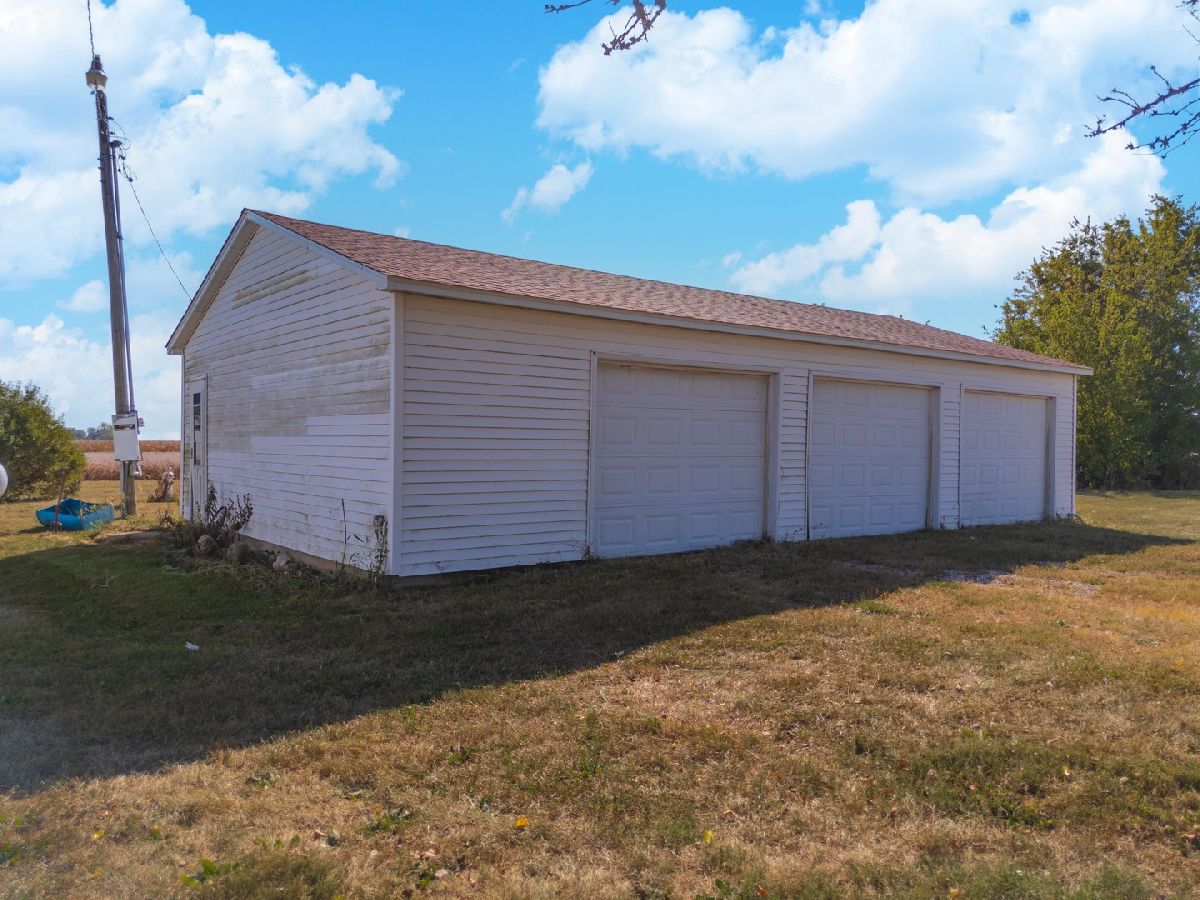 This handyman special sits on 4 acres and offers 1,512 sq. ft. of living space with 2 bedrooms, 1 bathroom, and a full unfinished basement. While the home needs extensive work, it appears to have a solid foundation and roof, making it a great opportunity for the right buyer. The property also includes a 3-car detached garage and a spacious 28x58 machine shed, providing plenty of storage or workspace. This unique property is best suited for cash or rehab loans or speak with a local lender about your options. This property holds great potential for those ready to bring it back to life. Sold As-Is.