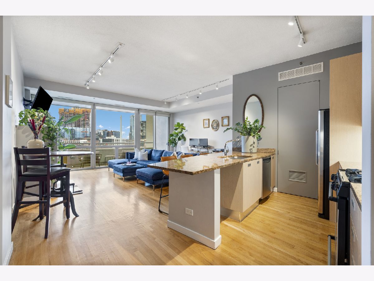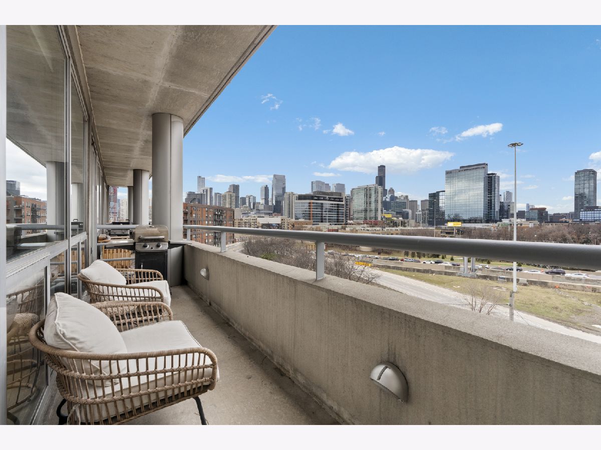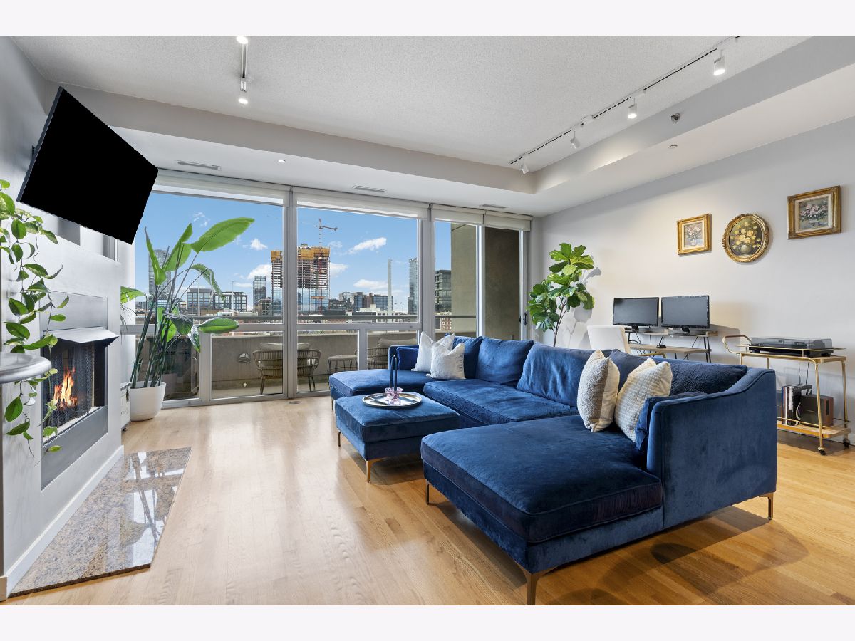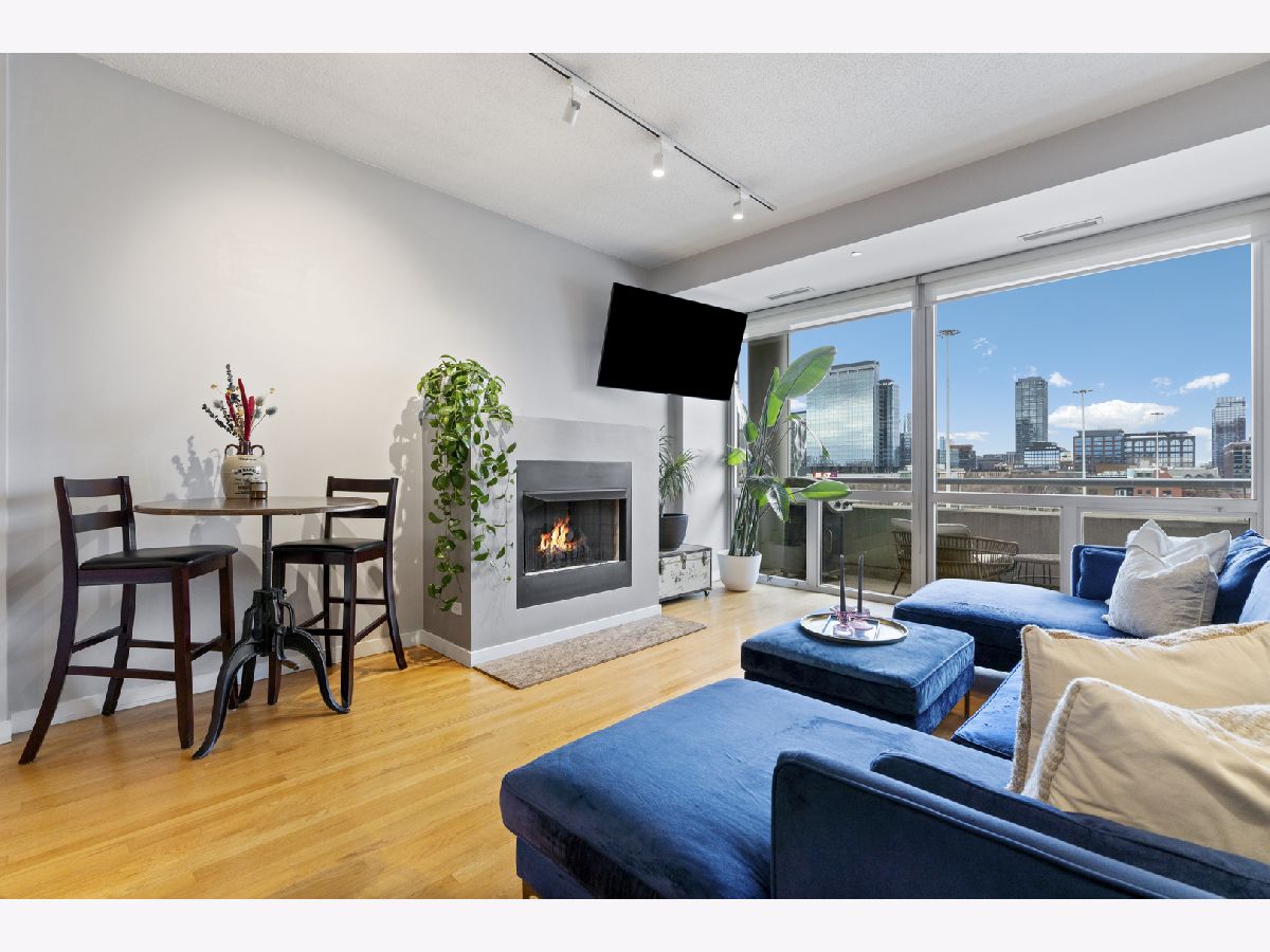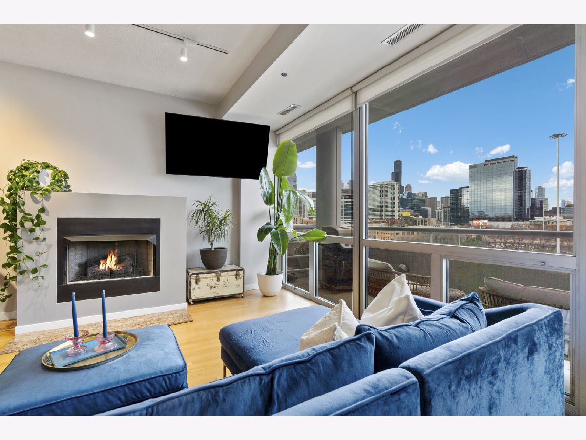 Enjoy stunning, unobstructed and protected skyline views from this oversized 1-bedroom condo in a boutique elevator building in the heart of River West. The updated kitchen features granite countertops, stainless steel appliances, sleek flat-panel cabinetry, and a peninsula that opens to an extra-wide living room with a cozy gas fireplace and a full wall of south-facing windows, filling the space with natural light and complemented by impressive 10' ceilings. Step out onto your private covered balcony spanning the full width of the unit, perfect for morning coffee, grilling, or unwinding with skyline views at the end of the day. The spacious bedroom comfortably fits king-sized furniture and offers a full wall of professionally organized closets. Spa-like bathroom with elegant Crema Marfil stone, oversized vanity, and glass-enclosed whirlpool tub/shower combo. Additional features include in-unit laundry, oak hardwood floors, and upgraded Traco windows providing excellent sound insulation for a quiet, serene home. Professionally managed, pet- and investor-friendly building with Butterfly access and new security camera system; high-speed internet included in HOA. Unbeatable location near the Blue Line, 90/94, and all the dining, shopping, and nightlife River West, Fulton Market, West Loop, River North, and Wicker Park have to offer. Heated attached garage parking available for $25K.