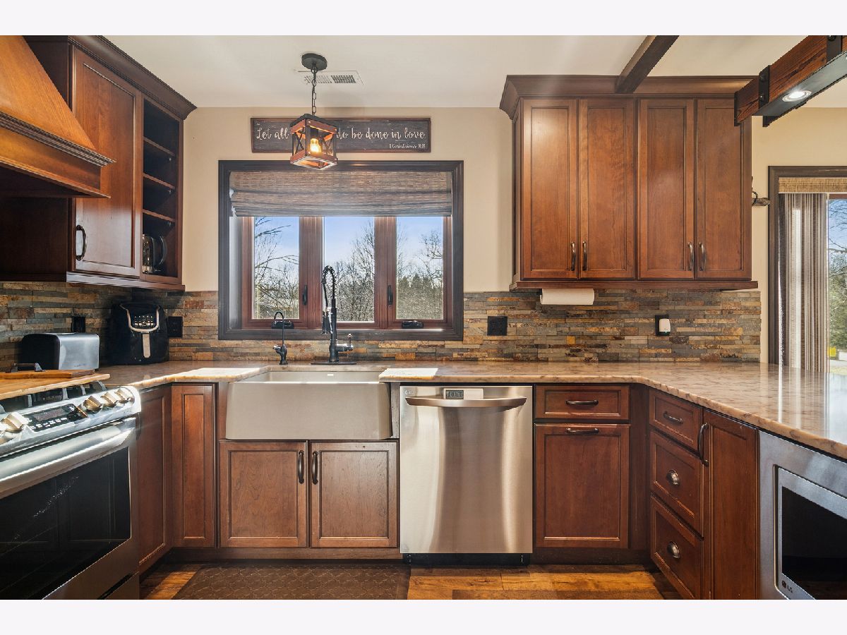 Stunning Custom Rebuild on Over an Acre - High-End Finishes Throughout This exceptional home at 9510 Martin Drive was completely rebuilt from the studs up in 2021, offering the quality, efficiency, and peace of mind of new construction without the wait. Nearly every component of the home was replaced or upgraded, with over $230,000 invested in top-tier materials, craftsmanship, and modern systems. Inside, you'll find high-end Mouser cabinetry, quartz countertops, hardwood floors in the main living areas, plush premium carpeting in the bedrooms, custom-designed closet organization systems by Closets by Design, custom lighting, and spa-like bathrooms featuring custom vanities, soaking tub, and frameless shower glass. The home features all-new electrical, plumbing, HVAC, ductwork, spray foam insulation, tankless water heater, water softener, and a reverse osmosis drinking water purification system, along with a Lennox furnace and air conditioning system with Ecobee thermostat. Natural light fills the home through premium casement windows and patio doors, while the kitchen is fully equipped with LG appliances. The living room fireplace is fully roughed in for electric, gas, and venting, and an upstairs bedroom opens to a Trex deck. Set on over an acre, the property offers privacy and room to grow. Significant tree clearing and property preparation has already been completed, providing a solid starting point for future landscaping and outdoor enhancements. All major systems are built for expansion, making it easy to add a garage, additional rooms, or a four-season space. Septic cleaned and inspected (2025), well inspected, and meticulous maintenance throughout. Manuals and receipts available. This is a rare opportunity to own a nearly brand-new, thoughtfully rebuilt home with luxury finishes, modern infrastructure, and future potential in a peaceful Spring Grove setting.