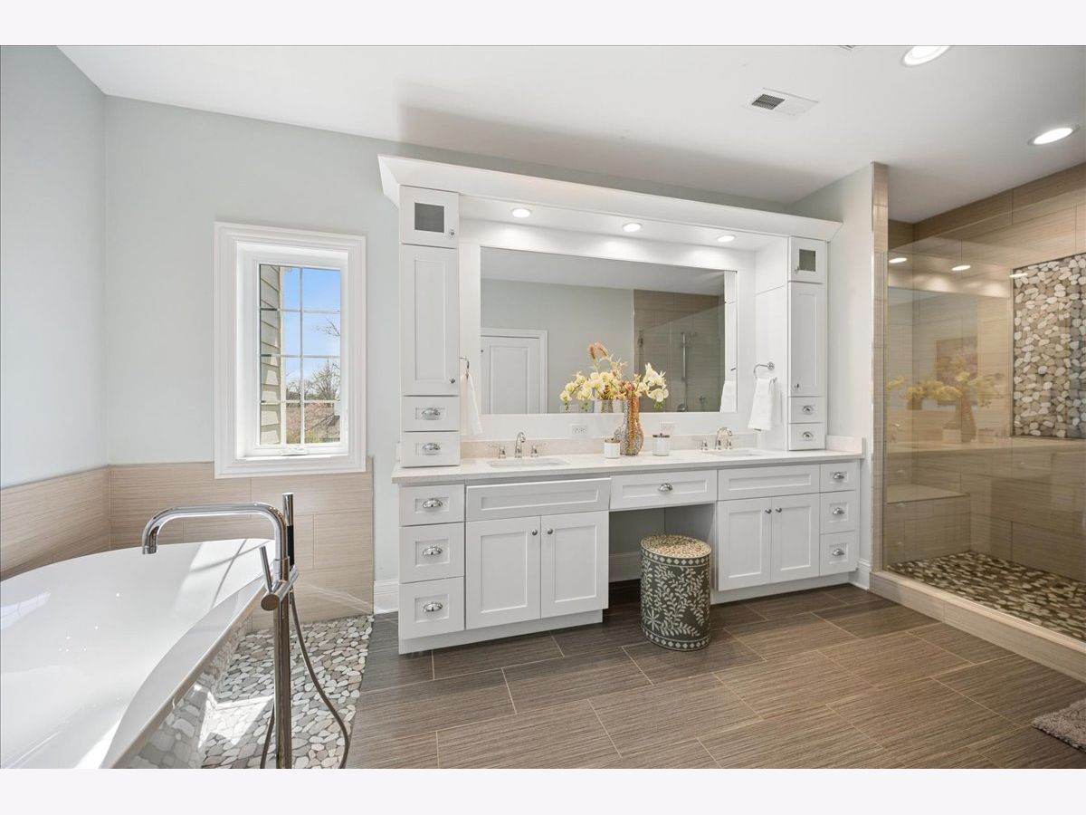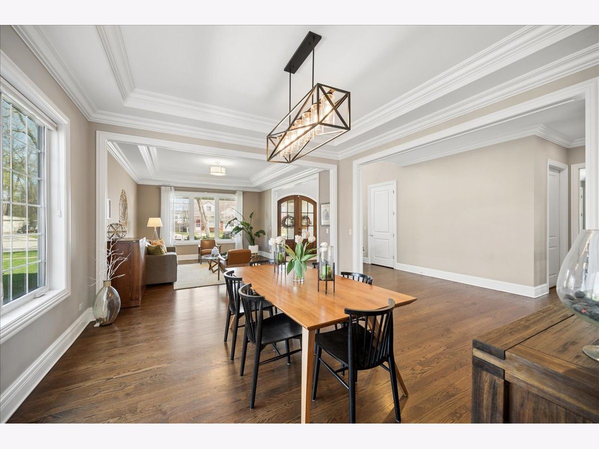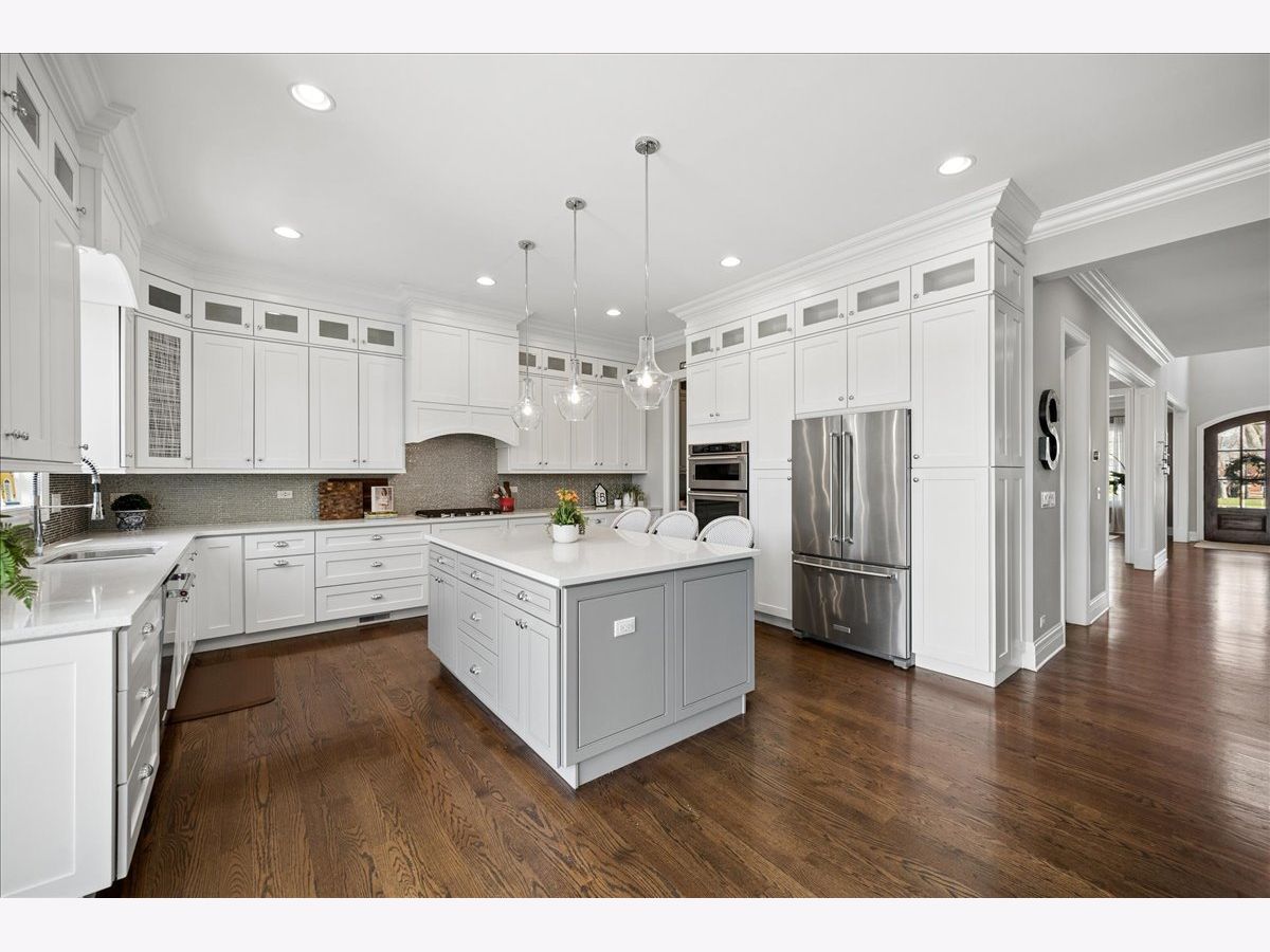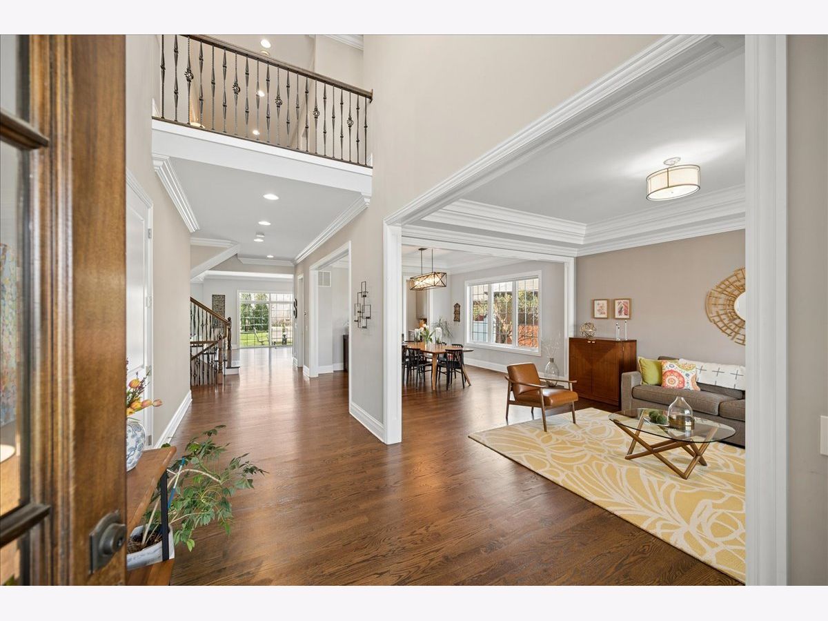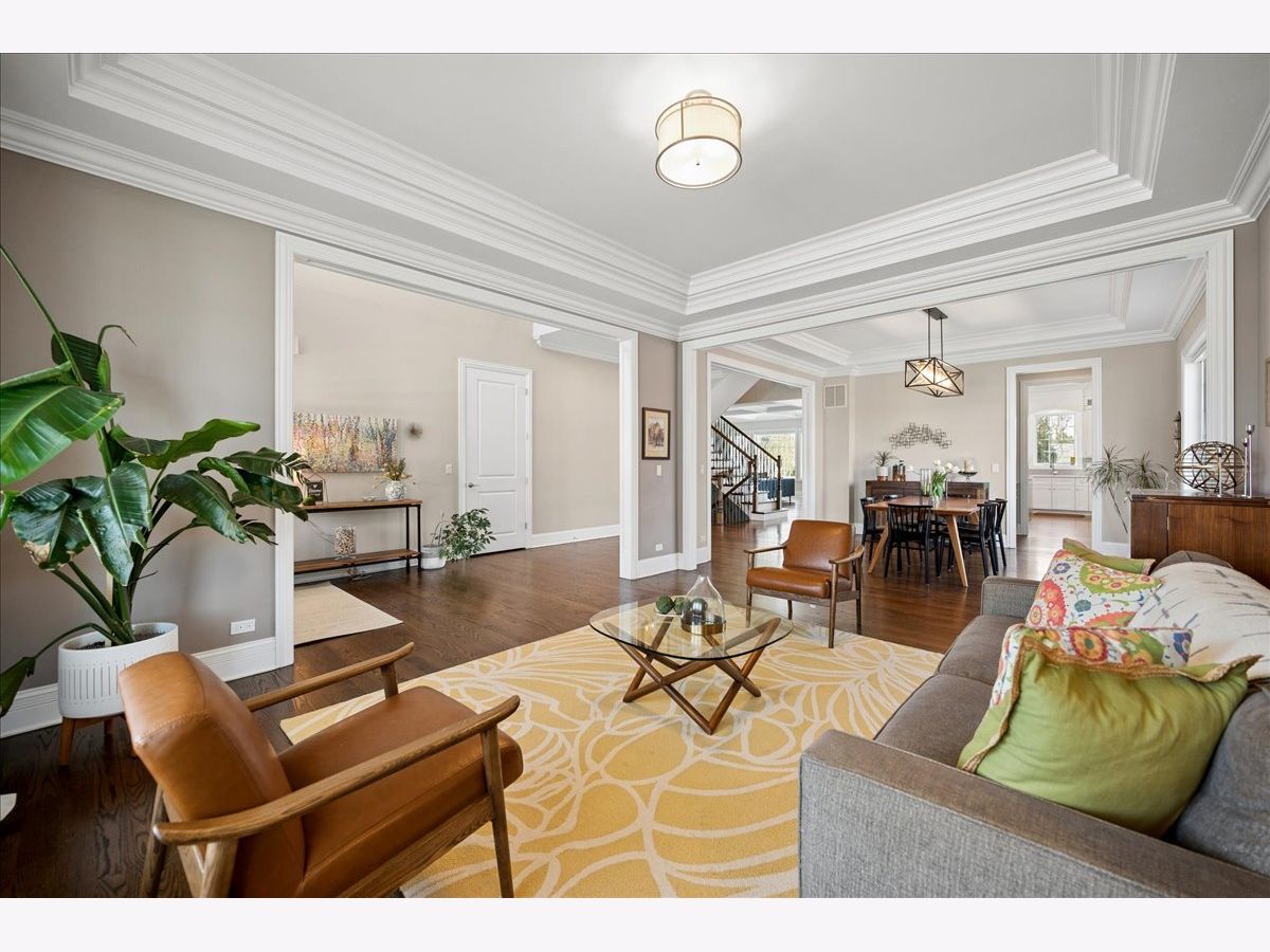 Beautifully appointed and thoughtfully designed, this exceptional 6-bedroom, 5.1-bath home built in 2016 offers an ideal blend of space, style, and functionality across all three levels. Hardwood flooring, high ceilings, abundant natural light, and custom millwork create a warm, polished feel throughout. The open-concept kitchen features quartz countertops, a large center island, stainless steel appliances, and a beverage/bar area, flowing seamlessly into the expansive family room with fireplace. Formal living and dining rooms provide additional space for everyday living and entertaining. A main-floor en-suite bedroom is ideal for guests, in-laws, or a private home office. Upstairs offers four bedrooms, including a spacious primary suite with walk-in closets and a spa-like bath, plus a large bonus room with potential for a fifth upstairs bedroom, playroom, or office. A well-designed Jack-and-Jill bathroom enhances functionality on the second level. The fully finished basement adds valuable living space with a custom bar, recreation areas, sixth bedroom, and full bath-perfect for entertaining, guests, or everyday living. Private, fully fenced backyard with paver patio and great outdoor space. Conveniently located near schools, parks, shopping, dining, forest preserve, and expressway access.