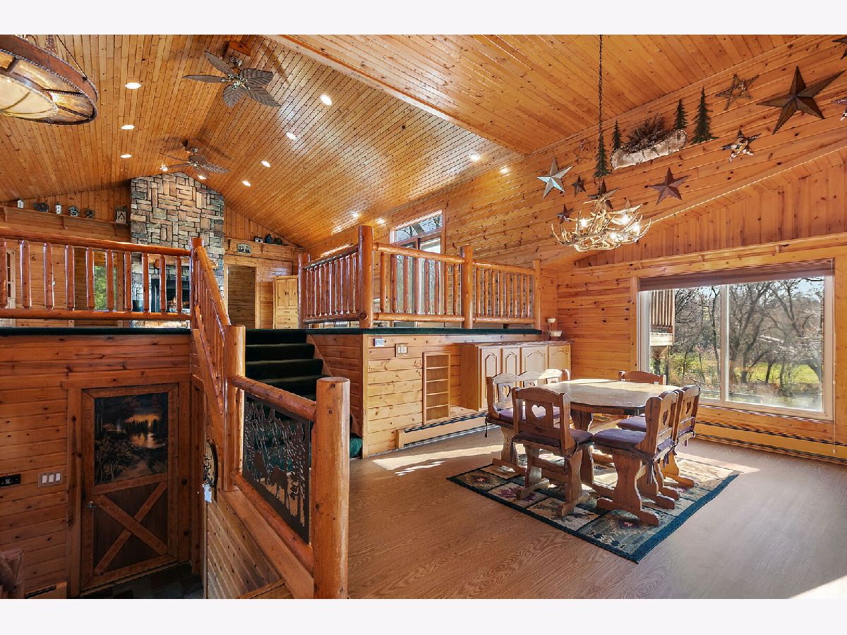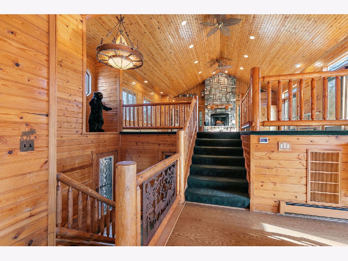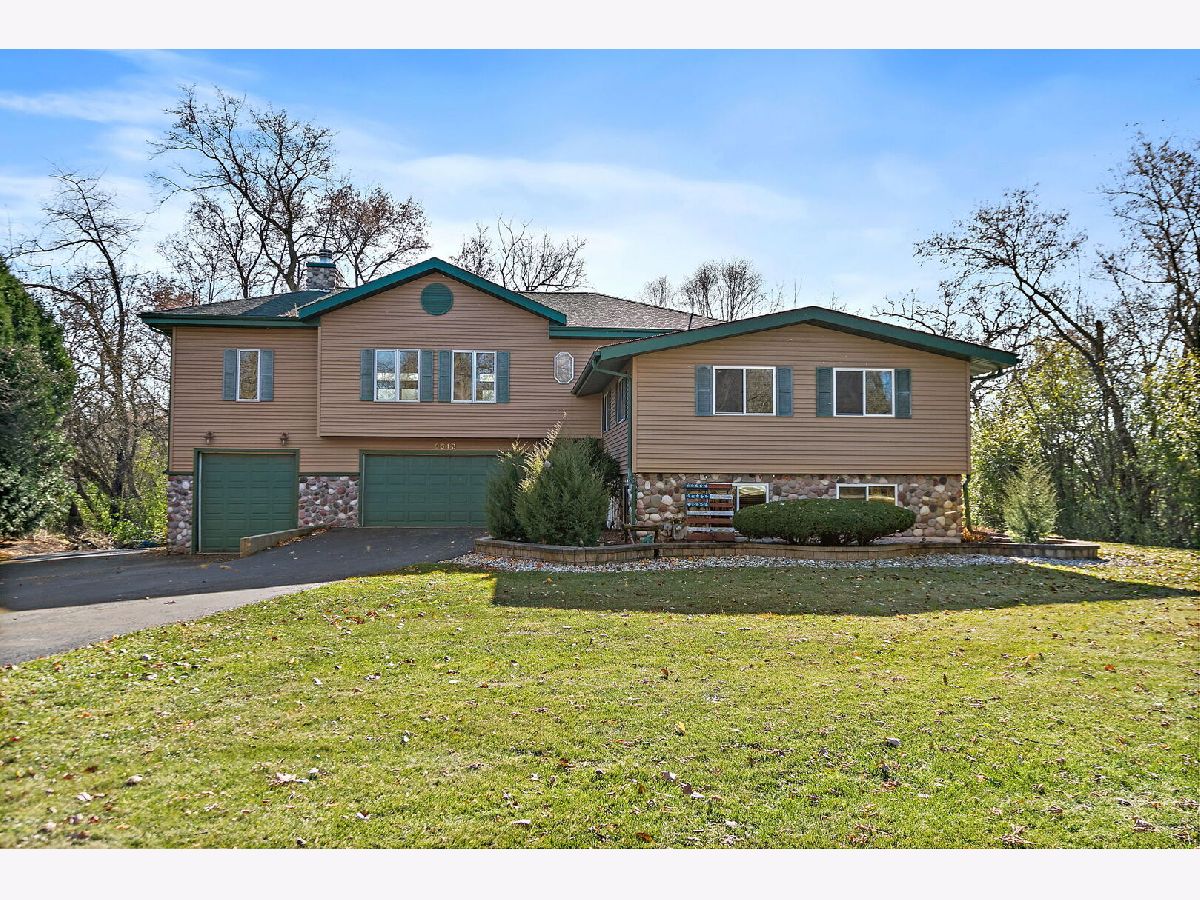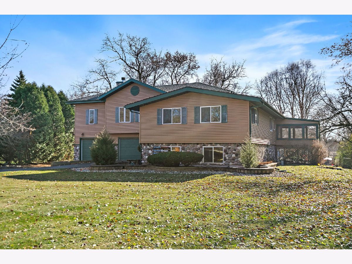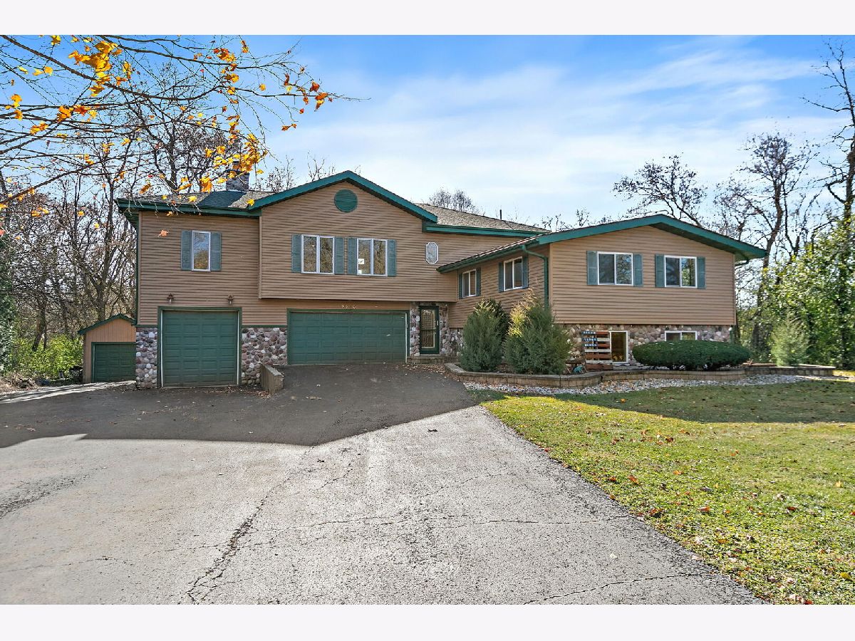 Welcome to 9513 Elm Lane - a customized 3 Bedroom/3 Bathroom split-level type home on an expansive lot in Crystal Lake. From the moment you arrive, the setting creates a peaceful retreat - on just under 1 acre you will find privacy and plenty of space for any outdoor activities you might enjoy. Inside, the living room features vaulted ceilings, a stunning floor-to-ceiling stone fireplace, and a charming alcove with a custom mural. The open kitchen flows effortlessly into the dining area and main living spaces, perfect for entertaining or everyday living. Enjoy versatile spaces throughout, including dedicated spaces for offices and/or quiet sitting areas. The finished lower level adds even more living area with a spacious family room, additional fireplace, laundry and third bedroom. Outdoors, the deck and brick paver patio overlook the private backyard oasis - complete with small pond and professionally designed lighting and irrigation system. Car enthusiasts will love the heated four-car garage, fully lift-ready and ideal for projects or storage. This home combines character, comfort, and craftsmanship in one remarkable property. Don't miss the opportunity to make 9513 Elm Lane your new home.