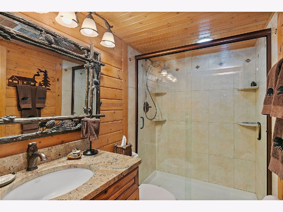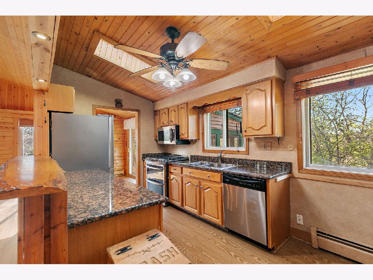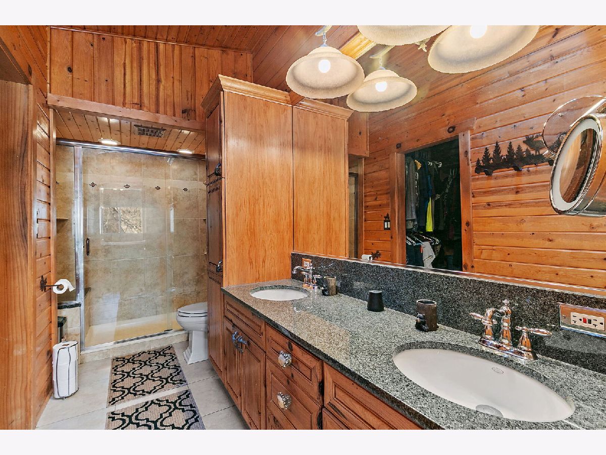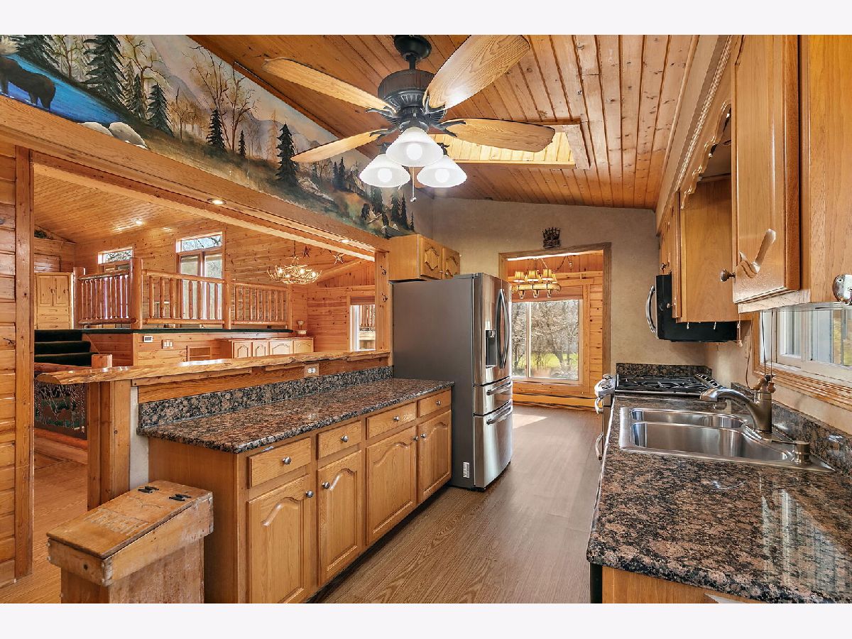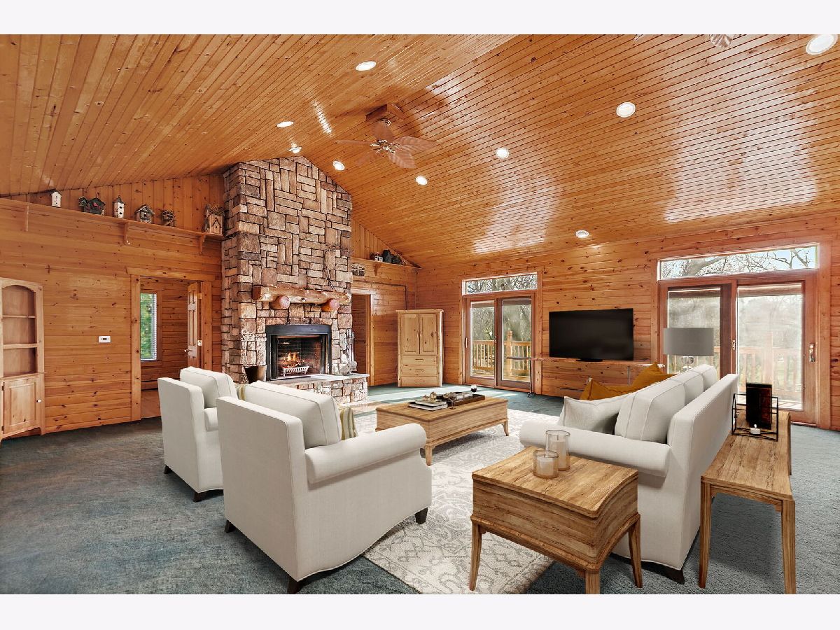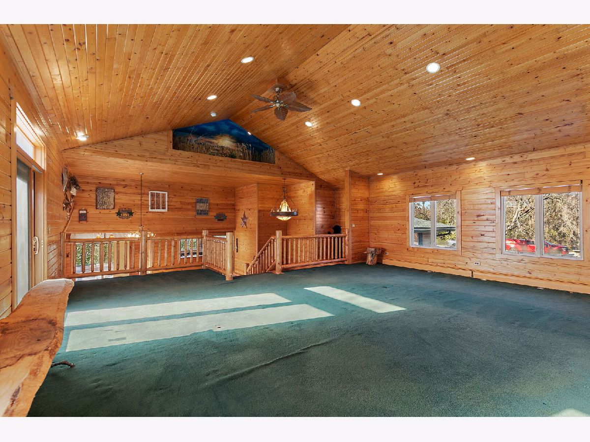 Welcome to 9513 Elm Lane - a customized 3 Bedroom/3 Bathroom split-level type home on an expansive lot in Crystal Lake. From the moment you arrive, the setting creates a peaceful retreat - on just under 1 acre you will find privacy and plenty of space for any outdoor activities you might enjoy. Inside, the living room features vaulted ceilings, a stunning floor-to-ceiling stone fireplace, and a charming alcove with a custom mural. The open kitchen flows effortlessly into the dining area and main living spaces, perfect for entertaining or everyday living. Enjoy versatile spaces throughout, including dedicated spaces for offices and/or quiet sitting areas. The finished lower level adds even more living area with a spacious family room, additional fireplace, laundry and third bedroom. Outdoors, the deck and brick paver patio overlook the private backyard oasis - complete with small pond and professionally designed lighting and irrigation system. Car enthusiasts will love the heated four-car garage, fully lift-ready and ideal for projects or storage. This home combines character, comfort, and craftsmanship in one remarkable property. Don't miss the opportunity to make 9513 Elm Lane your new home.