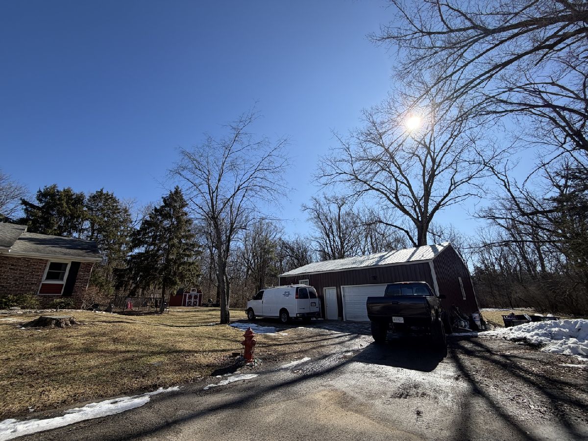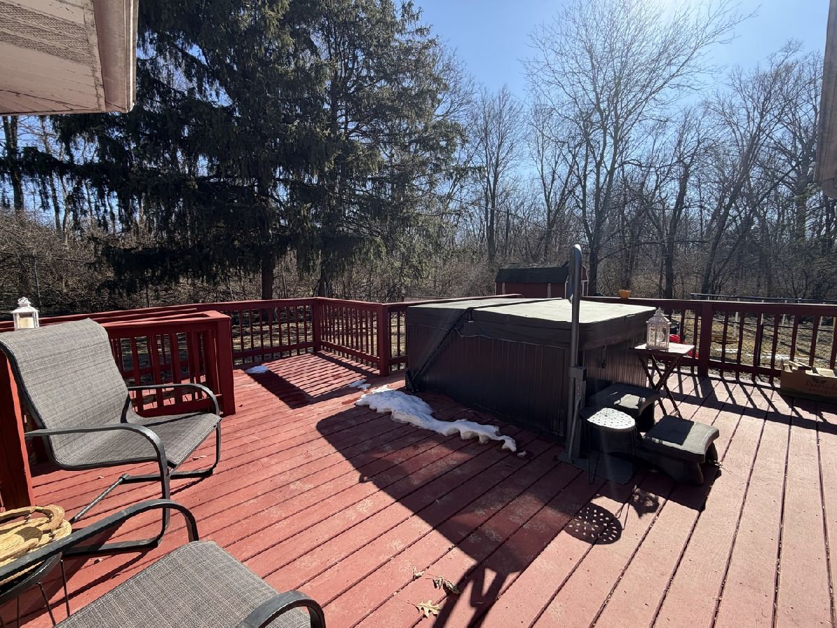 Tucked away at the end of a quiet dead-end street, this beautifully secluded property offers privacy, space, and comfort on 6.83 wooded acres! Groomed trails wind through the woods, creating a peaceful, retreat-like setting with a truly private feel. The home features 2 bedrooms and 2 bathrooms, two wood-burning fireplaces, and a heated and cooled sunroom perfect for year-round enjoyment. The partially finished basement includes an additional room with potential for expansion (egress window needed). ADA-compliant doors and a patio ramp provide added accessibility, while the primary suite offers a walkout to the deck and hot tub-ideal for relaxing and taking in the serene surroundings. Outside, you'll find a fully fenced backyard and a 30x40 heated shed/garage with a tandem door and drive-through access, plus a 2-car attached garage with a whole-house fan. Major updates provide peace of mind, with the HVAC system, appliances, and roof all approximately four years old. This one-of-a-kind property combines modern conveniences with a private, nature-filled setting!