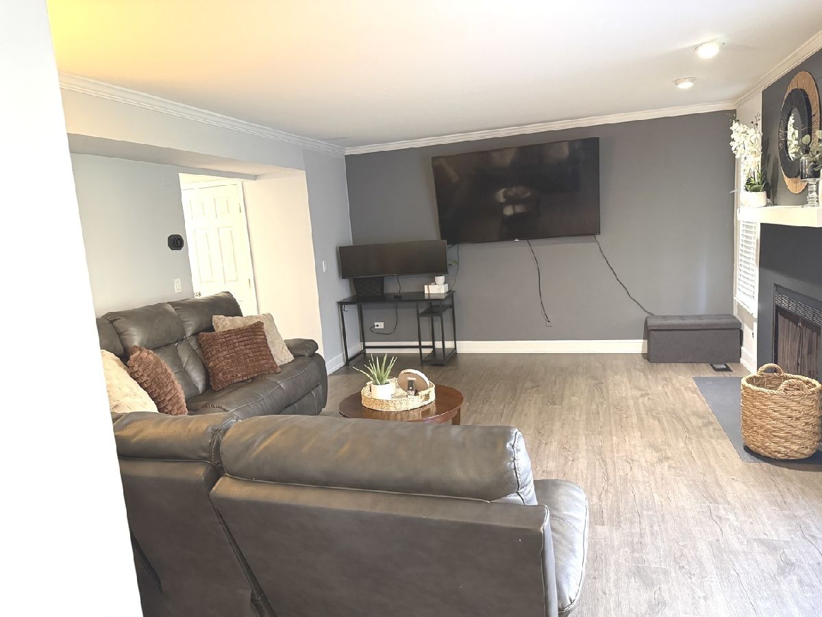 Experience refined living in this move-in ready townhome. Freshly painted interiors and new luxury vinyl plank flooring create a bright and welcoming atmosphere. The heart of the home is the large living room, featuring a cozy wood-burning, gas-start fireplace and direct access to a private paver patio. Entertain with ease in the open-concept kitchen, equipped with newer stainless steel appliances and an adjoining dining space. The second level features a conveniently located laundry area and a luxurious master retreat with a walk-in closet and spacious ensuite bath. Features include a two-car garage with professional epoxy flooring, plus extra storage in the dry concrete crawl space