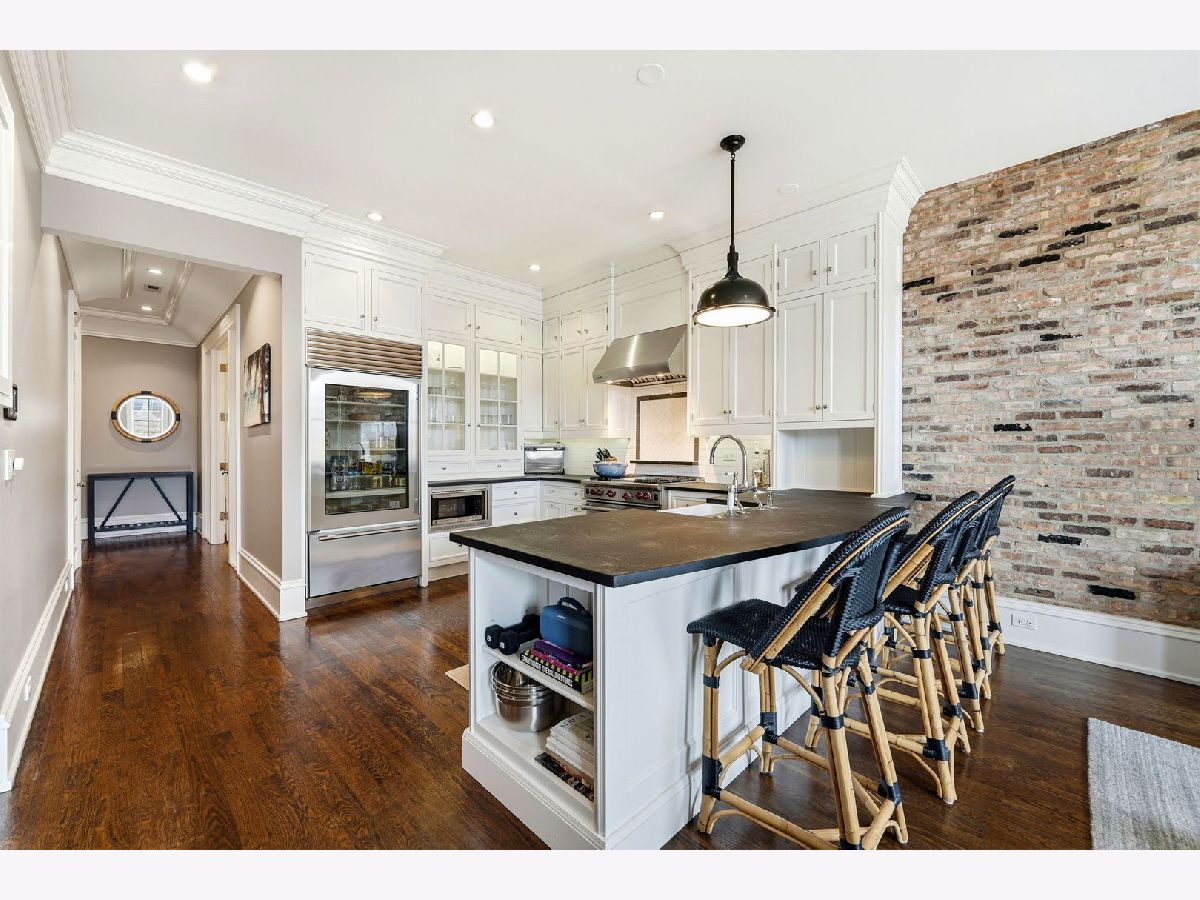 Highest and Best due at 5pm Monday 3/2! Welcome to your oversized 2-bedroom, 2-bath residence with deeded parking and private outdoor space that showcases refined, high-end finishes in an elegant Lincoln Park building. The thoughtfully designed floor plan welcomes you with a gracious foyer offering space for a bench and console table, and flows seamlessly into a spacious living room with ample room for both relaxing and formal dining. The chef's kitchen is expansive and complemented by a stylish bar area featuring a wine refrigerator and glass-front cabinetry. Additional details include gleaming hardwood floors, exposed brick, Conrad window treatments, extensive crown molding and wall paneling, updated lighting and audio control system, 9-foot solid-core doors, and soaring 10-foot ceilings. The beautifully appointed kitchen by Christopher Peacock is outfitted with white wood cabinetry, honed black limestone countertops, a glass-panel SubZero refrigerator, a Wolf range, and a Miele dishwasher. The serene primary suite boasts multiple closets, extra space throughout, and an en-suite spa-like bath that features an multi-spray shower, Waterworks fixtures, and natural stone finishes. The well-appointed guest suite provides comfort and privacy, with a guest bath showcasing Waterworks fixtures and a spacious marble and stone shower in the same sophisticated palette. A large private deck provides abundant natural light from eastern, southern, and western exposures. Covered parking included in the price. An extraordinary home with impeccable finishes, ideally situated in a convenient, walk-to-everything location.