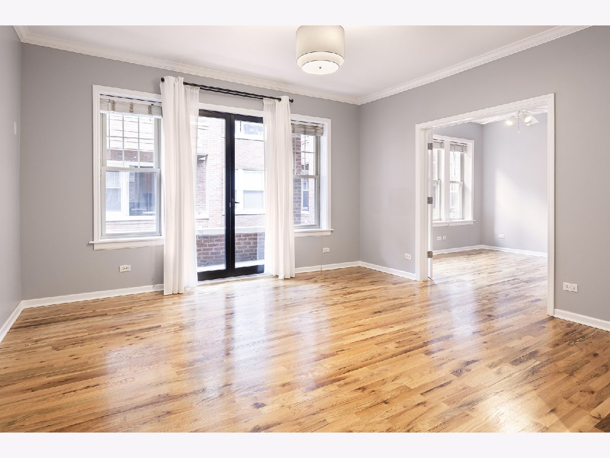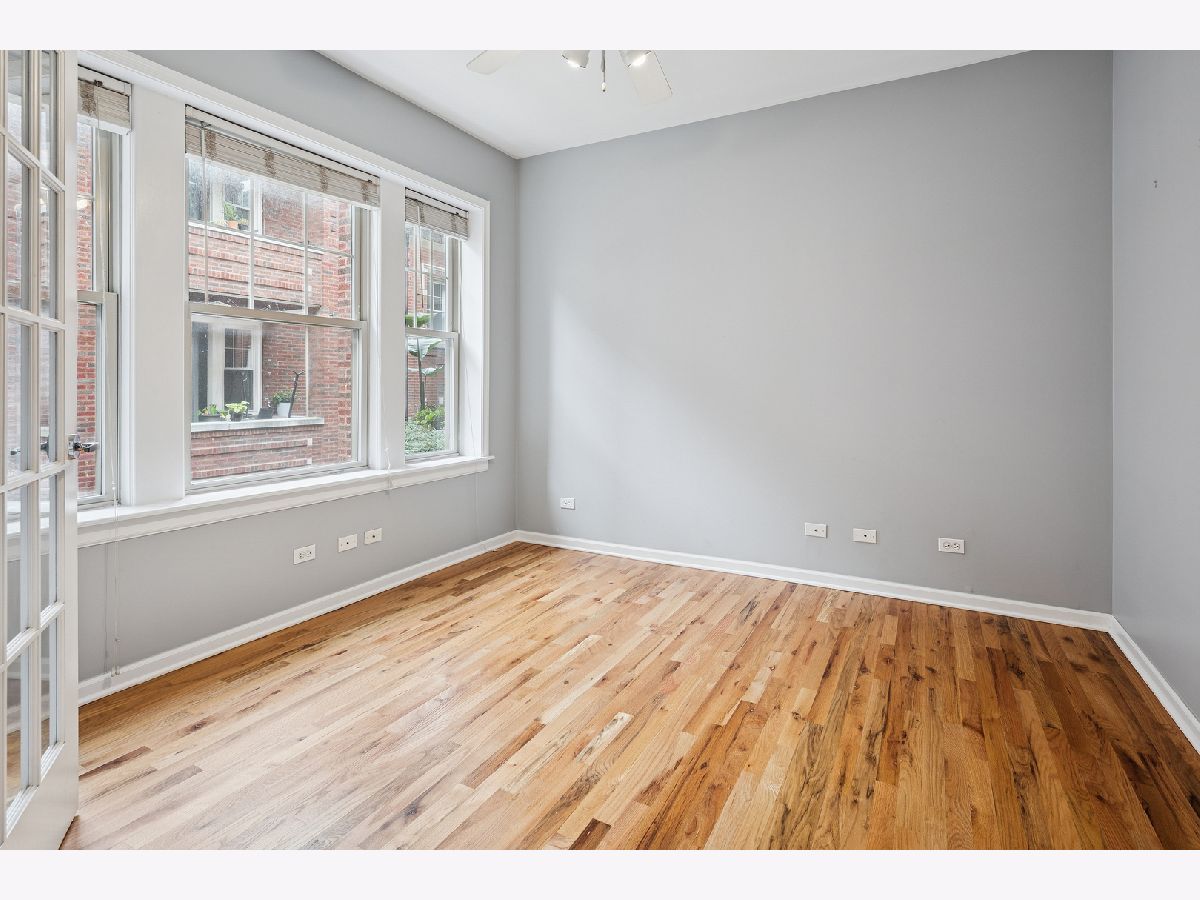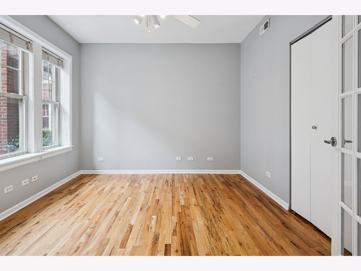 Nestled on a charming tree-lined, one-way street in the heart of Buena Park/Lakeview, this beautiful 2-bedroom, 1-bath condo offers the perfect blend of comfort, style, and convenience. The thoughtfully designed layout complements today's lifestyle, featuring pristine hardwood floors throughout most of the home, and a recently refreshed bathroom. The spacious primary bedroom includes a custom walk-in closet outfitted with Elfa shelving and recently replaced carpeting. French doors lead to a versatile second bedroom and allow for either an open-concept feel or added privacy, ideal for use as a home office, guest space, or a dining room. The eat-in kitchen boasts granite countertops, stainless steel appliances, as well as extra space for dining, food prep, etc. From the living room, step out onto the west-facing balcony which overlooks a meticulously maintained courtyard-perfect for enjoying your morning coffee or unwinding at the end of the day. Additional highlights include in-unit laundry and new HVAC (2024) and additional storage in the basement. Individual furnaces are also in the basement of the building leaving a quieter experience in the home. Enjoy unbeatable access to everything the neighborhood has to offer. Proximity to the Sheridan Red Line station, you're minutes from Lake Shore Drive, the lakefront, Wrigley Field, and a variety of shops, restaurants, and grocery stores. Don't miss this opportunity to own a stylish, move-in ready home in one of Chicago's most vibrant neighborhoods.