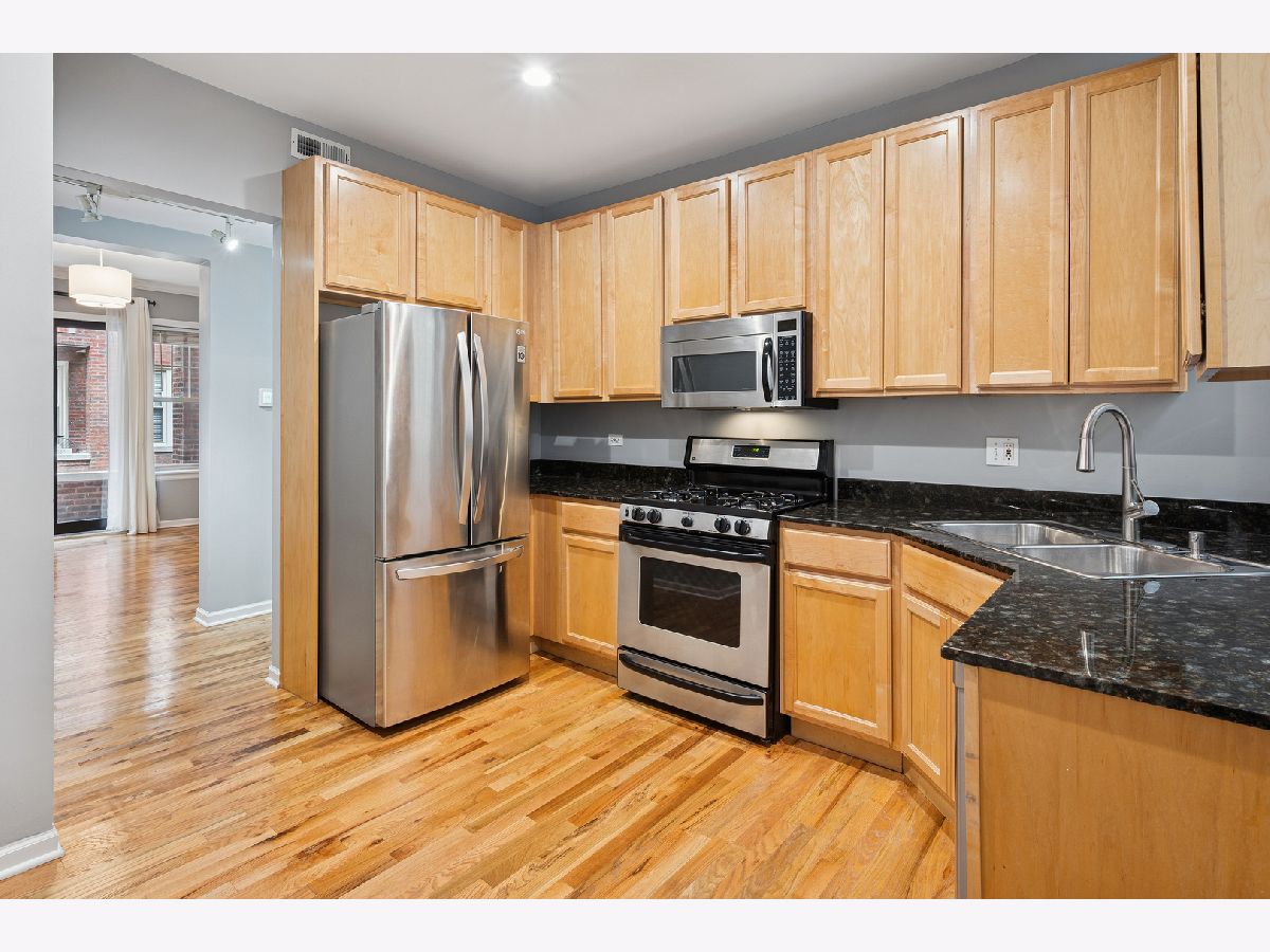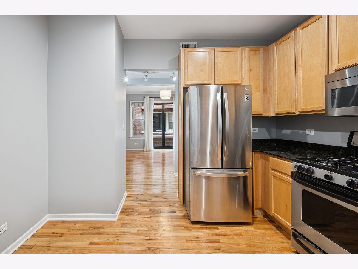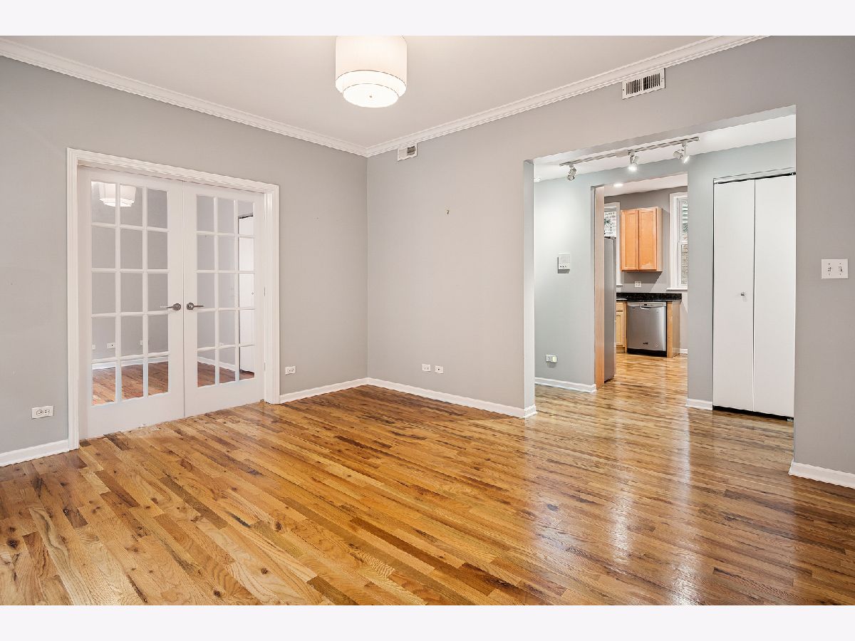 Nestled on a charming tree-lined, one-way street in the heart of Buena Park/Lakeview, this beautiful 2-bedroom, 1-bath condo offers the perfect blend of comfort, style, and convenience. The thoughtfully designed layout complements today's lifestyle, featuring pristine hardwood floors throughout most of the home, and a recently refreshed bathroom. The spacious primary bedroom includes a custom walk-in closet outfitted with Elfa shelving and recently replaced carpeting. French doors lead to a versatile second bedroom and allow for either an open-concept feel or added privacy, ideal for use as a home office, guest space, or a dining room. The eat-in kitchen boasts granite countertops, stainless steel appliances, as well as extra space for dining, food prep, etc. From the living room, step out onto the west-facing balcony which overlooks a meticulously maintained courtyard-perfect for enjoying your morning coffee or unwinding at the end of the day. Additional highlights include in-unit laundry and new HVAC (2024) and additional storage in the basement. Individual furnaces are also in the basement of the building leaving a quieter experience in the home. Enjoy unbeatable access to everything the neighborhood has to offer. Proximity to the Sheridan Red Line station, you're minutes from Lake Shore Drive, the lakefront, Wrigley Field, and a variety of shops, restaurants, and grocery stores. Don't miss this opportunity to own a stylish, move-in ready home in one of Chicago's most vibrant neighborhoods.